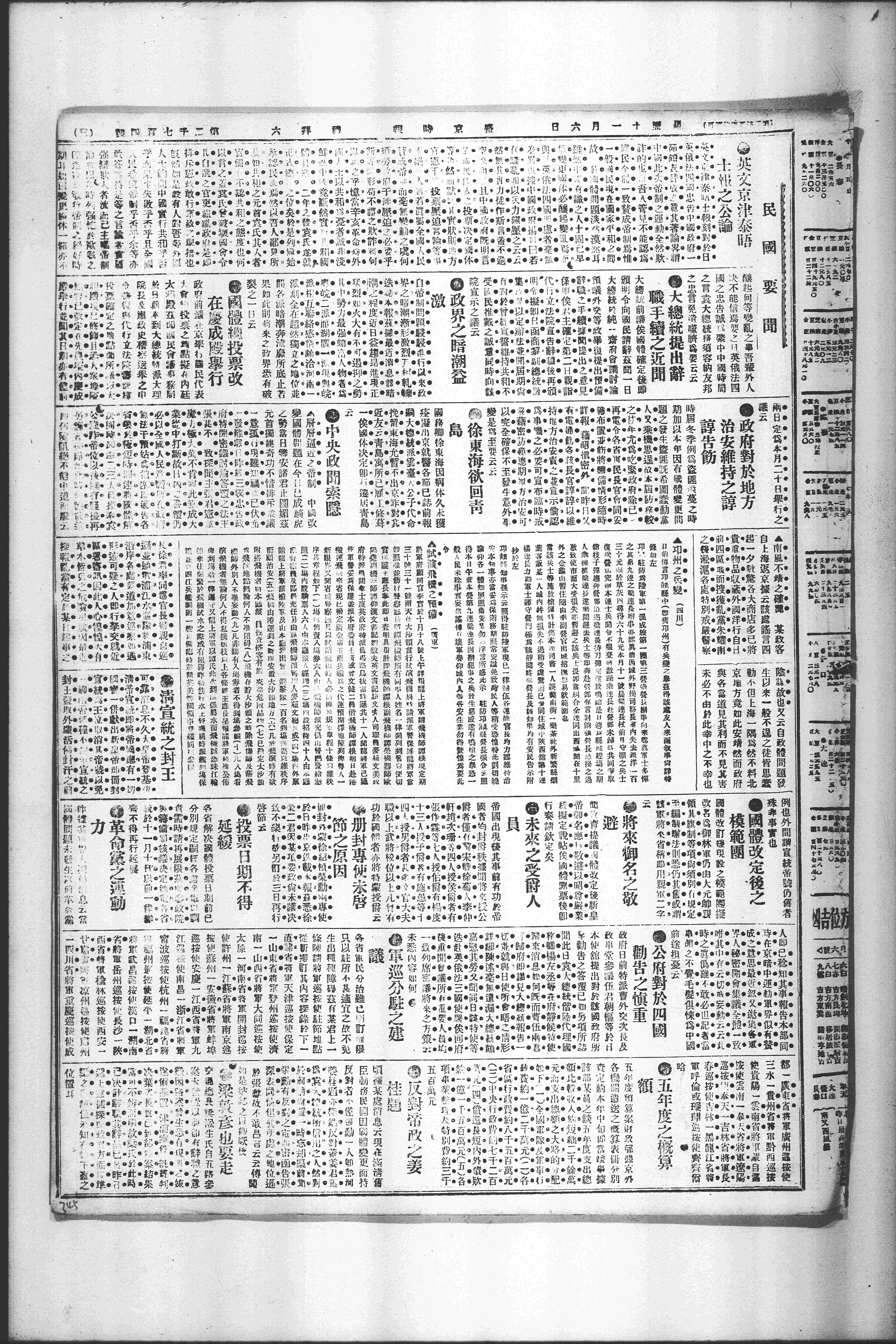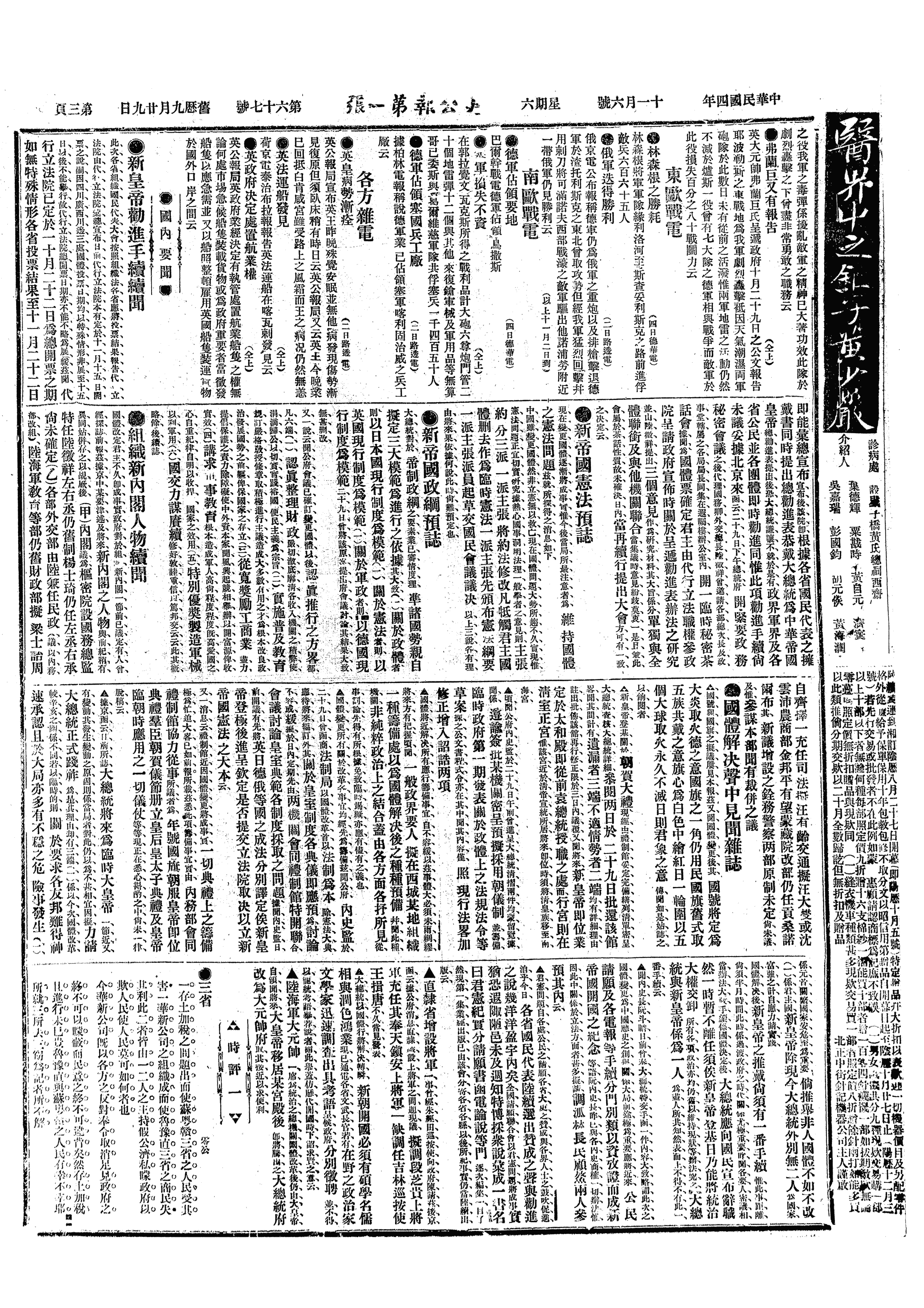 △ 昆明《觉报》发表署名大觉之时评,号召人民奋起反对袁世凯帝制自为,谓“壮士不死则已,死则举大名耳”。