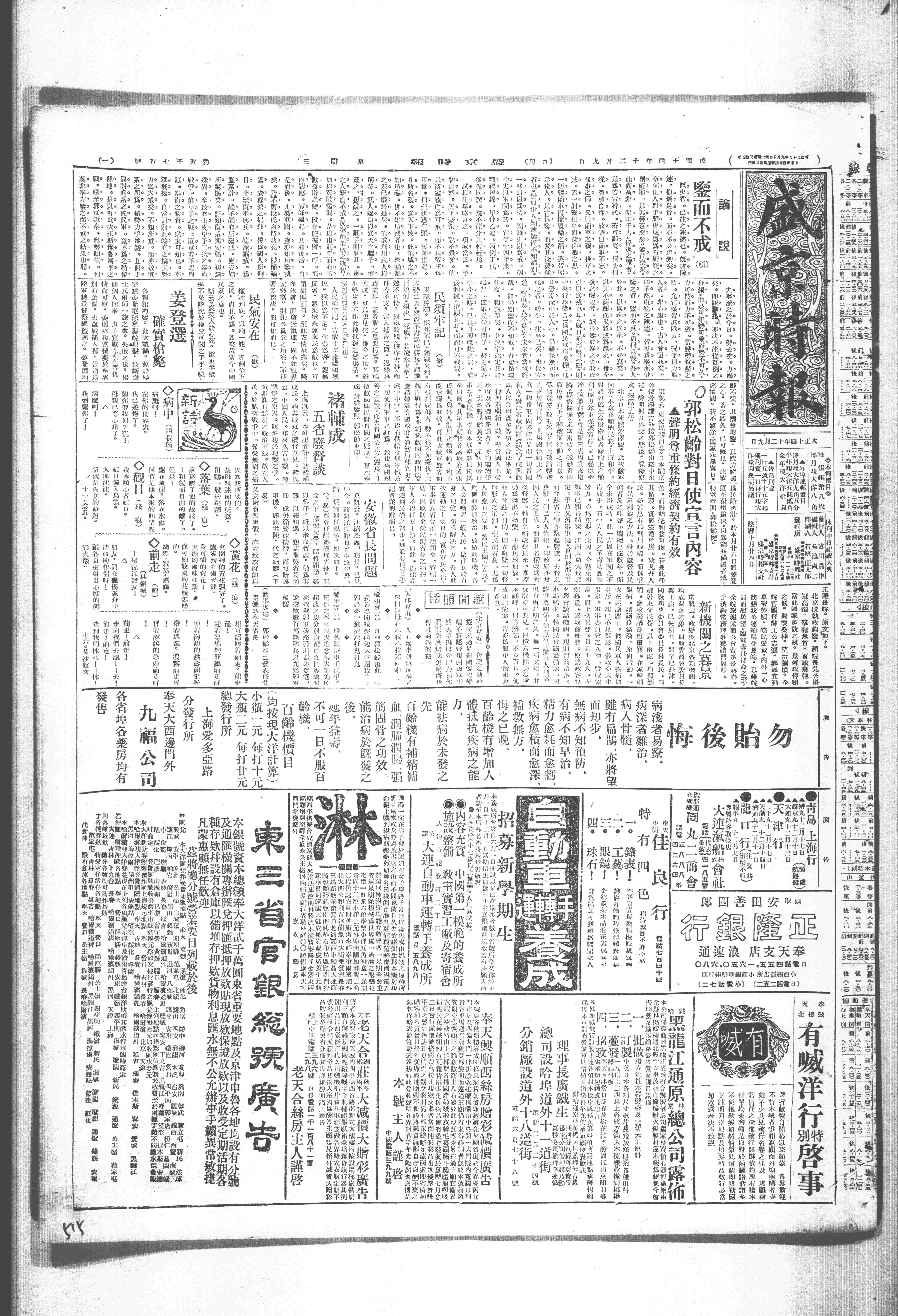 是日,由菊池上校送达张作霖,并于次日派专使赴锦州面交郭松龄。