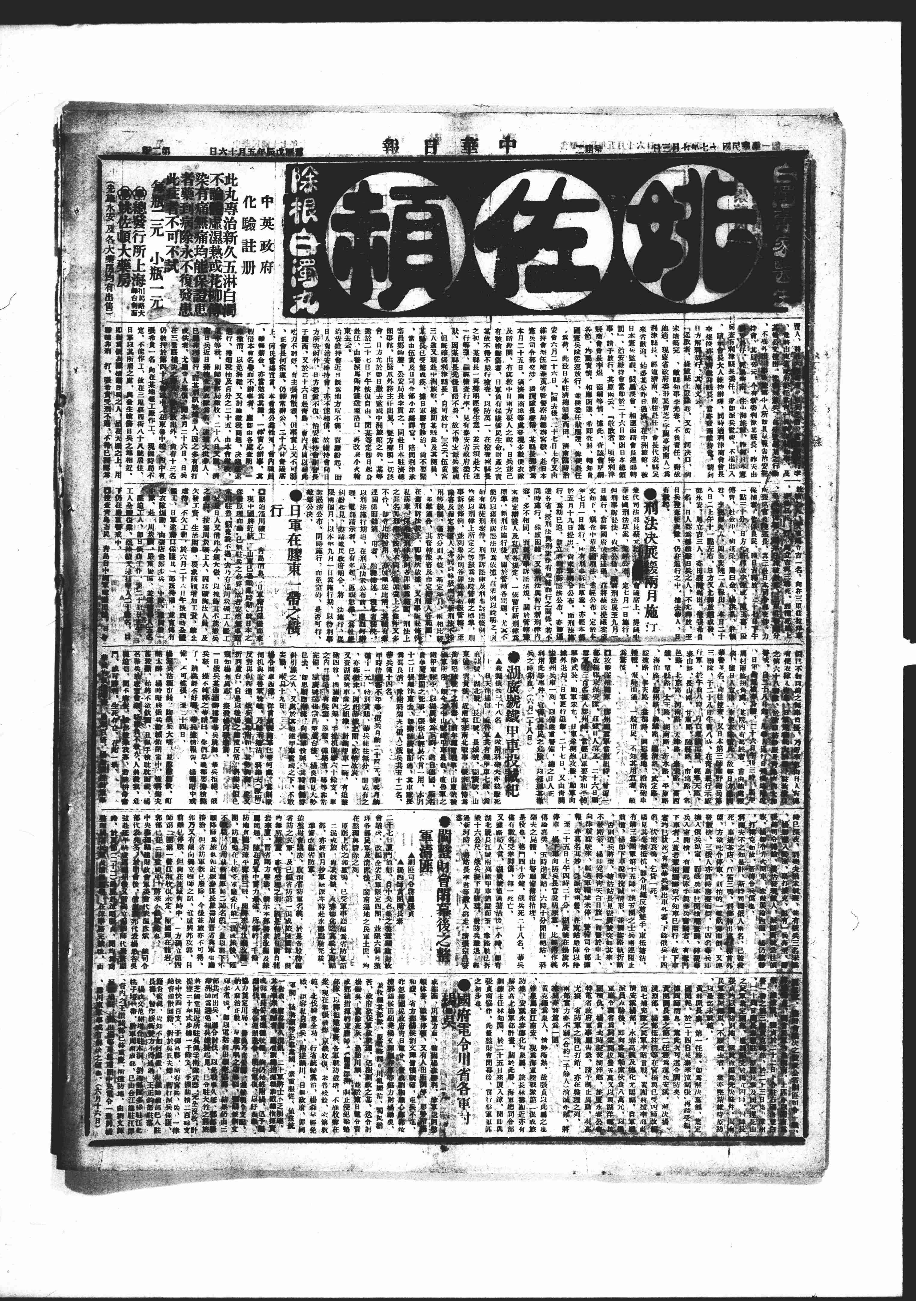 | 2660 | 001000000435A | 刑事法規(二) | 國民政府-總類-法令-刑事法令 | 國民政府秘書處函中國國民黨中央執行委員會秘書處等為請轉陳中央政治會議追認刑法施行期展延兩個月 | 1928/07/03 | 1928/07/03 | 001-012032-00004-007 |