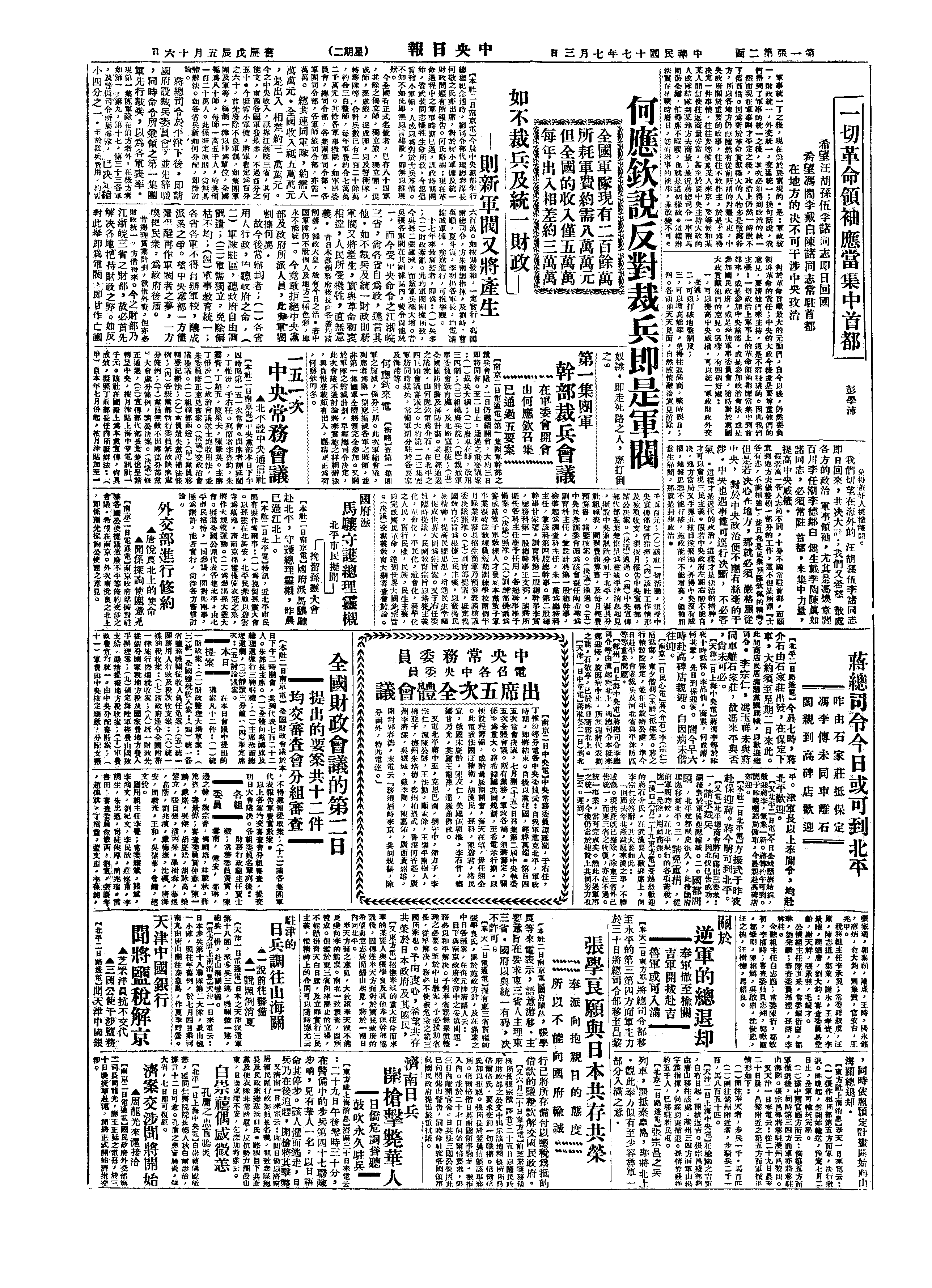 蒋介石偕李宗仁抵北平。