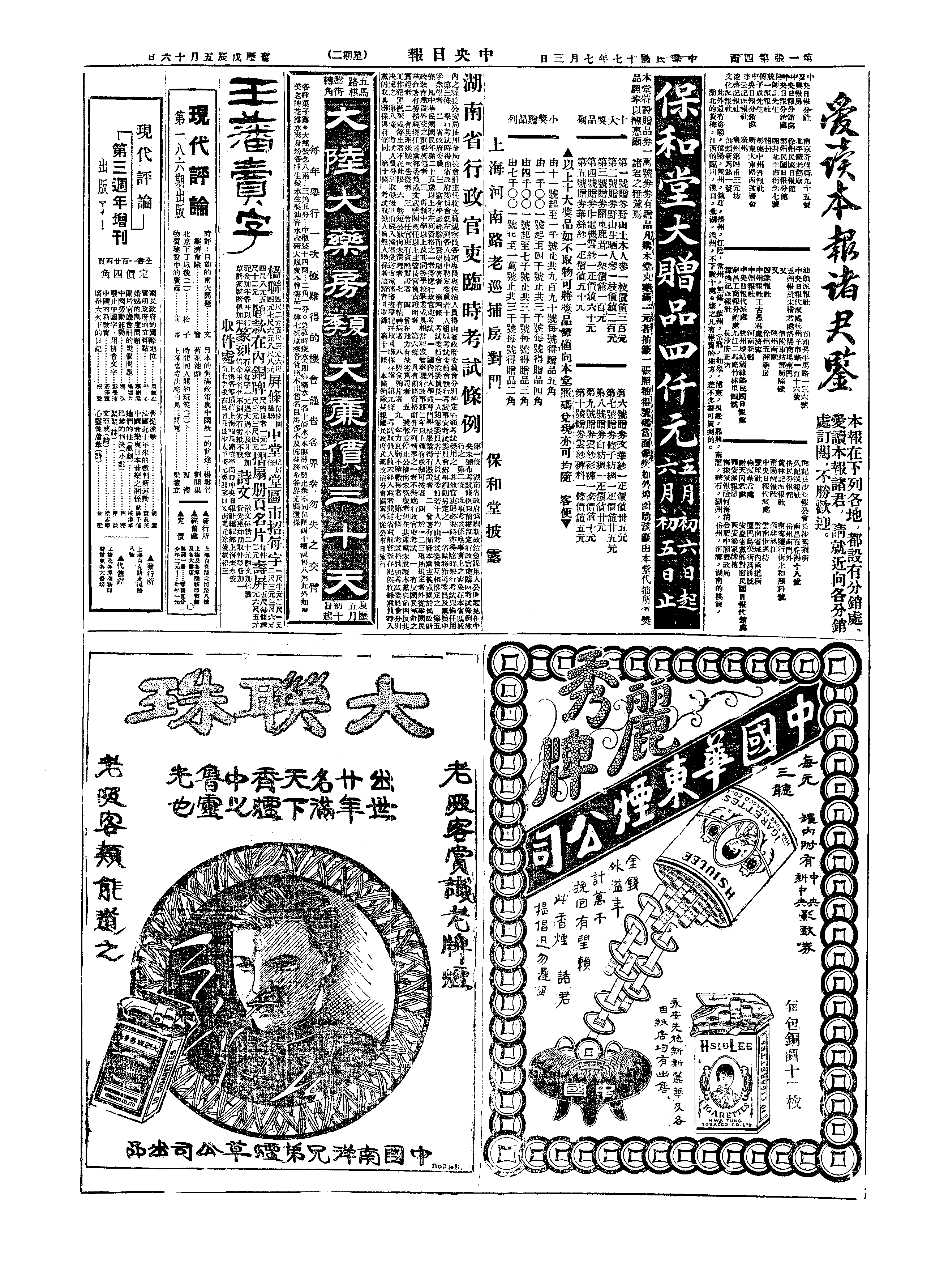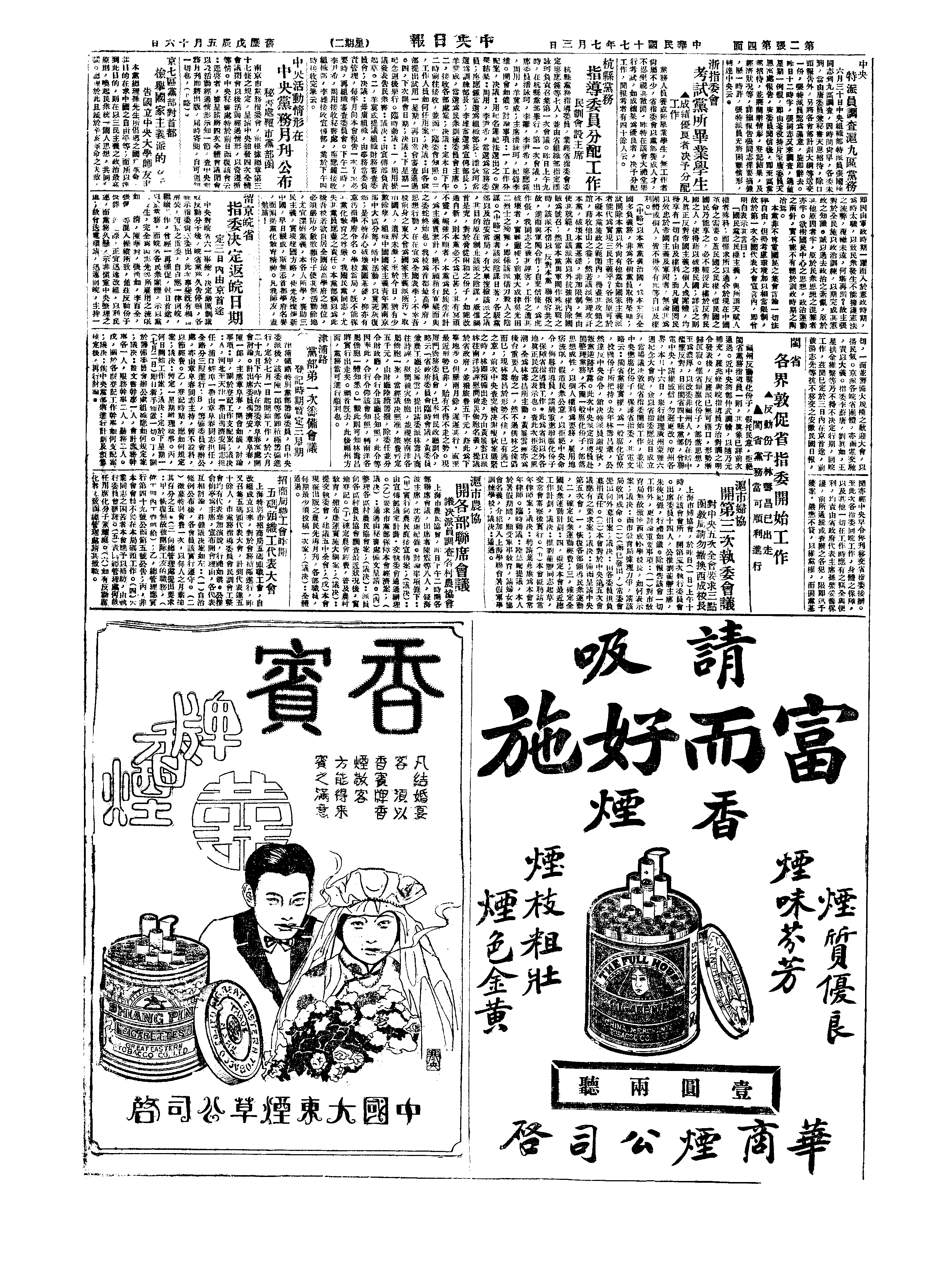 △ 国民政府训令直辖各机关严禁在职人员狎妓、赌博、酗酒及吸食鸦片。