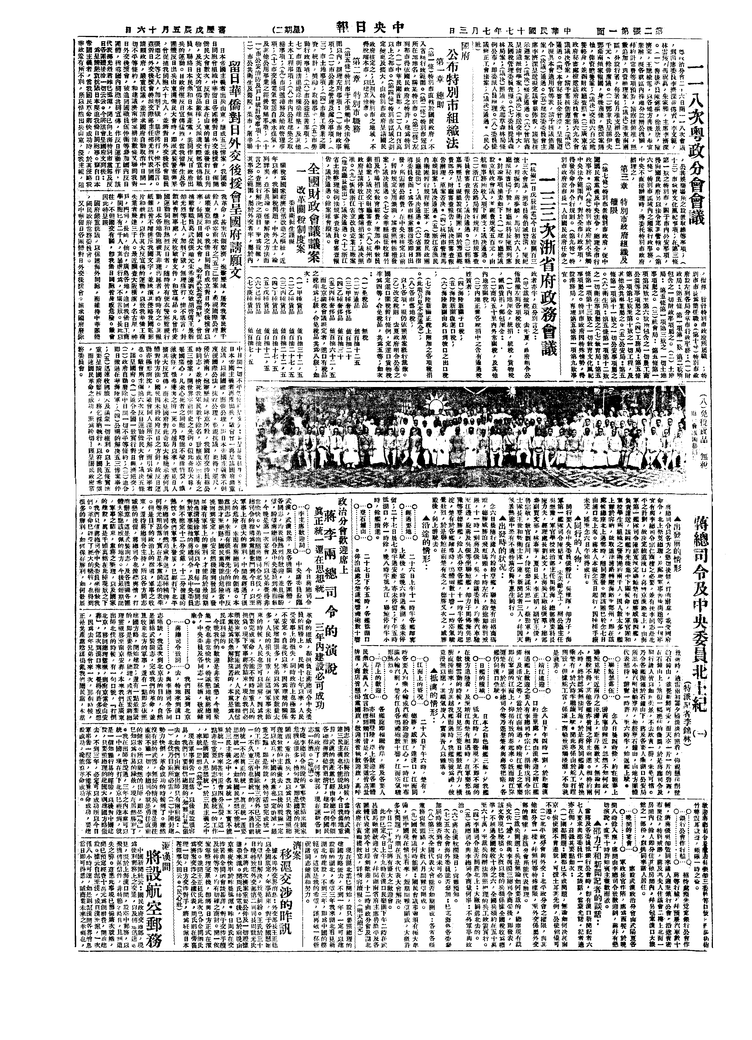△ 国民政府公布《特别市组织法》、《市组织法》。