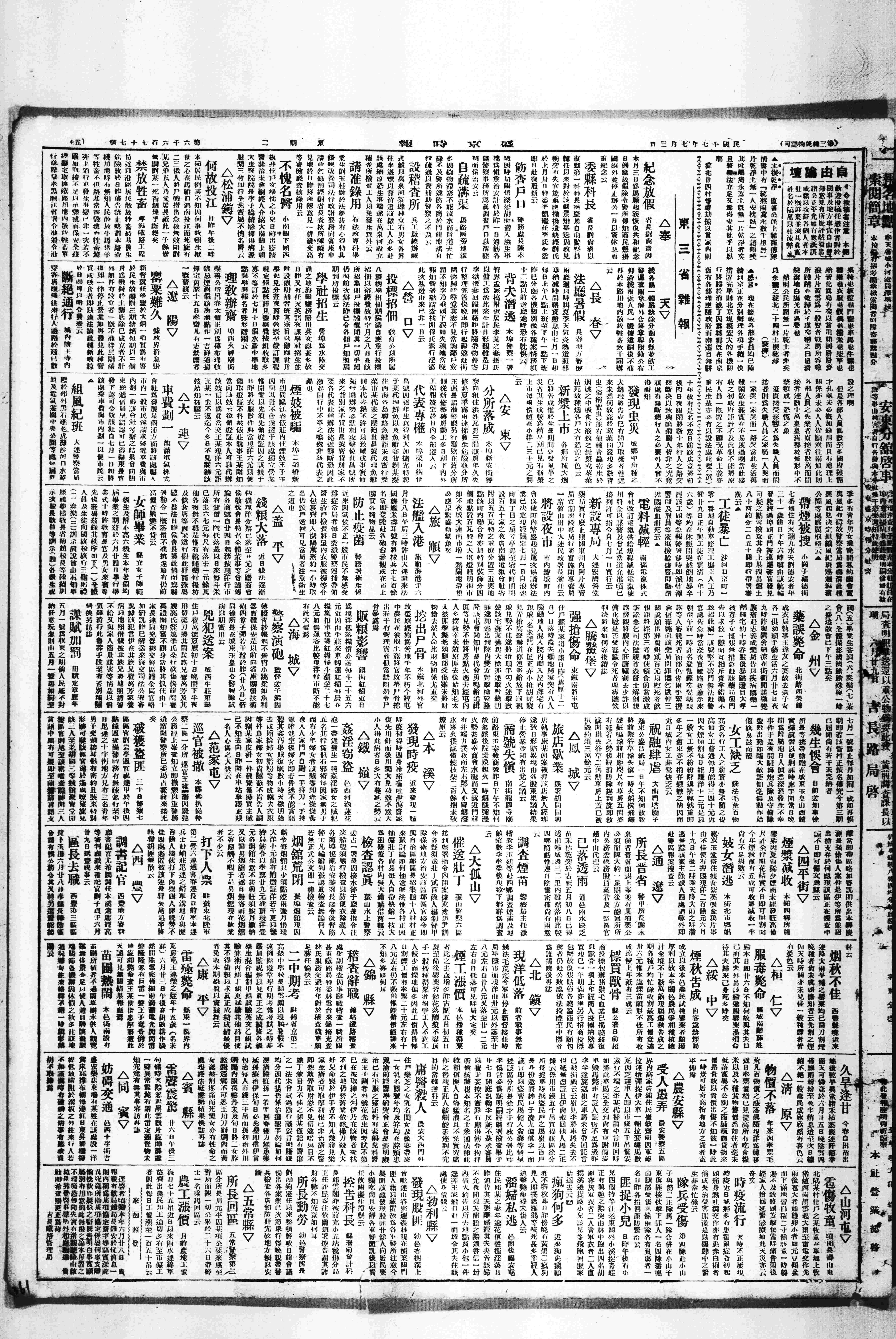成大来函,来学年第一学期定于十七年09月17日,即中历08月初04日开学,19日授课,计行课十八周,千十八年 01月19日,即中历 12月初09日停课放寒假。阅《善戒地持会译》,又阅《灵峰宗论》。夜四时有盗,窃去予杭绸单裤一条、夏布坎肩一件、旧川绸夹紧身一件、毛巾四张。盗由后门入,抬米房水窗门,入曼君寝室,门系关好,盗乃将外扣上,后半间房门打开,始入予书室,予惊盗乃去。予尚见其背,身着白汗衣也。书室外巷中用木作十字交叉,巷口堆柴一捆,以防人追逐也。成大来函,明日午前八时会议课程。