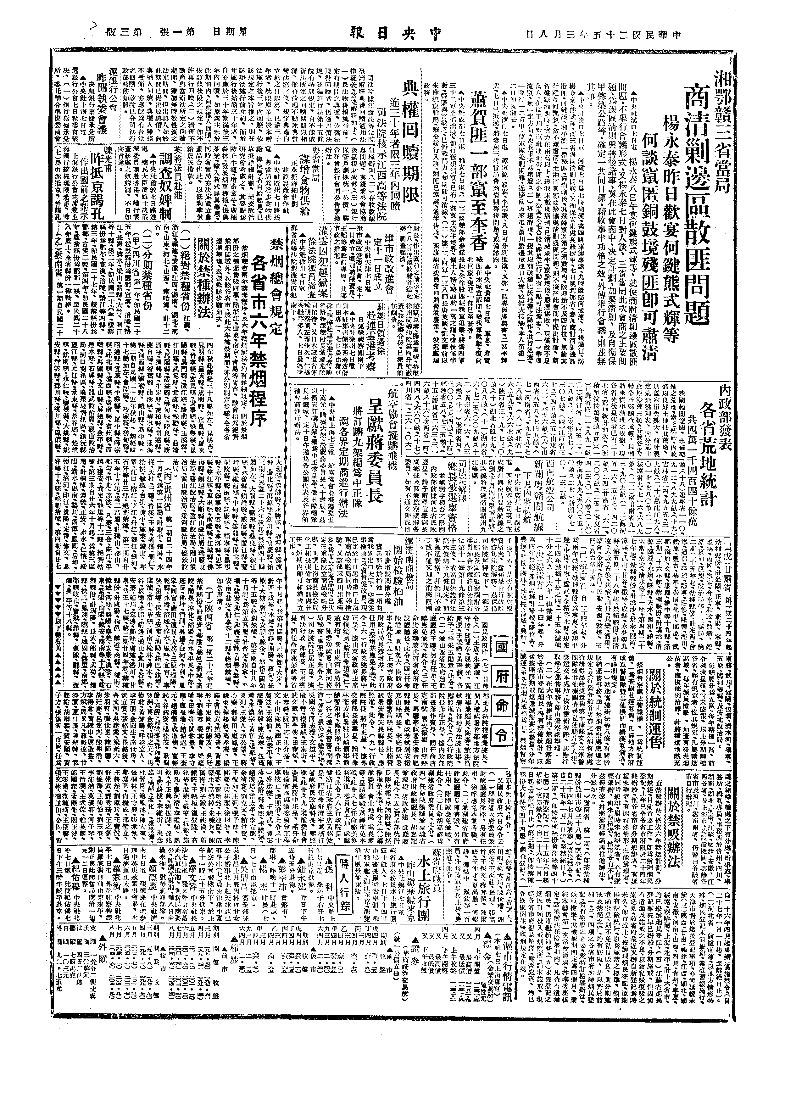 3, 8(二,一五)第2路军总指挥薛岳自川西天全进驻雅安(时红军张国焘、朱德、徐向前正向懋功西北移动)。