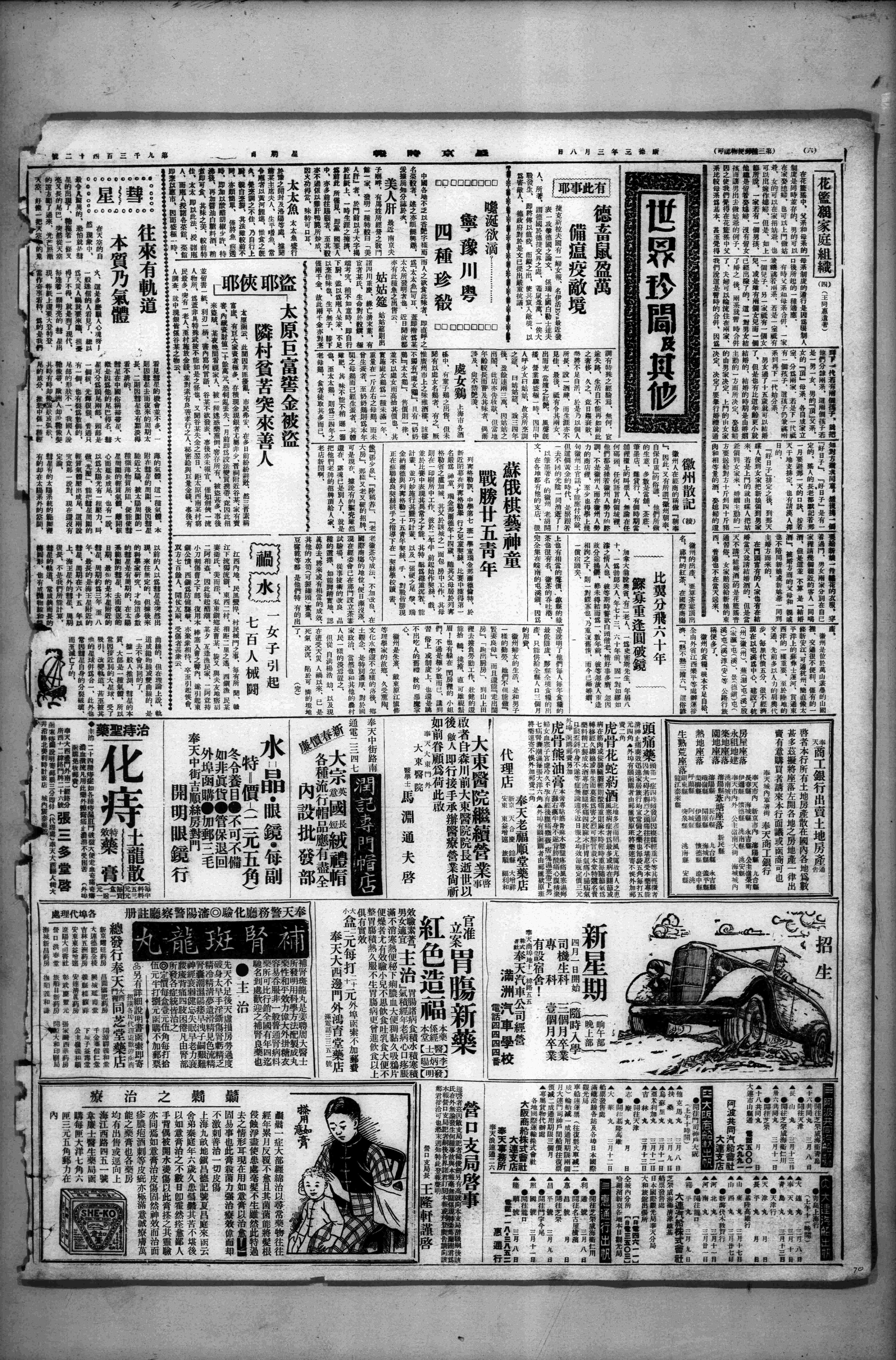 03月08日 星期日 (南京)睛大风中午科学社社友会,余以伤风未往。