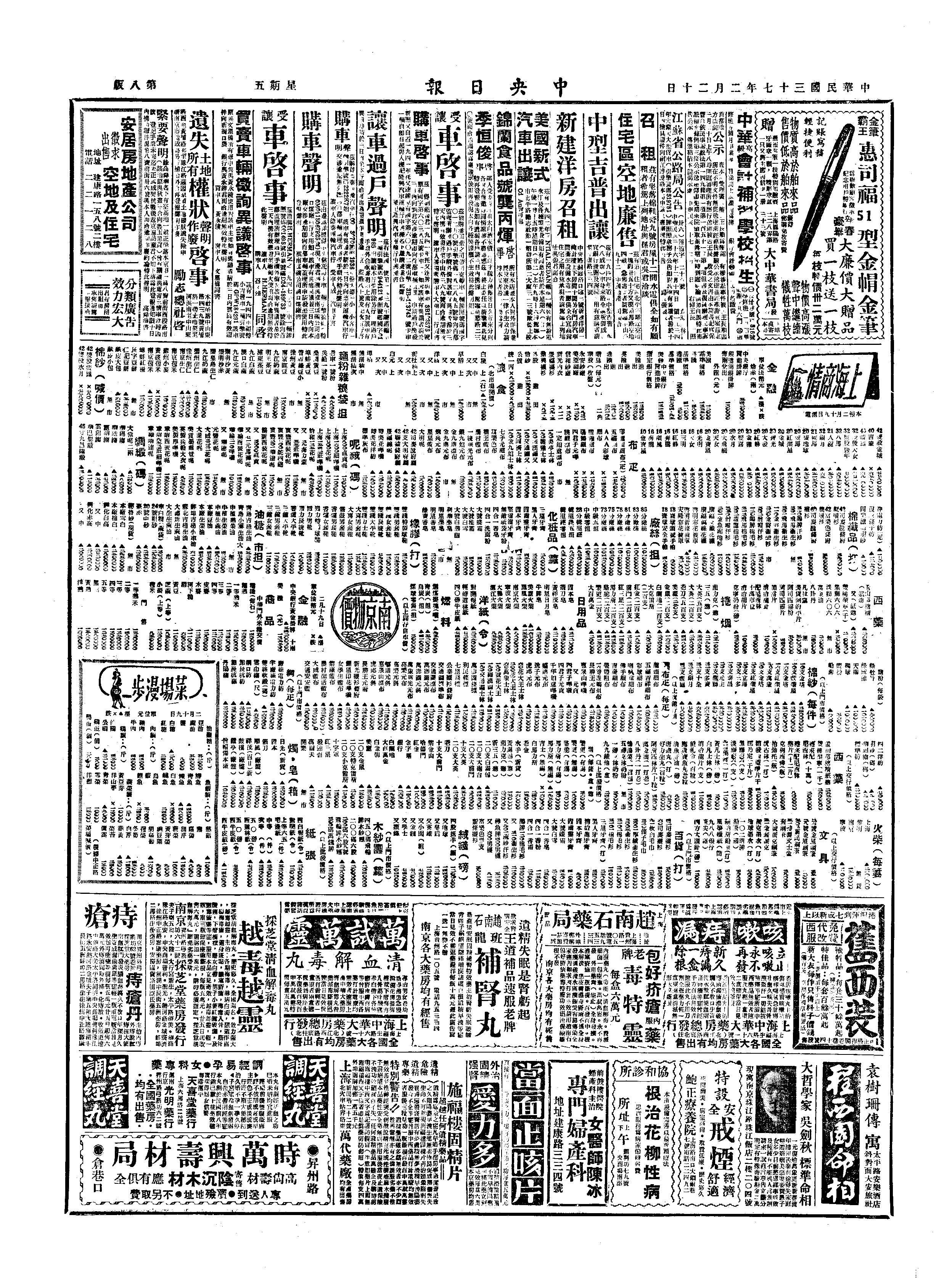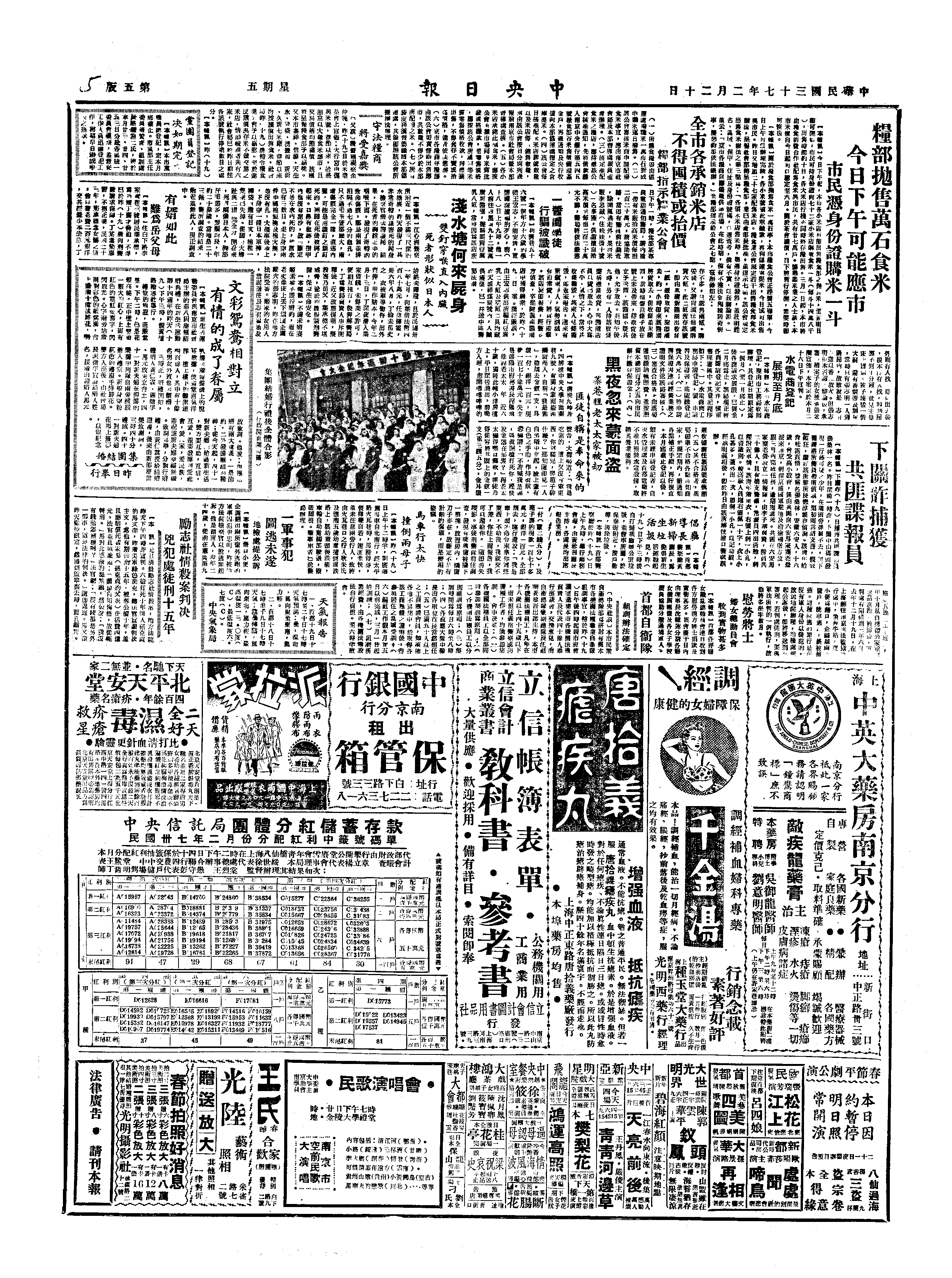 2月20日 星期五 南京晨雨51° ,日中雨51°