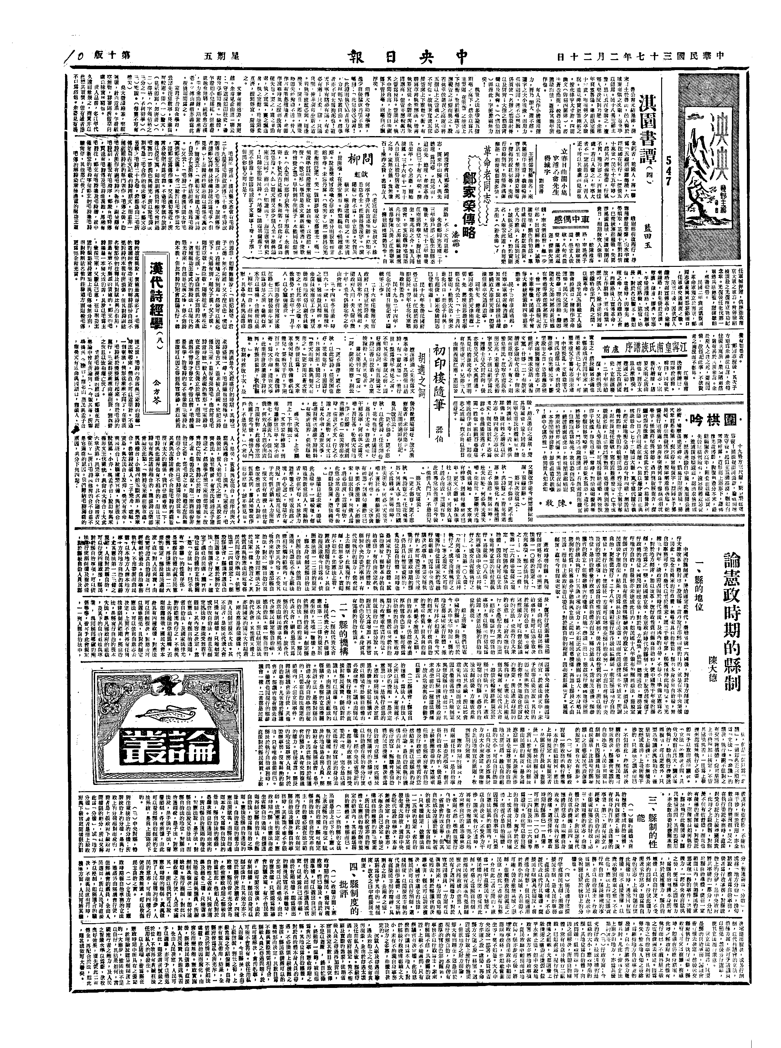 美国仍主张东北由UNO 代管。许季剪在台湾大学宿舍被人以斧劈颈而死,惨哉。子三:世瑛、世琛、世琼,女世琐、世葫、世璋,夫人陶善敦。季剪年六十六。