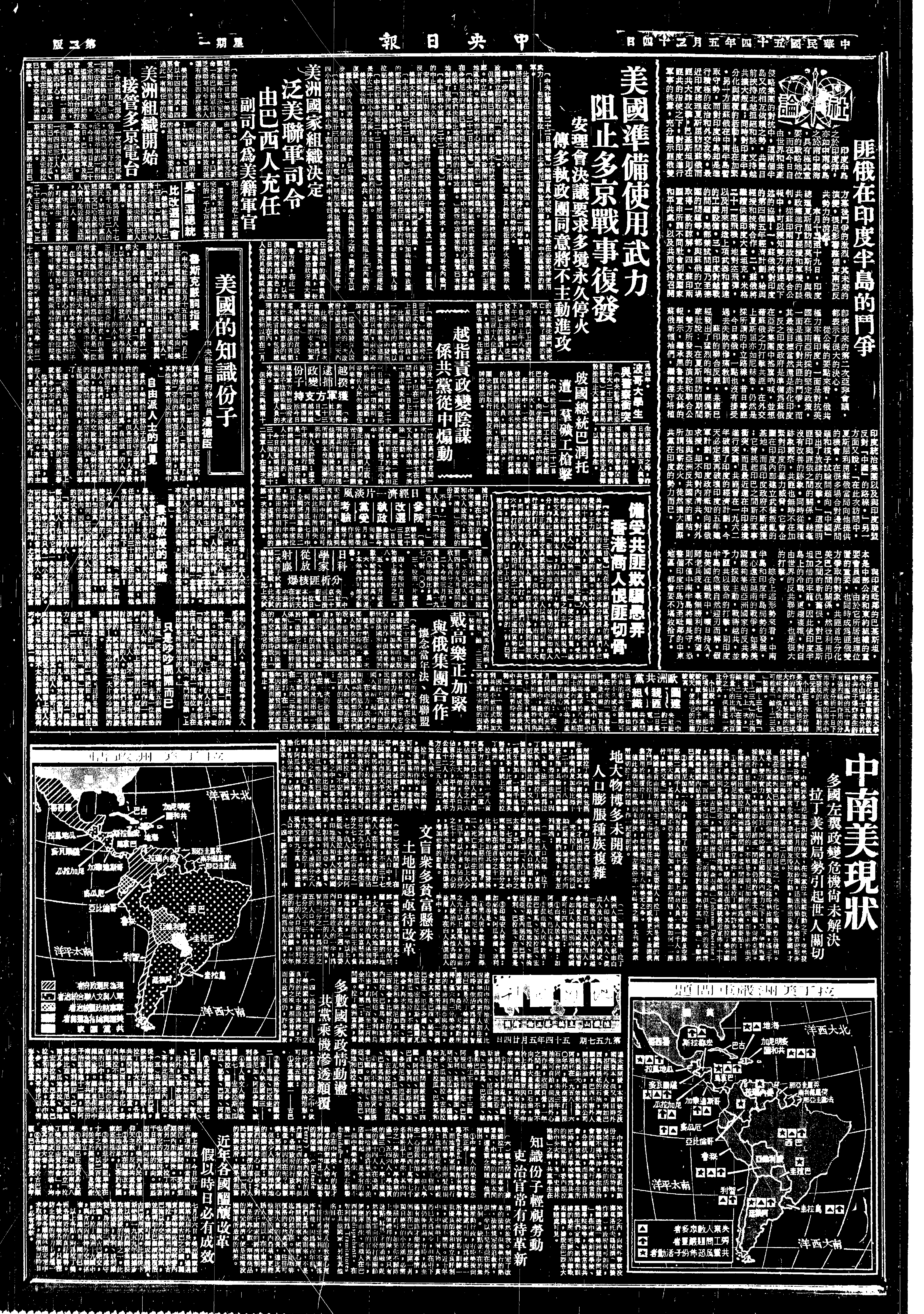 Staff conference. I advanced the thesis that the U.S.A. was in the course of revising her estimate of China’s potential in the world balance of power. General Marshall at the end of WWII decided against military intervention in China mainly because he estimated China whether as friend or as foe to be low in potential; the U.S.A. should invest in Western Europe where the potential was much higher. Within limits, the Marshall Plan fulfilled his expectations. But now the U.S.A. finds mainland China to be a serious foe and island China to be a substantial friend. The U.S.A. has not decided to make war on the mainland, but the decision is in the hands of Mao 【毛澤東], who, encouraged by his past successes and by his nuclear bomb, is likely to persist in his adventurous policy in S.E. Asia.