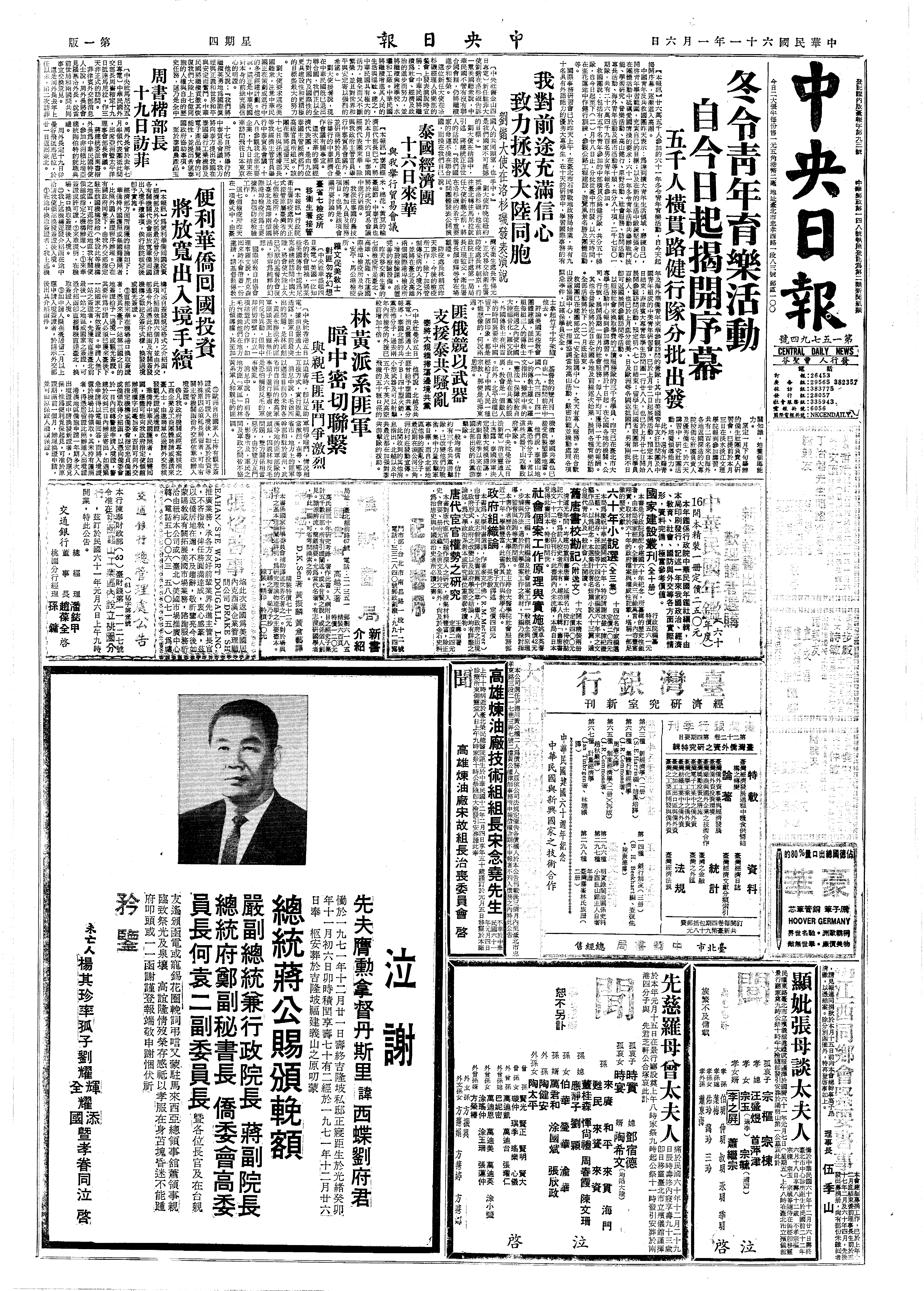中共中央委员、国务院副总理兼外交部部长、中央军委副主席、全国政协副主席陈毅在北京去世,终年七十一岁。