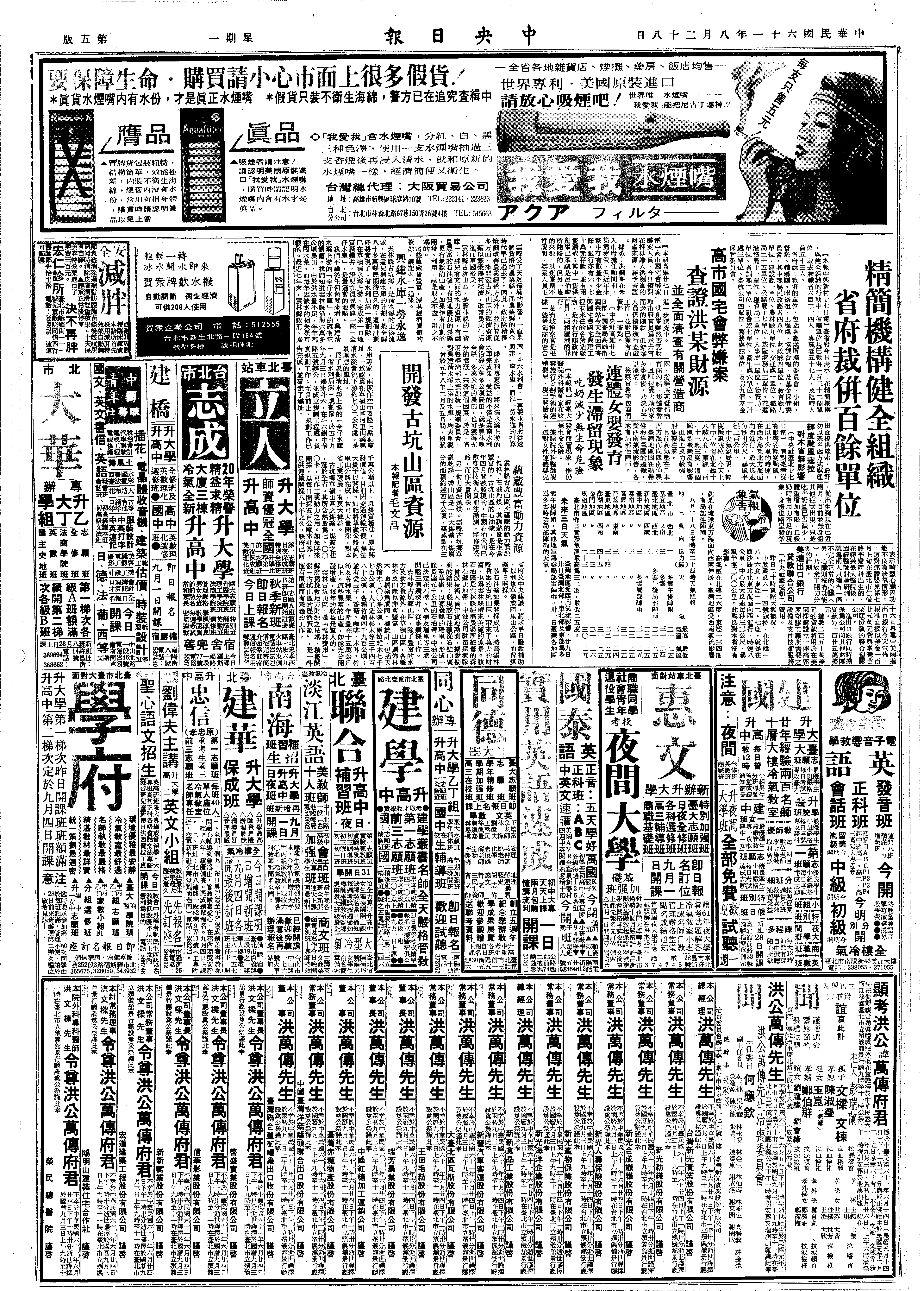 蒋党《中央日报》08月25日发表题为《再告日本田中内阁》的社论,摘要如下:
