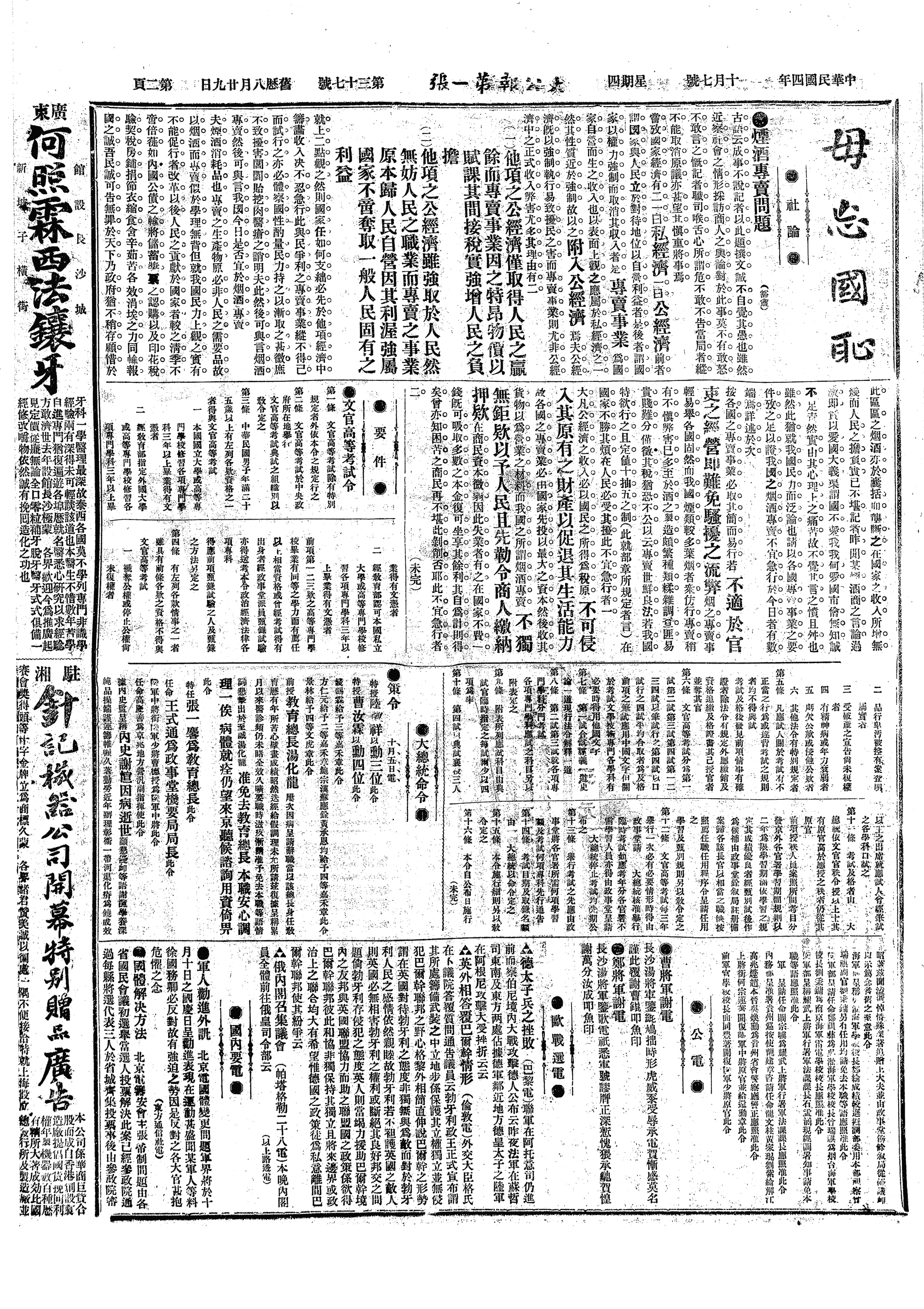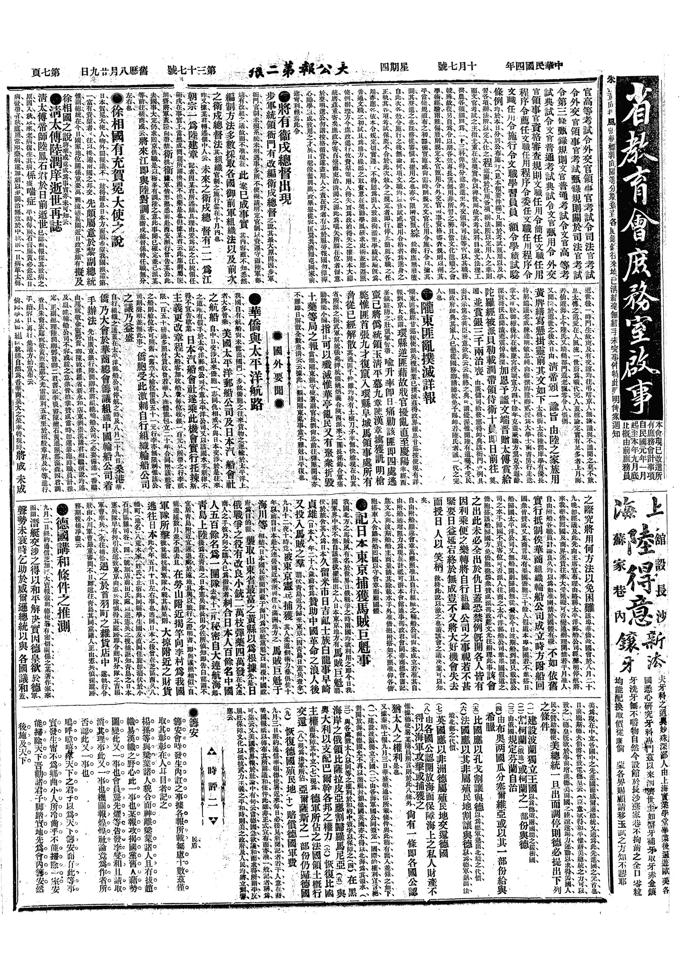 中华民国史事日志>19151007