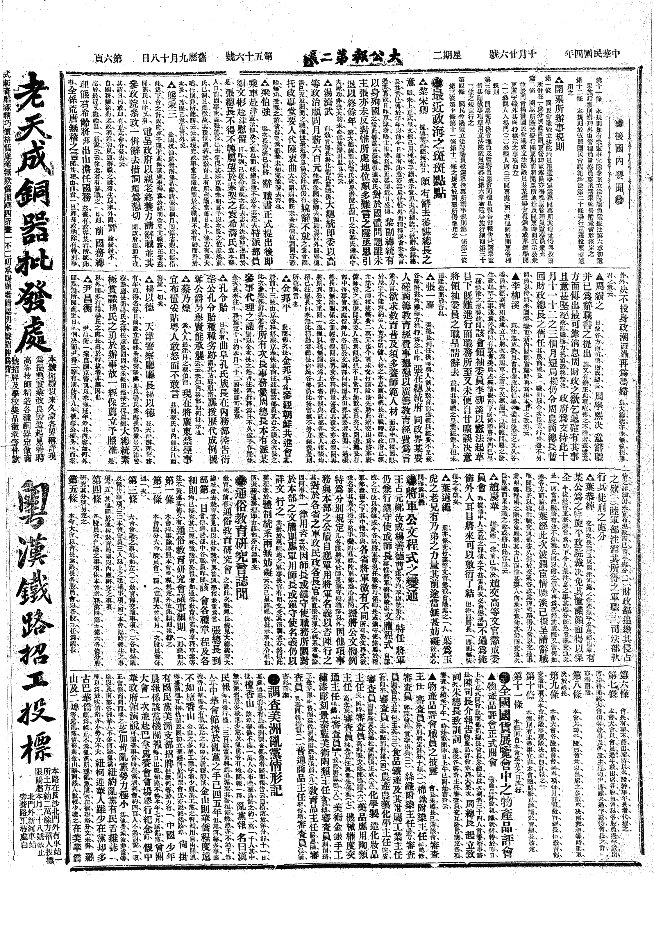 中华民国史事日志>19151026