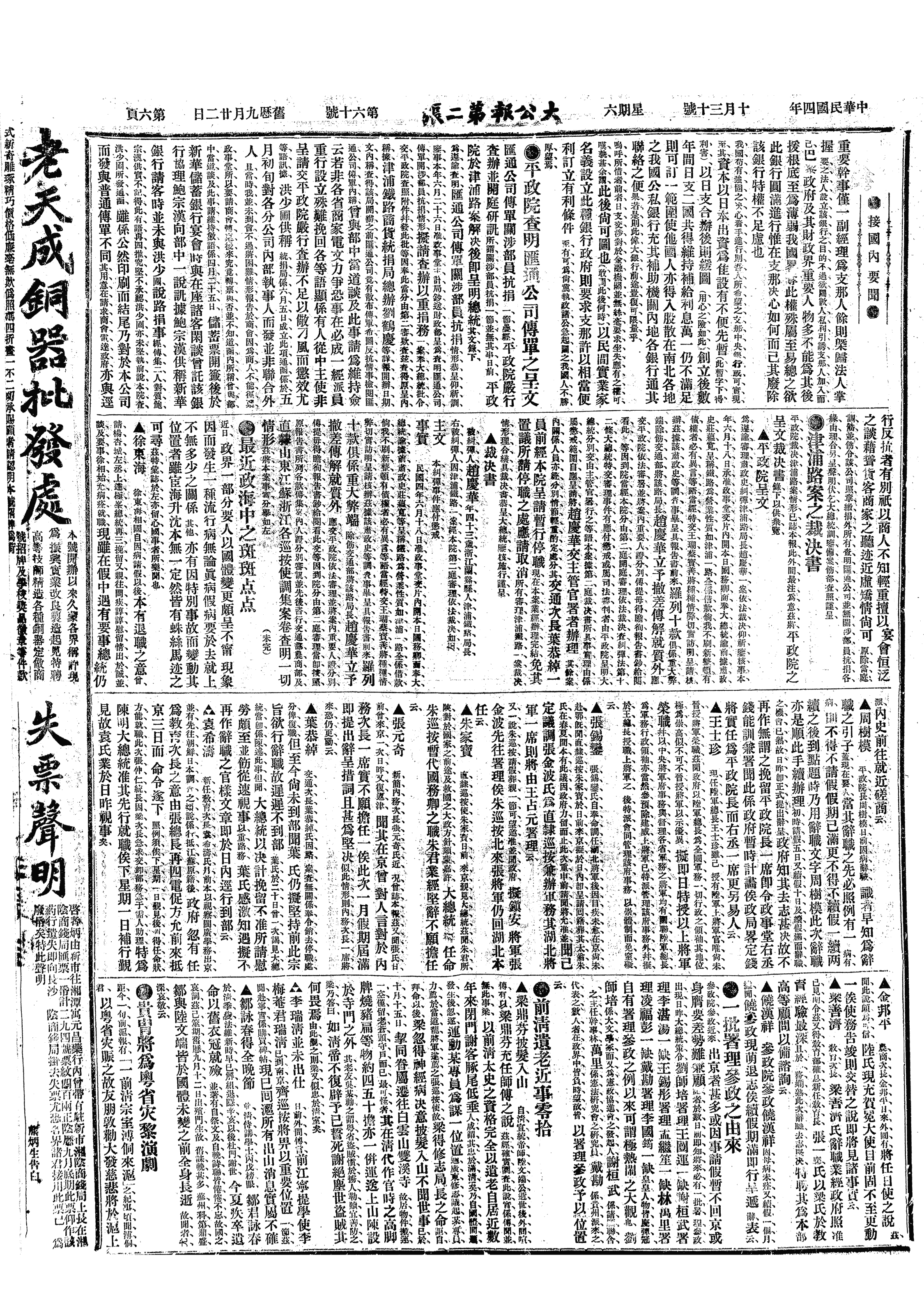 中华民国史大事记>19151030
