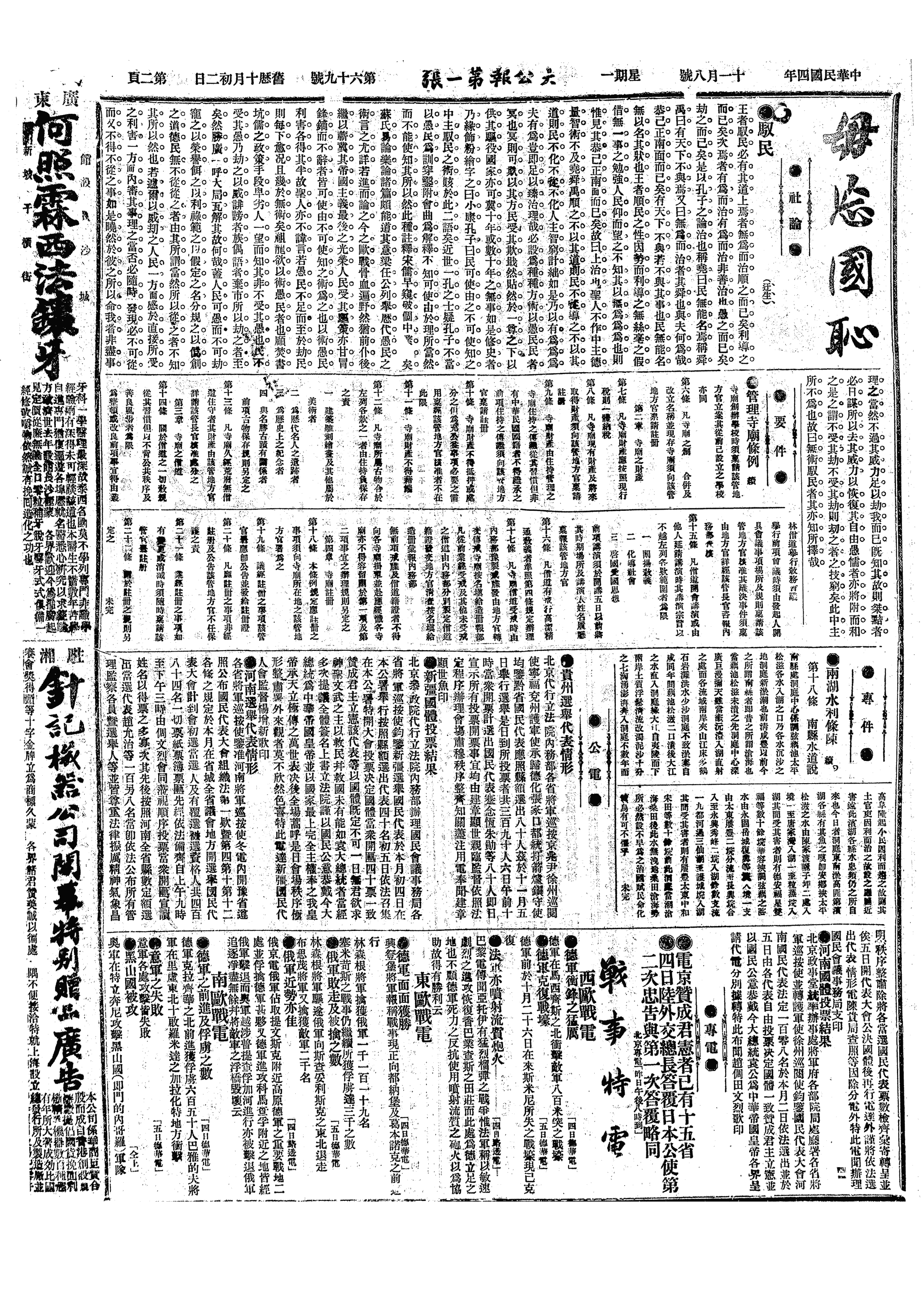 中华民国史大事记>19151108