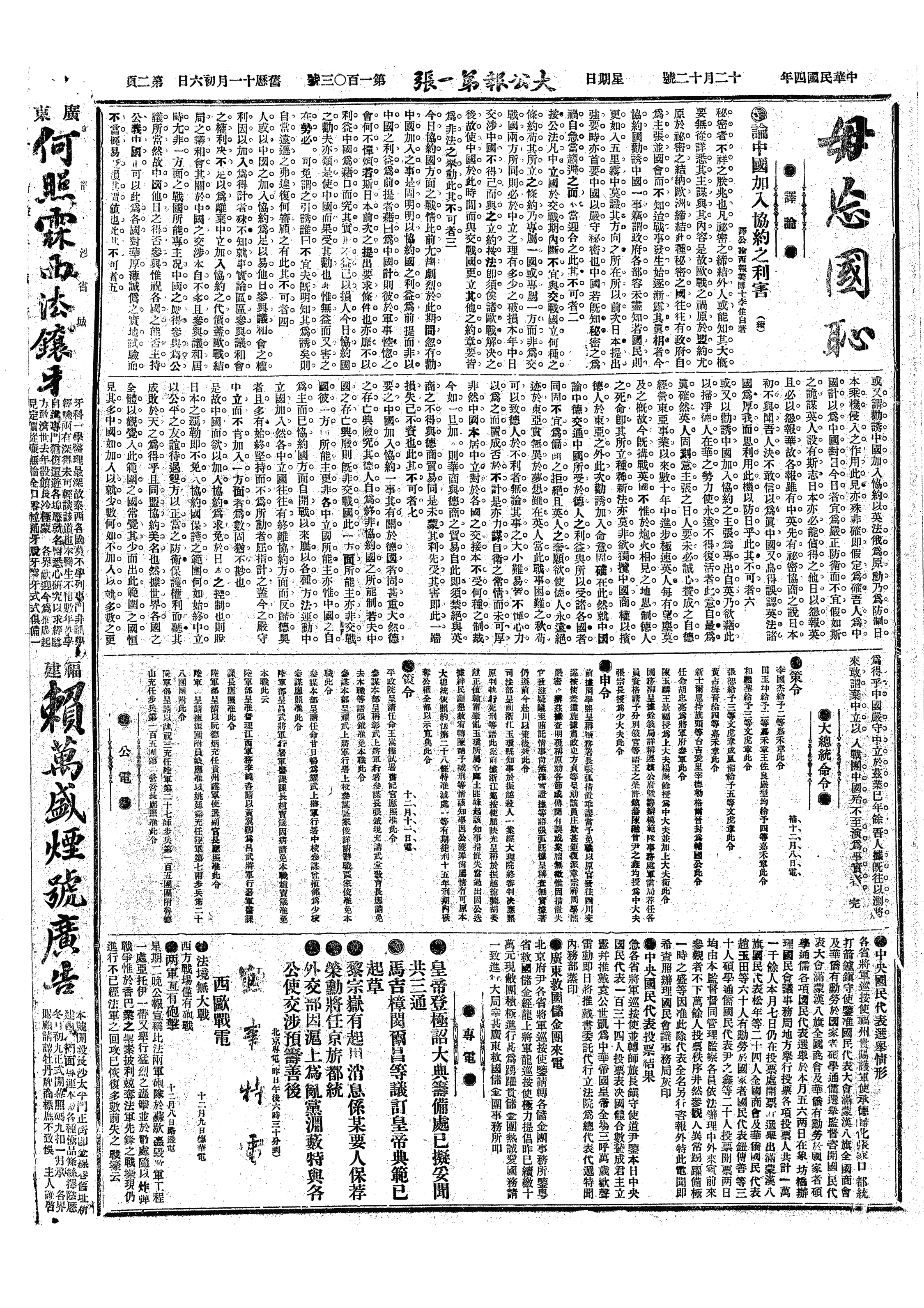 中华民国史事日志>19151212