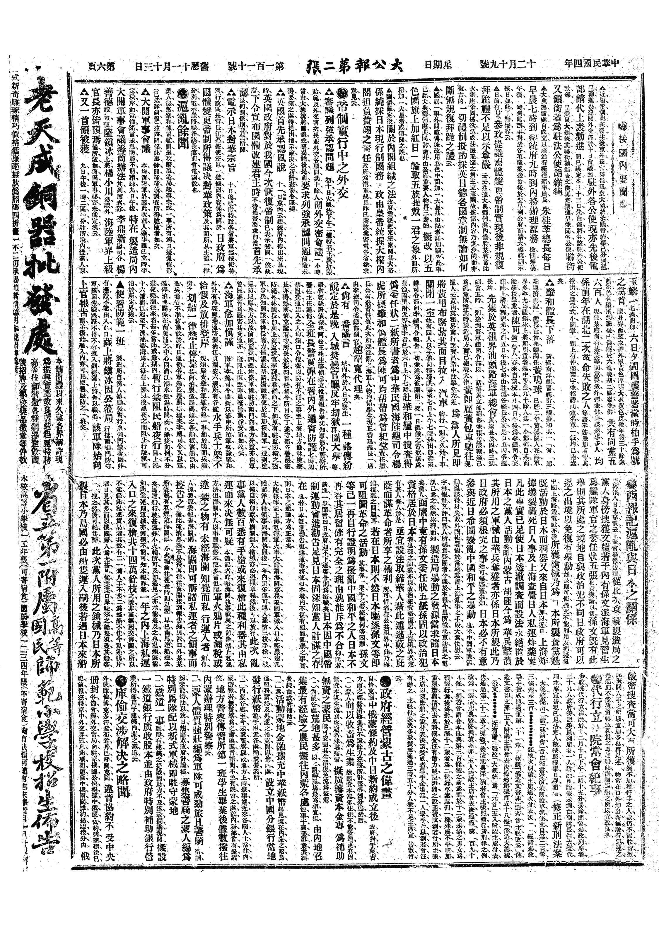 中华民国史大事记>19151219