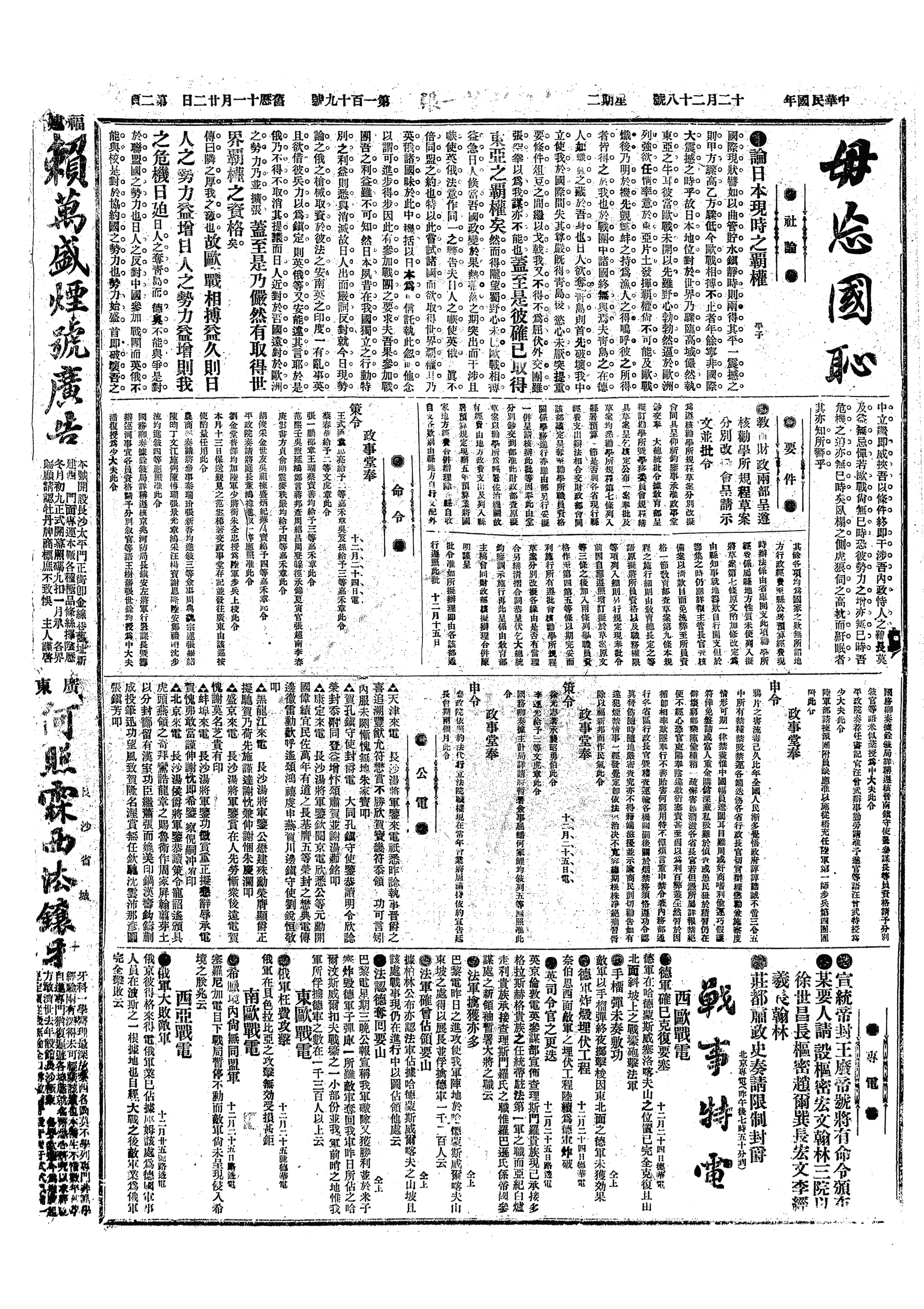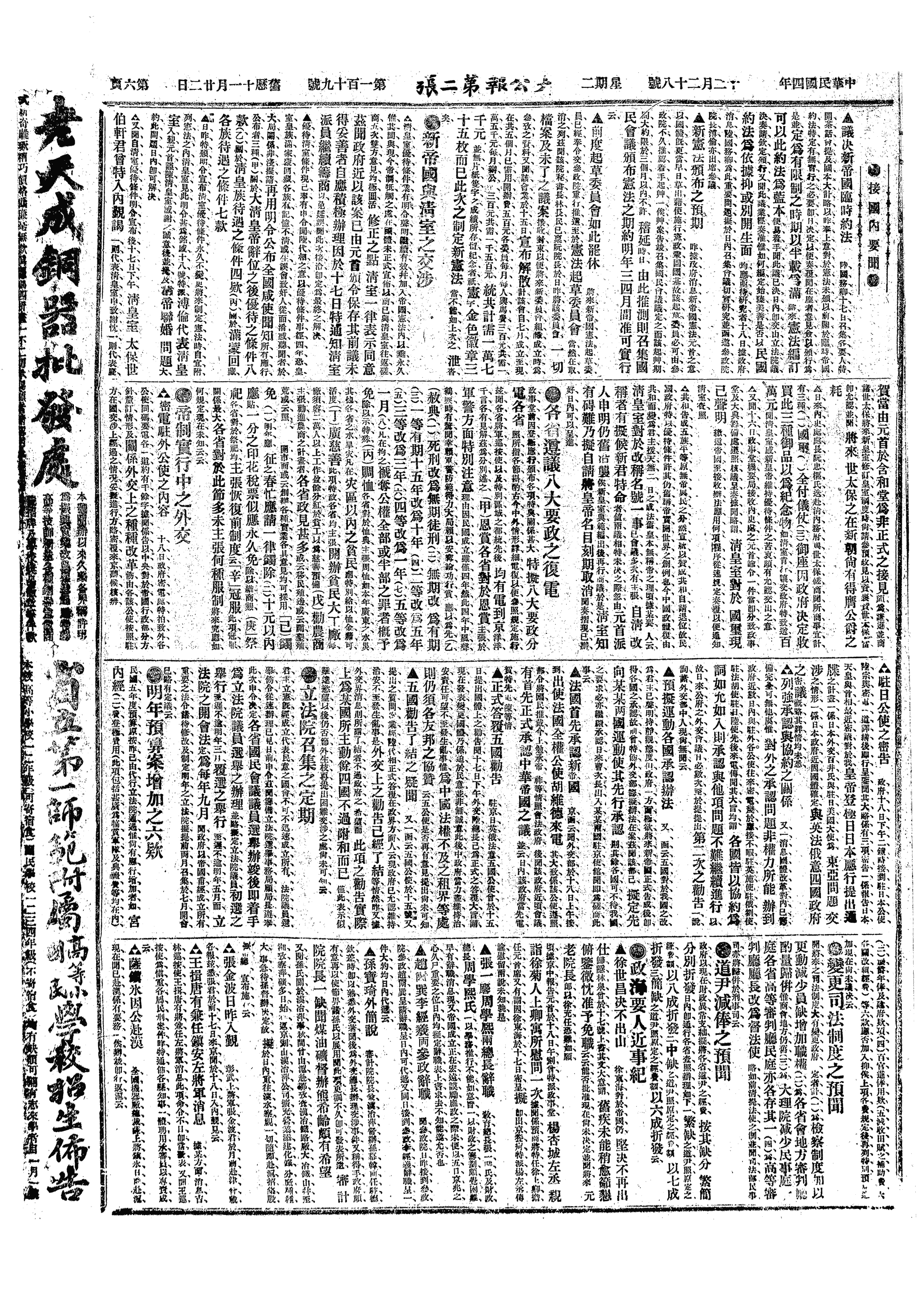 中华民国史大事记>19151228