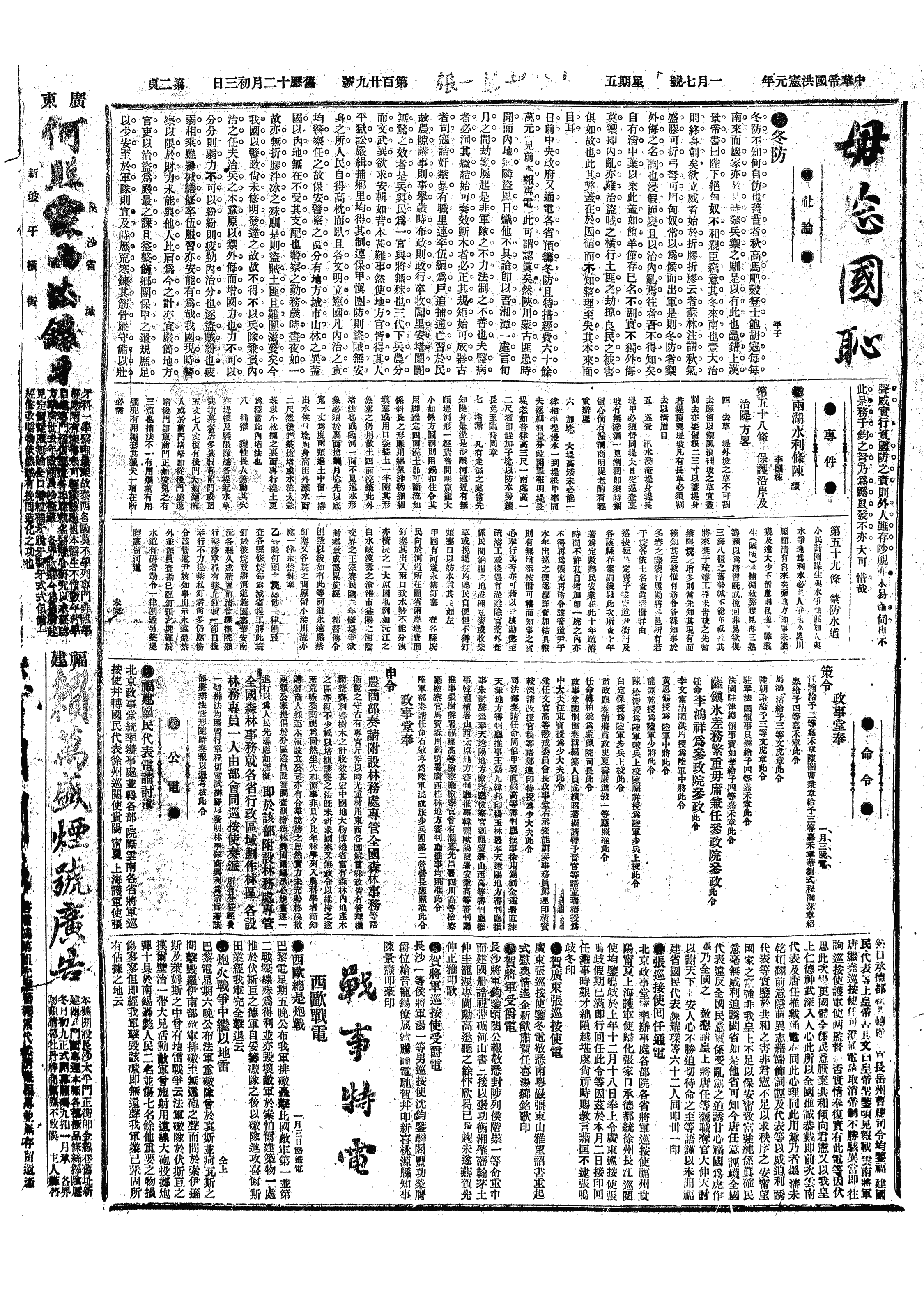 中华民国史大事记>19160107