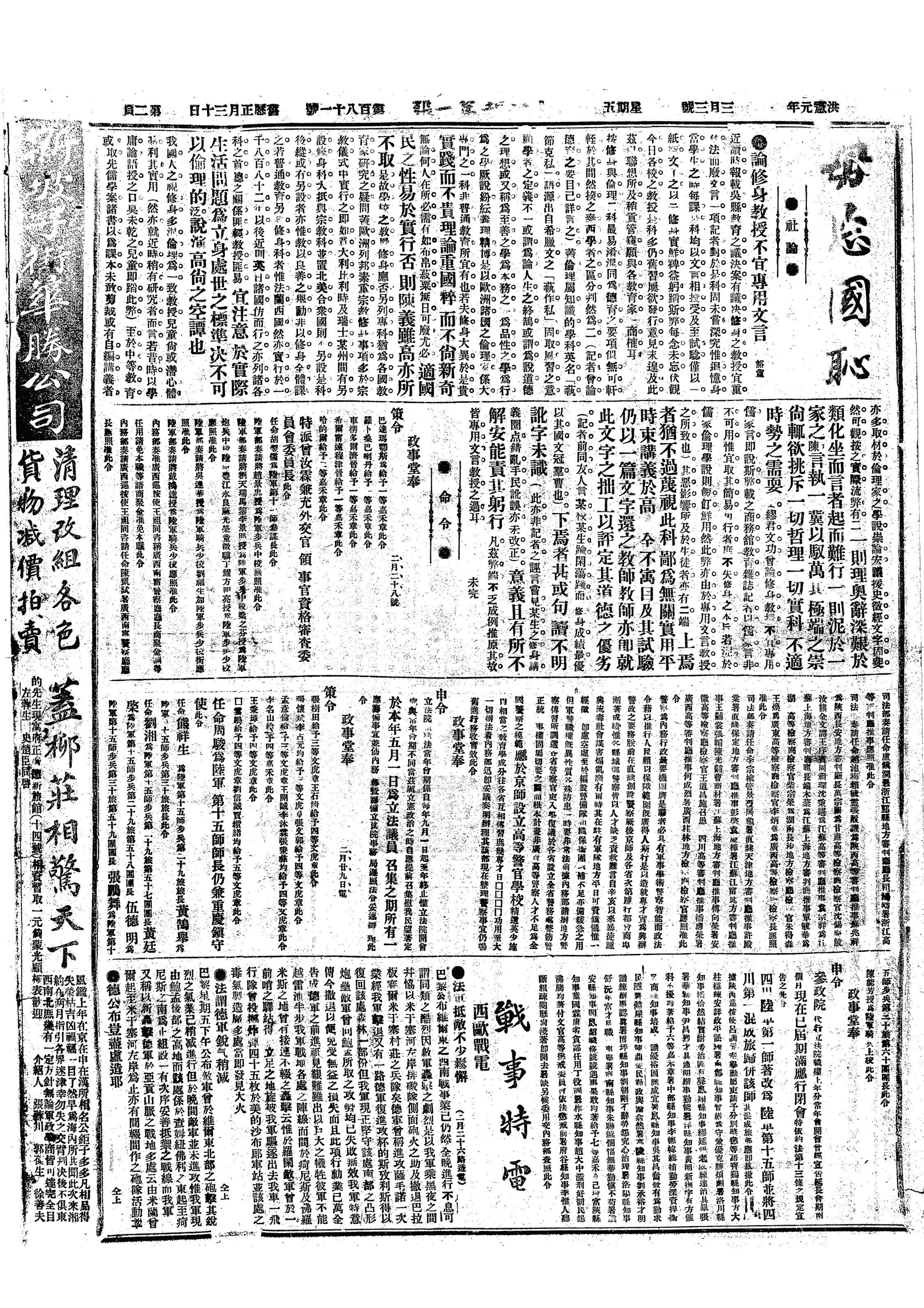 中华民国史事日志>19160303