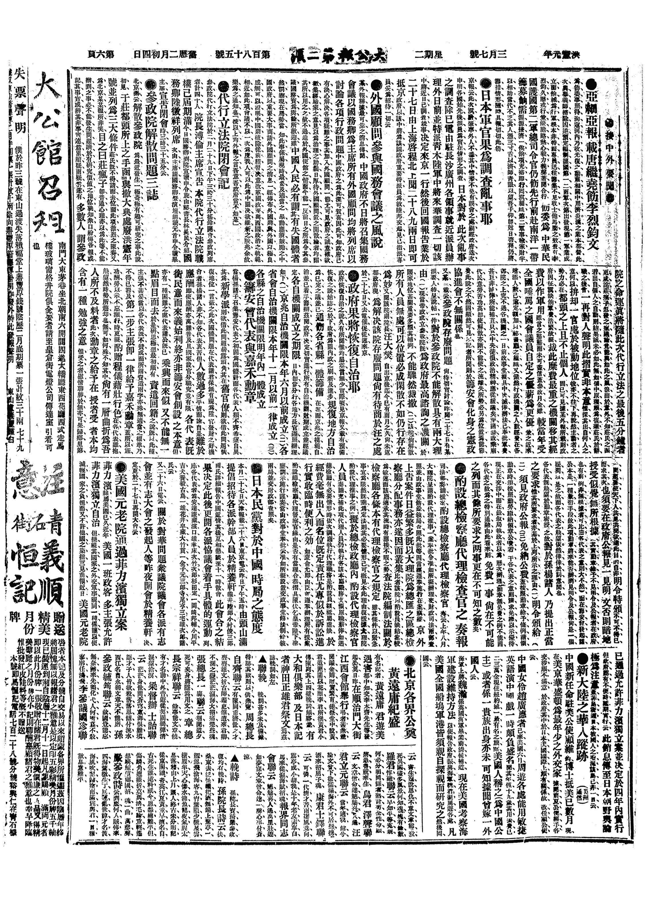 中华民国史大事记>19160307