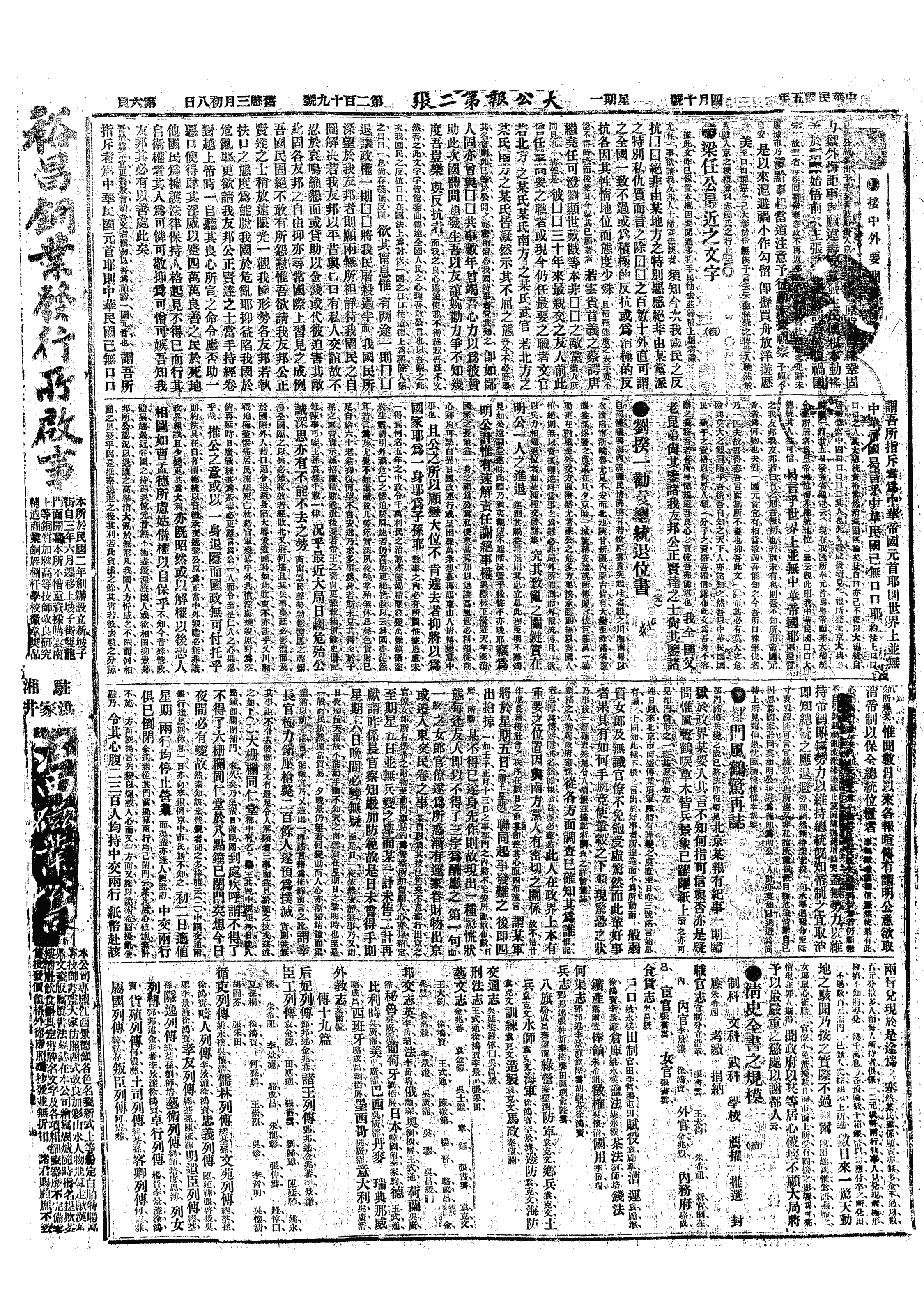 中华民国史大事记>19160410