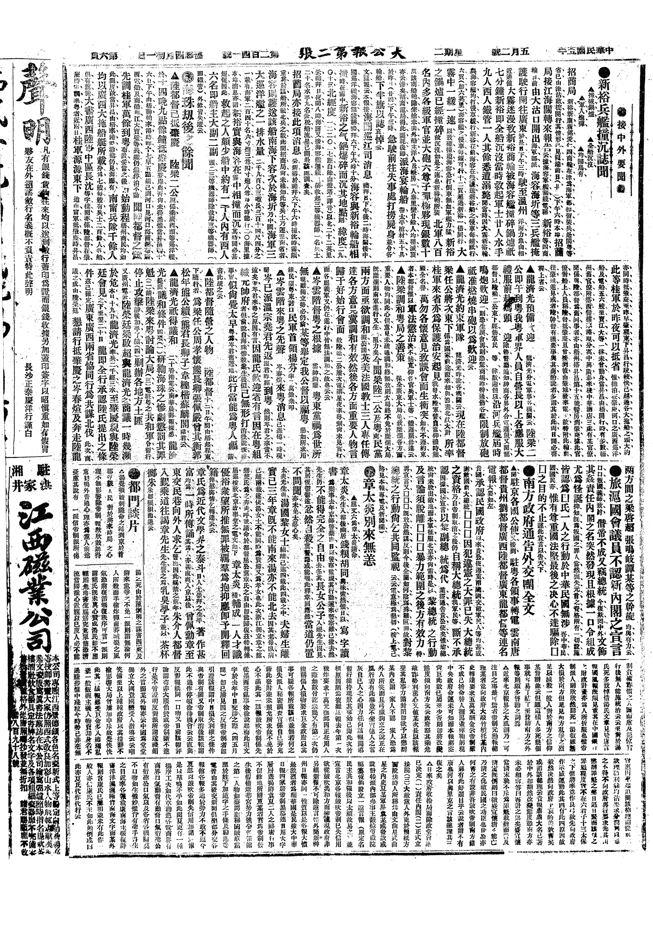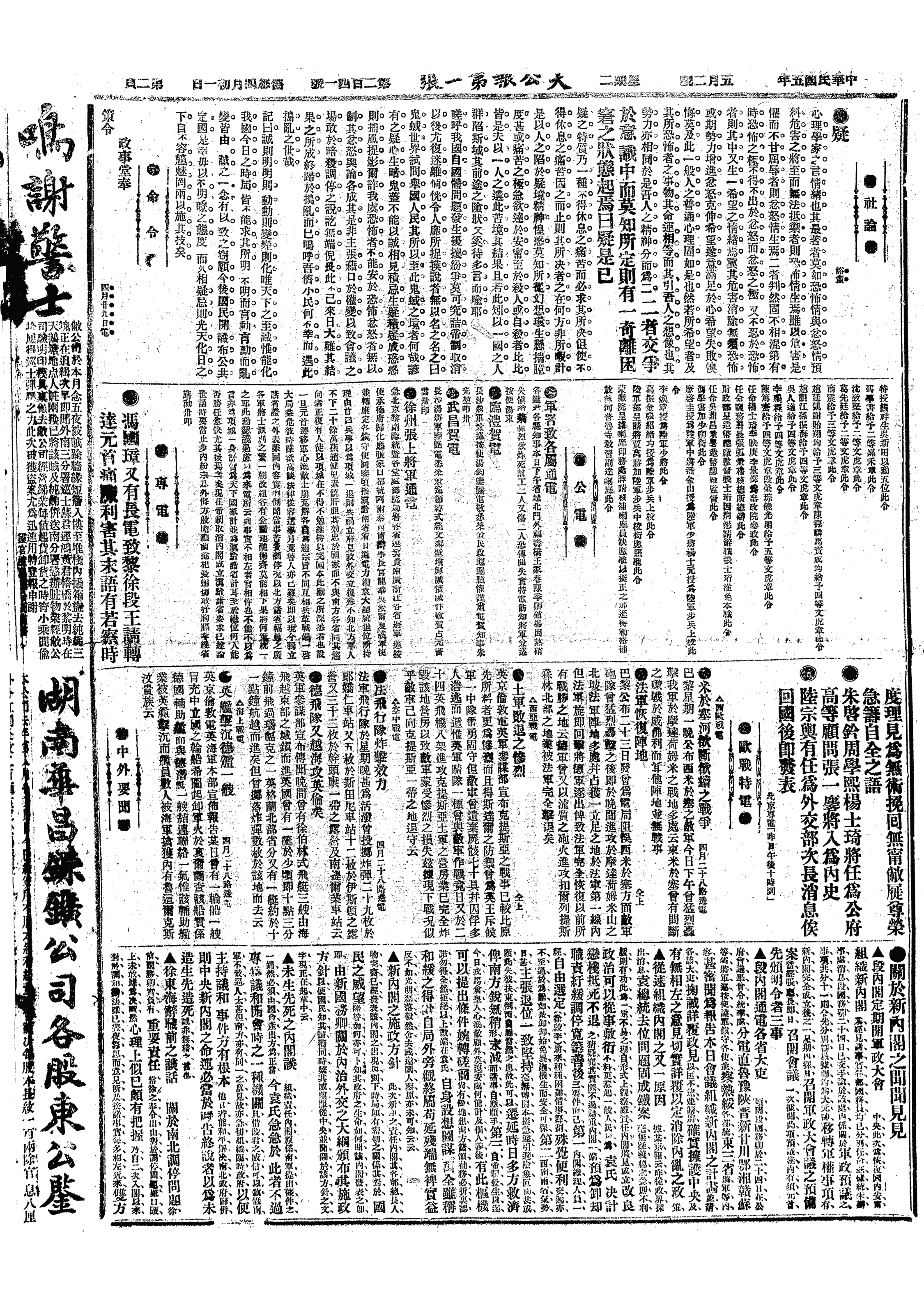 中华民国史大事记>19160502