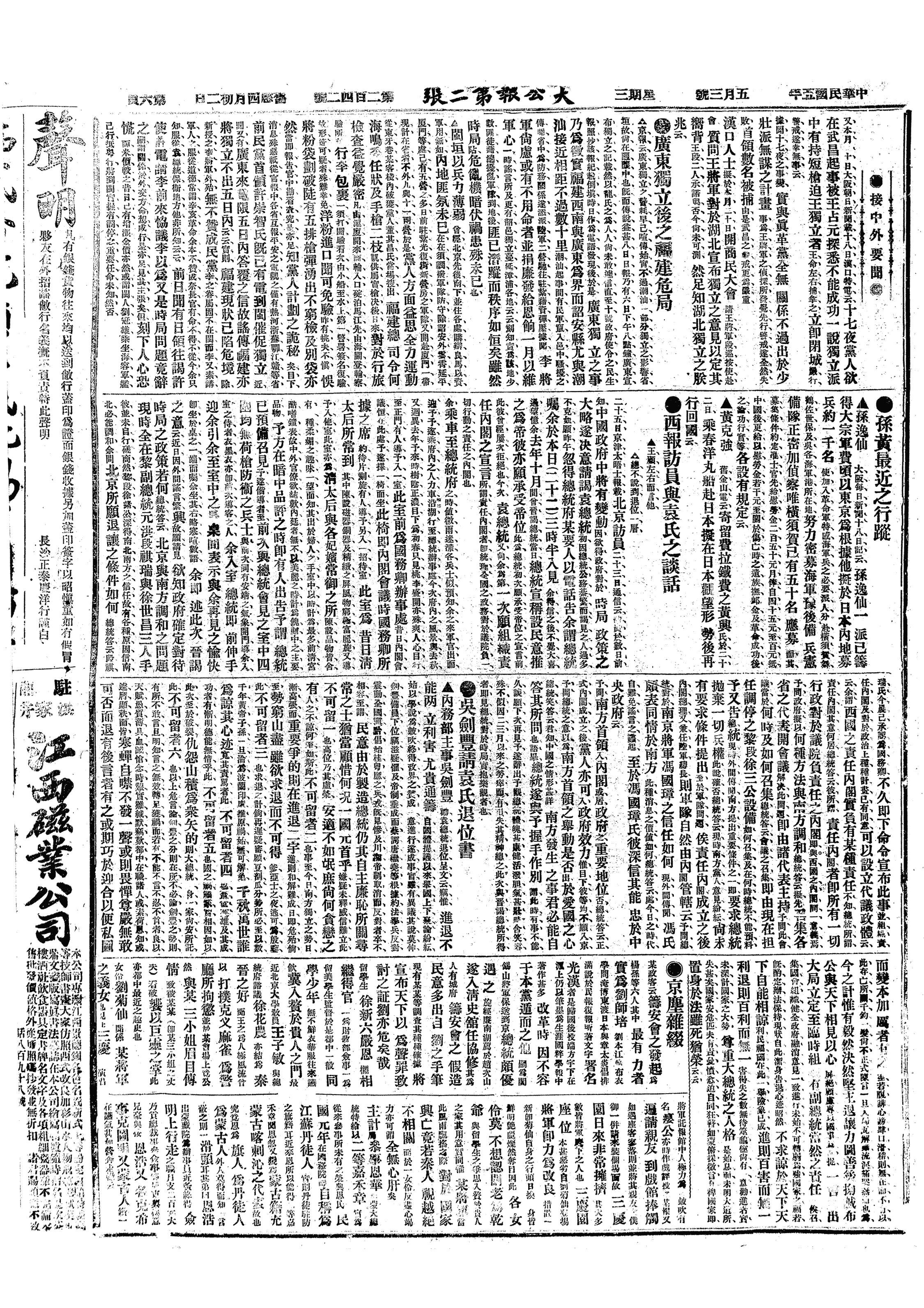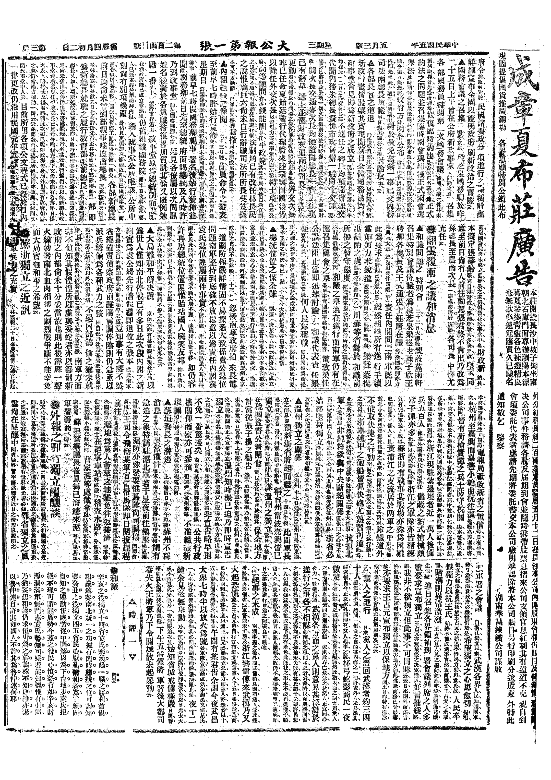 中华民国史大事记>19160503