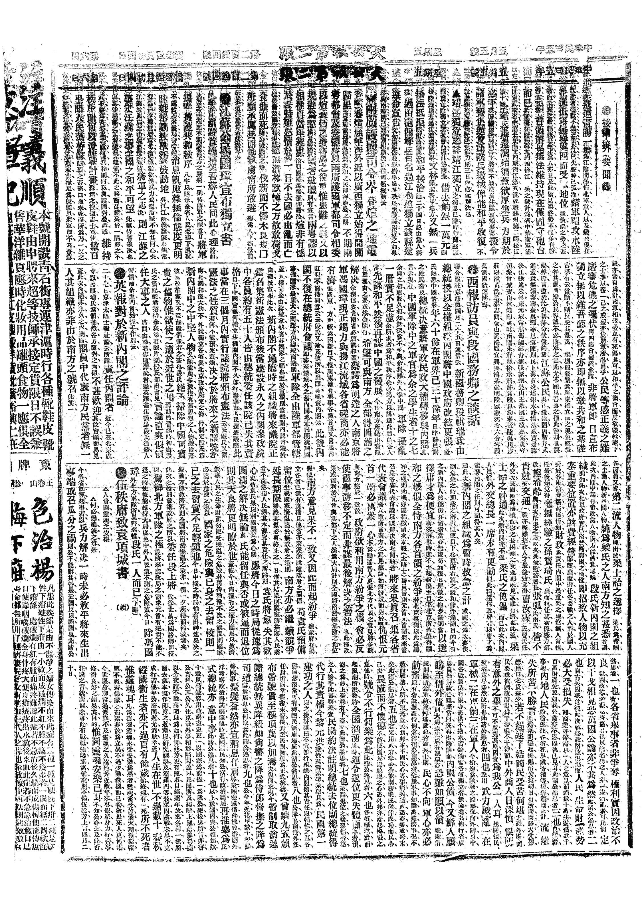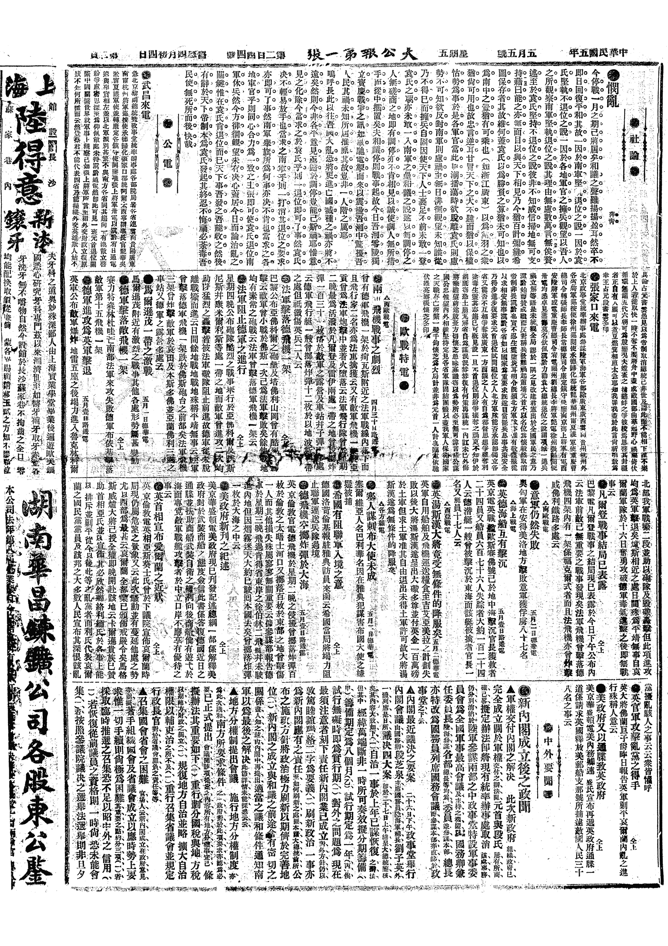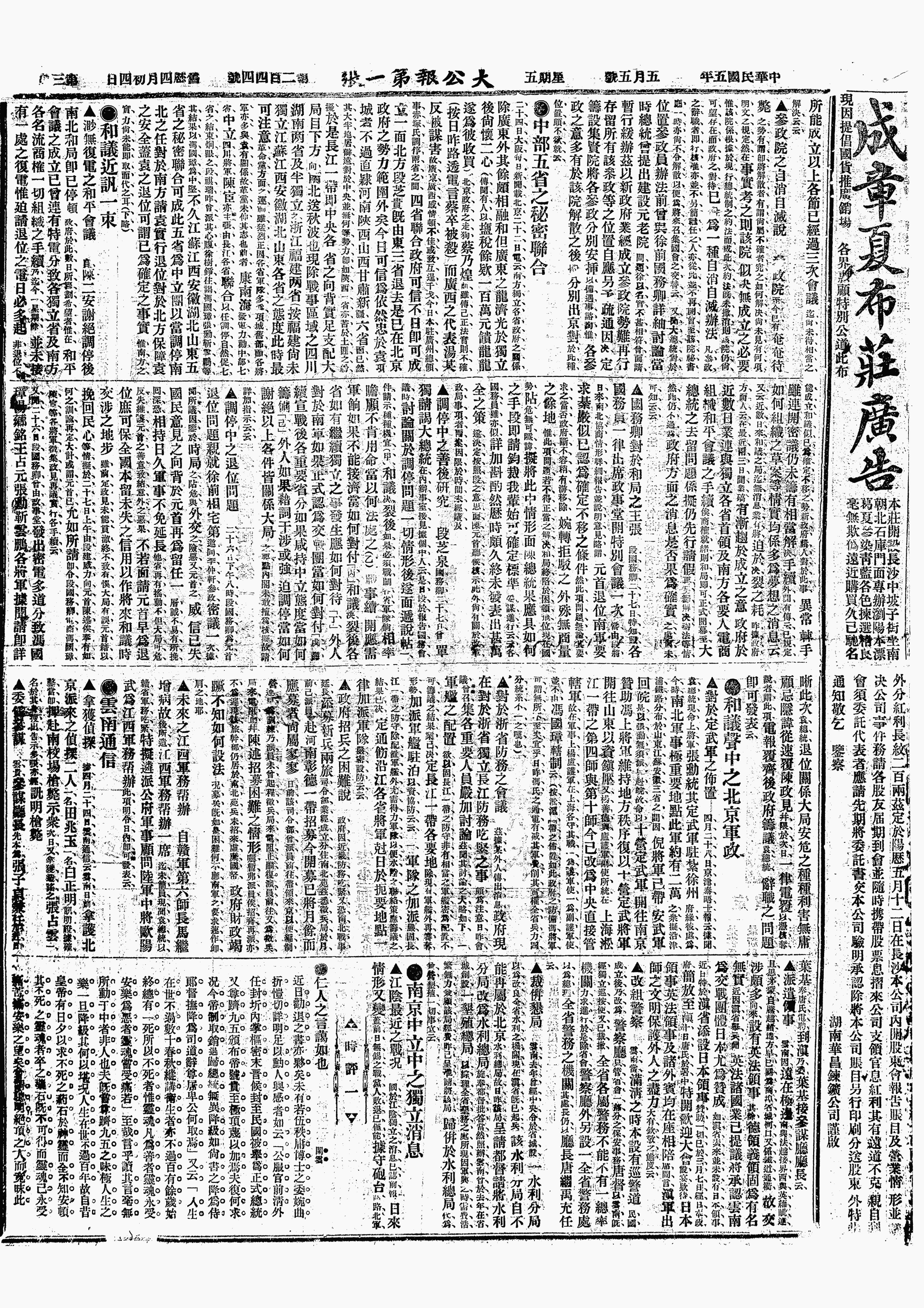 中华民国史大事记>19160505