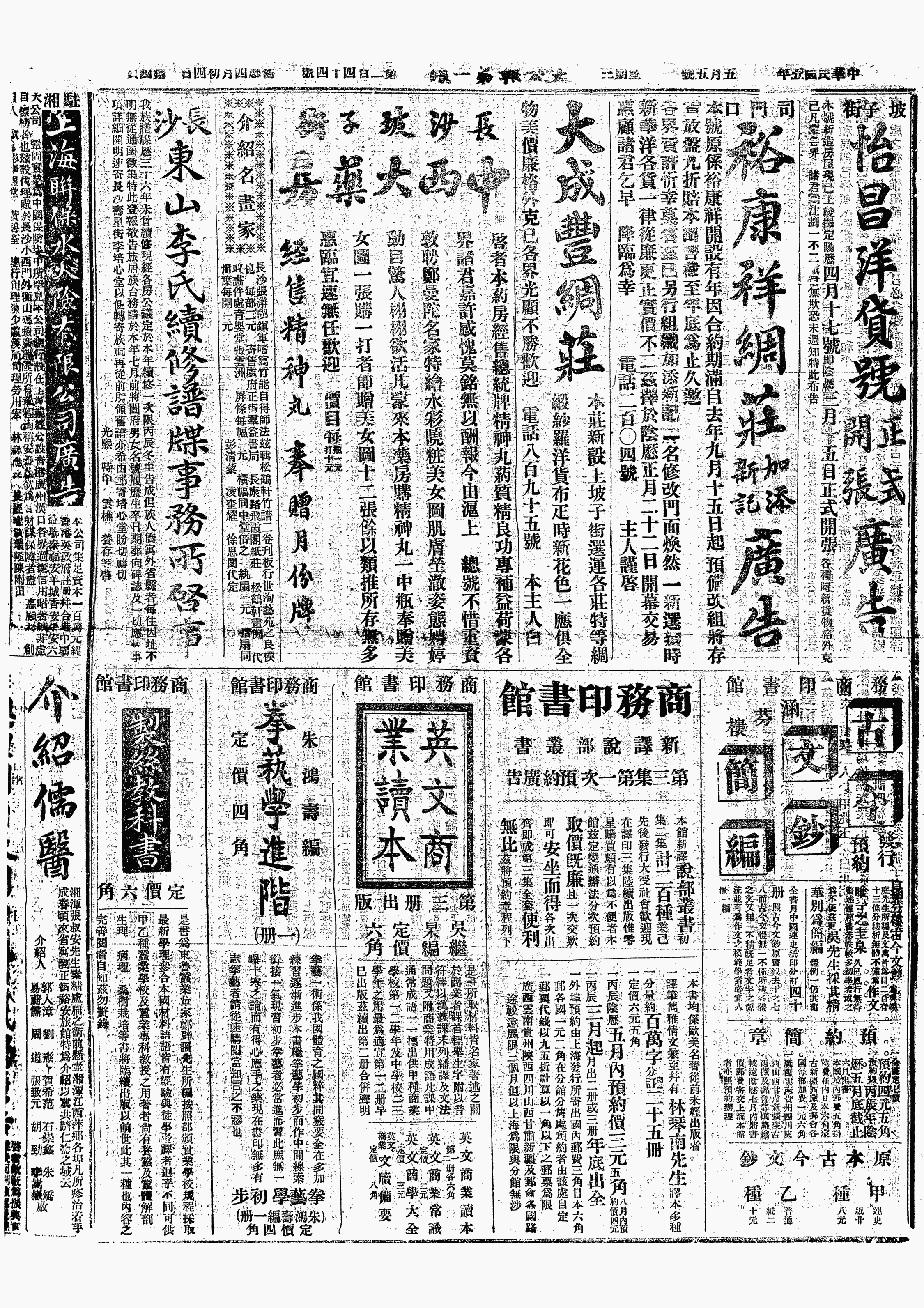 饭后看《吕氏春秋》。星平先生来言《蜀报》主笔事,余言不能任论说、时评,仅能任笔记;因绍介孙少荆。晚少荆来谈,交《生香集》二本,徐海槎着学王次回者。游泽芳能看书,如《红楼梦》、《纳书楹曲谱》皆能看。余送渠《秋水集》,渠甚高兴,曾对星师述之。
