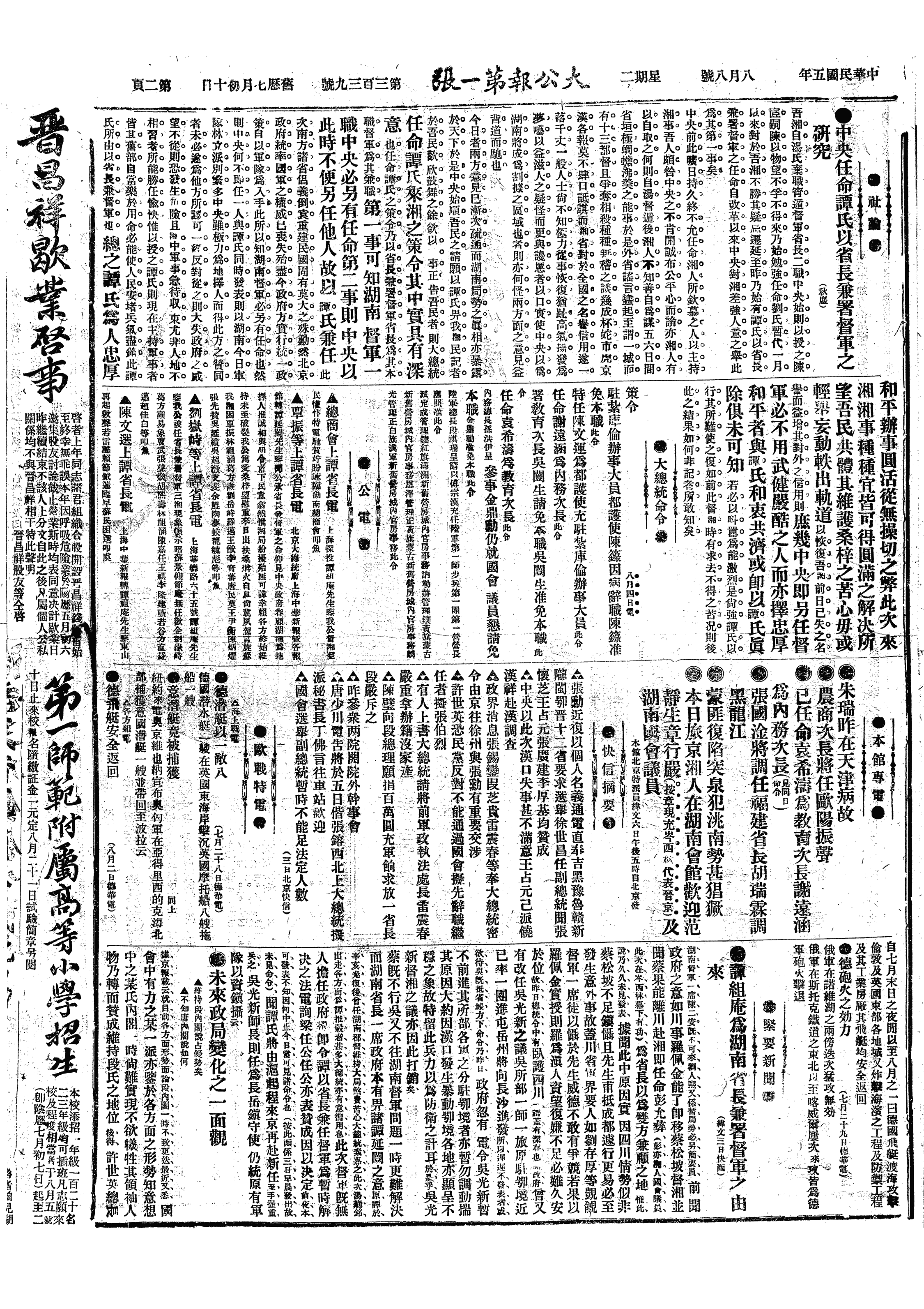 中华民国史事日志>19160808
