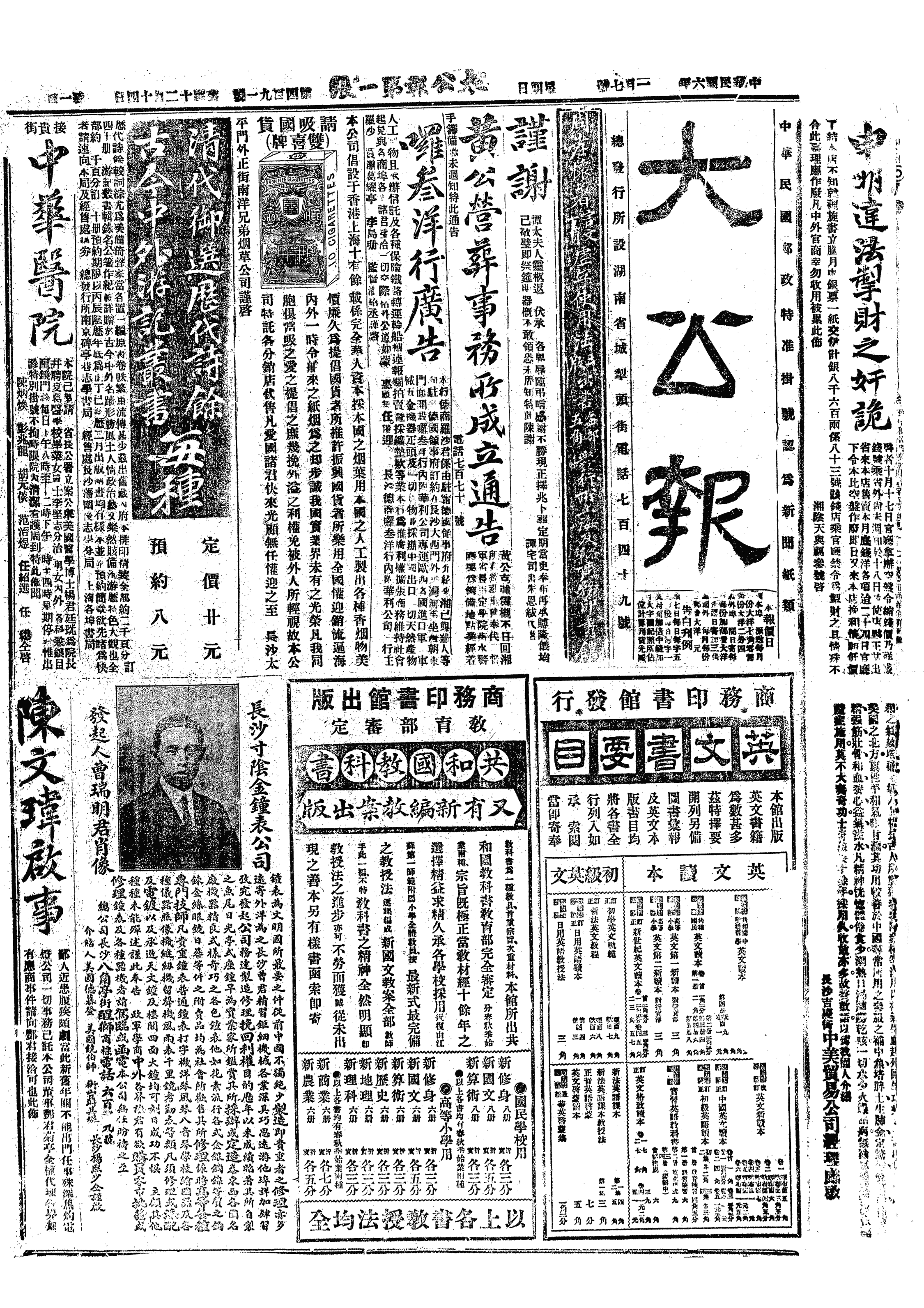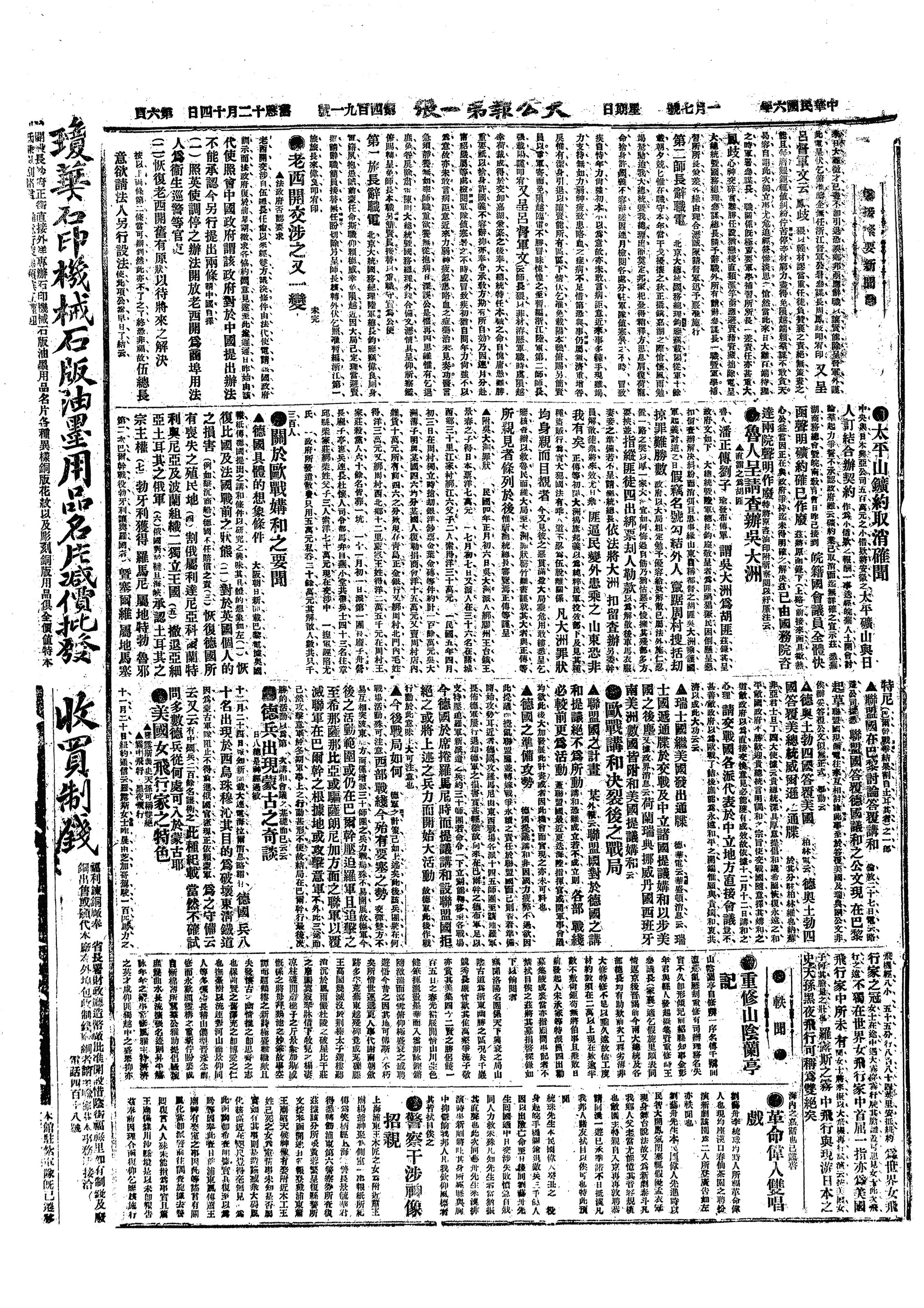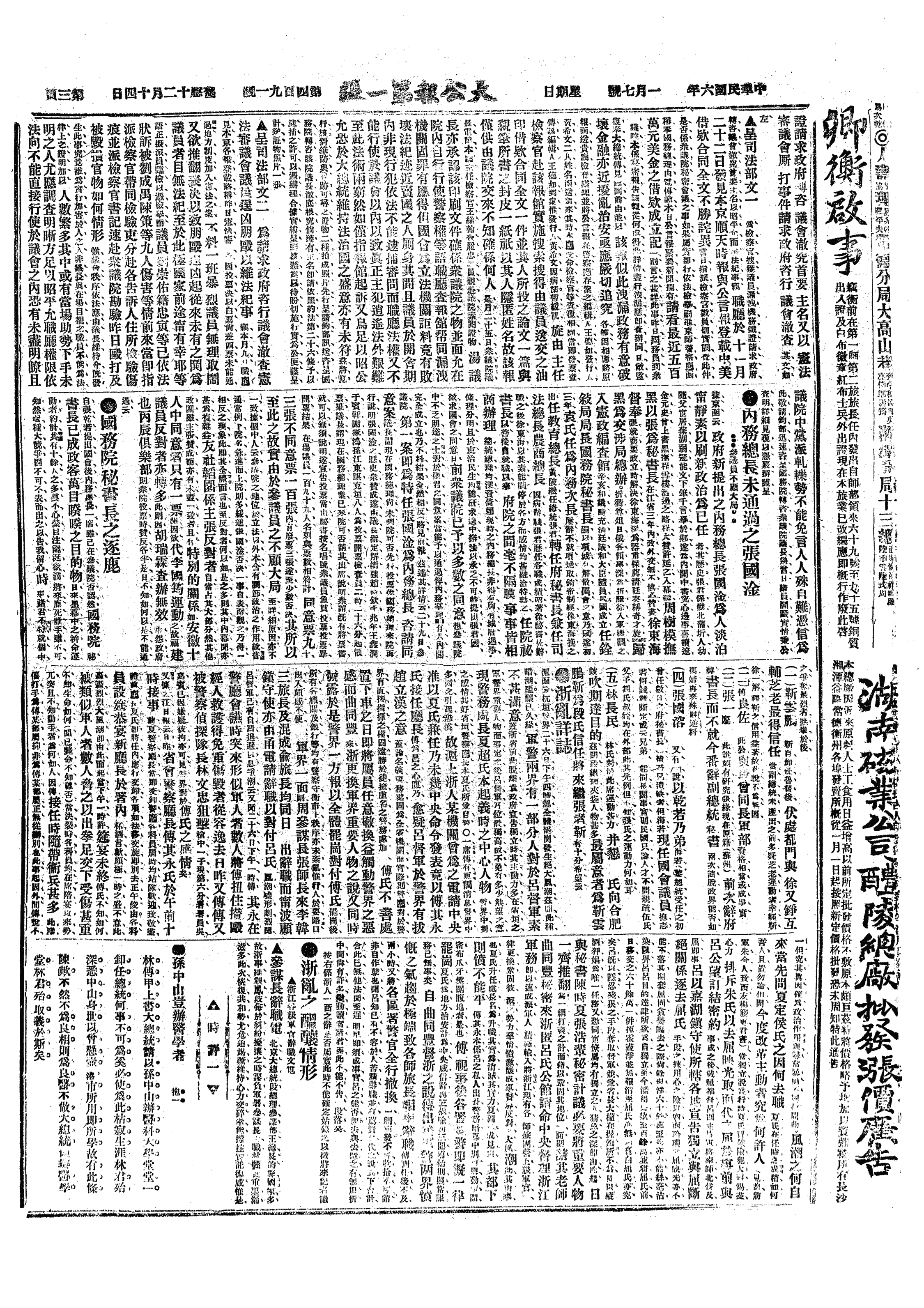 中华民国史大事记>19170107