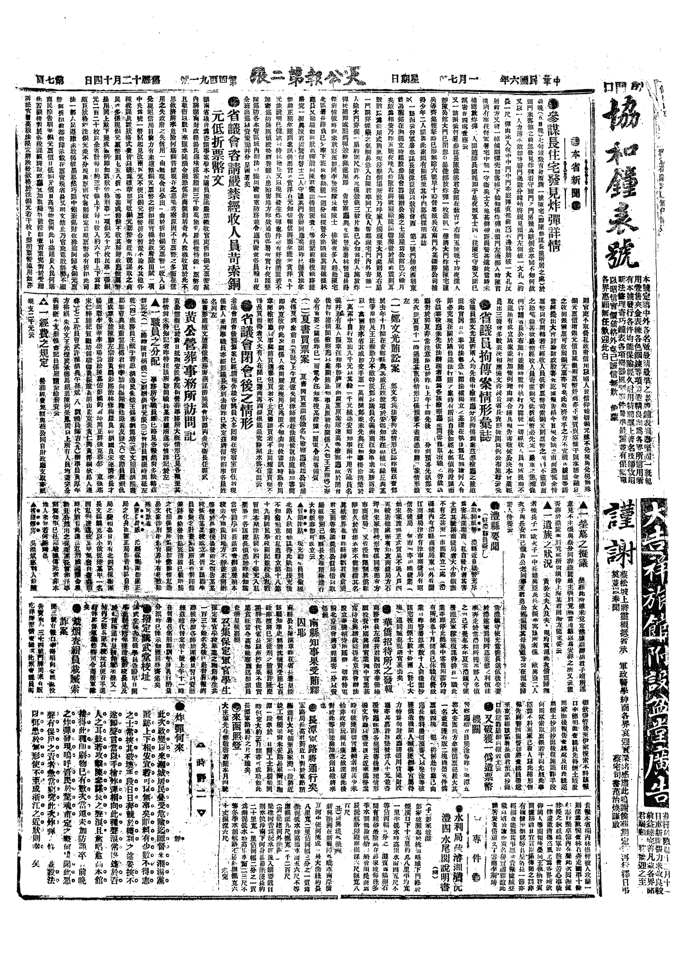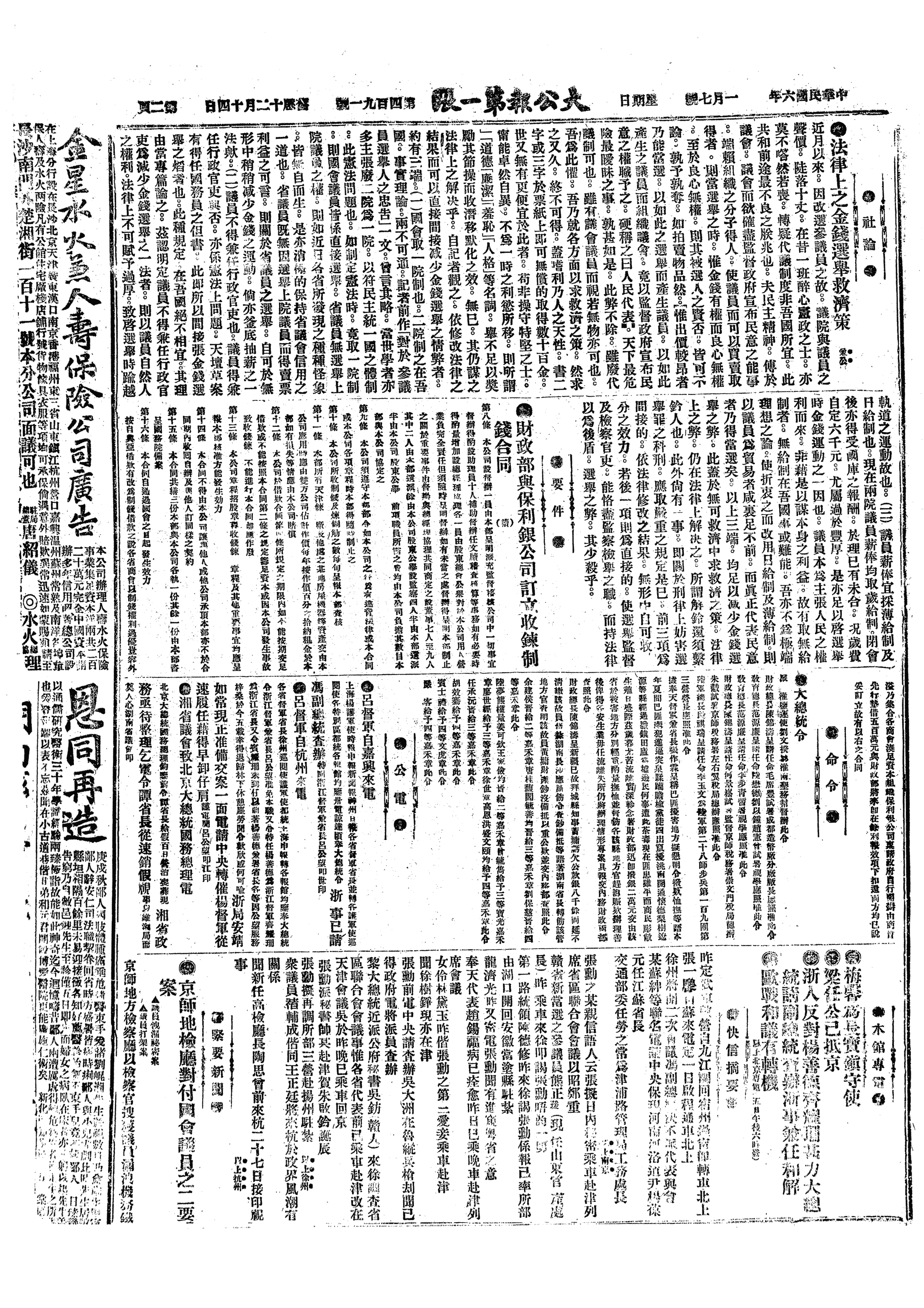 中华民国史事日志>19170107