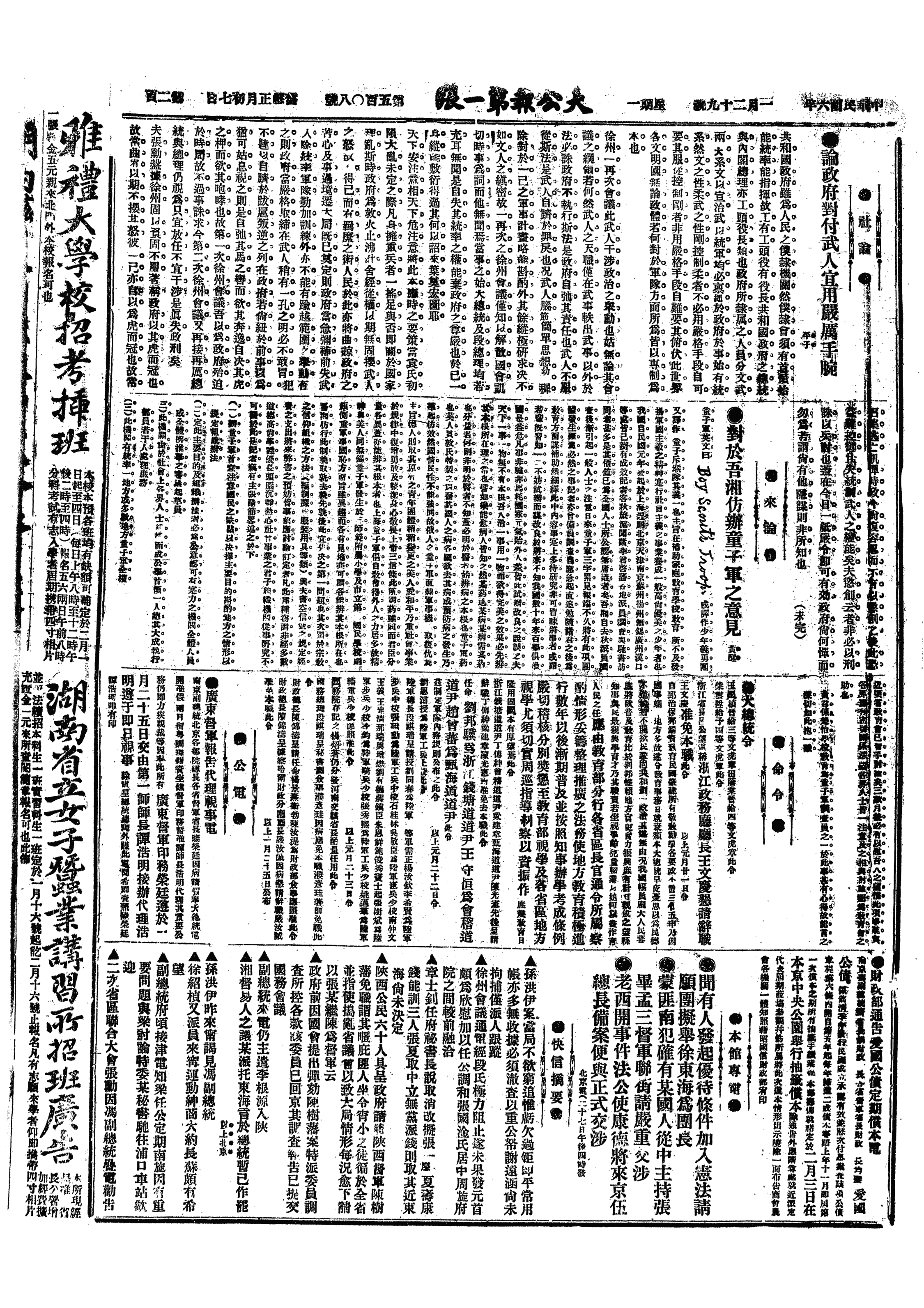 中华民国史事日志>19170129