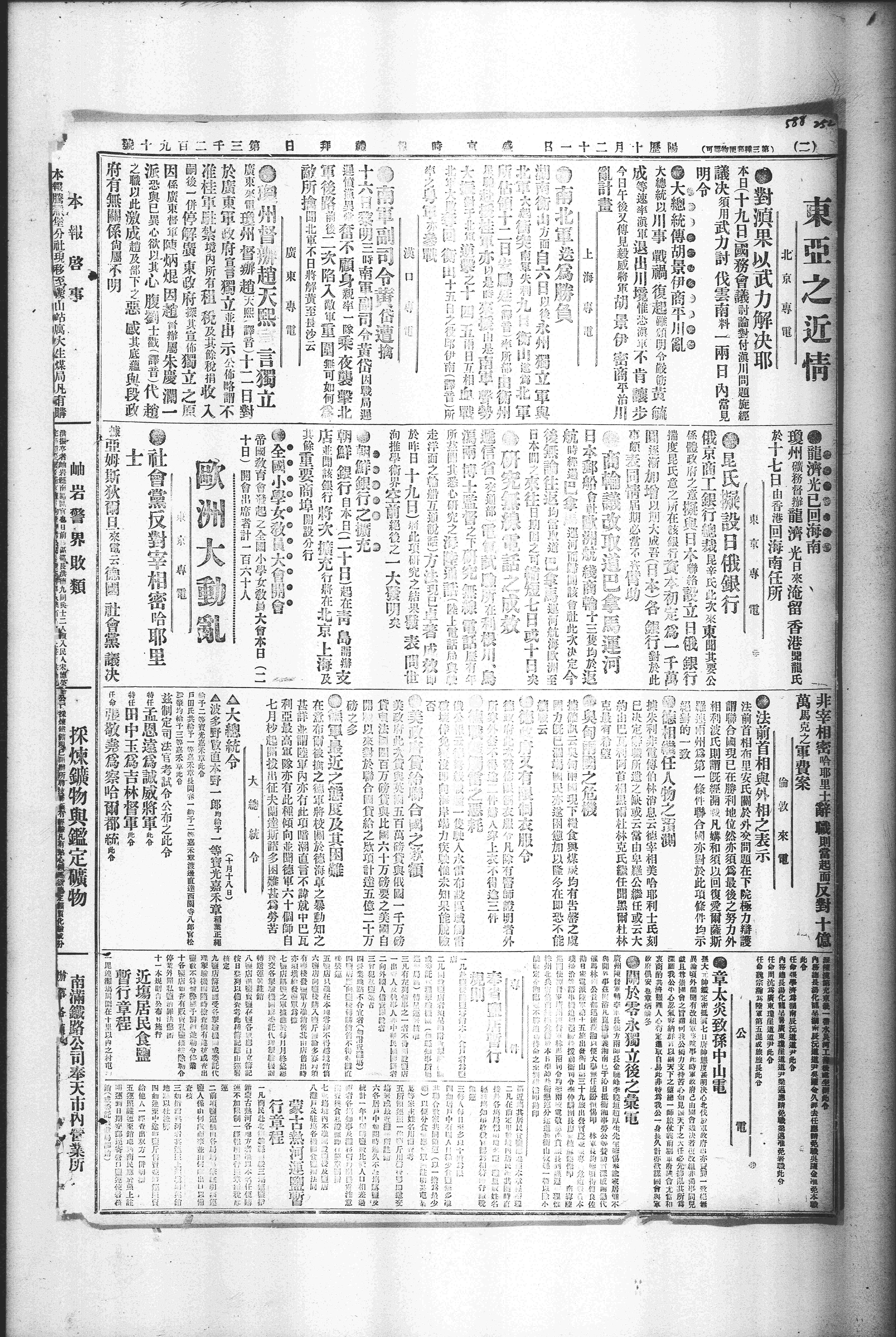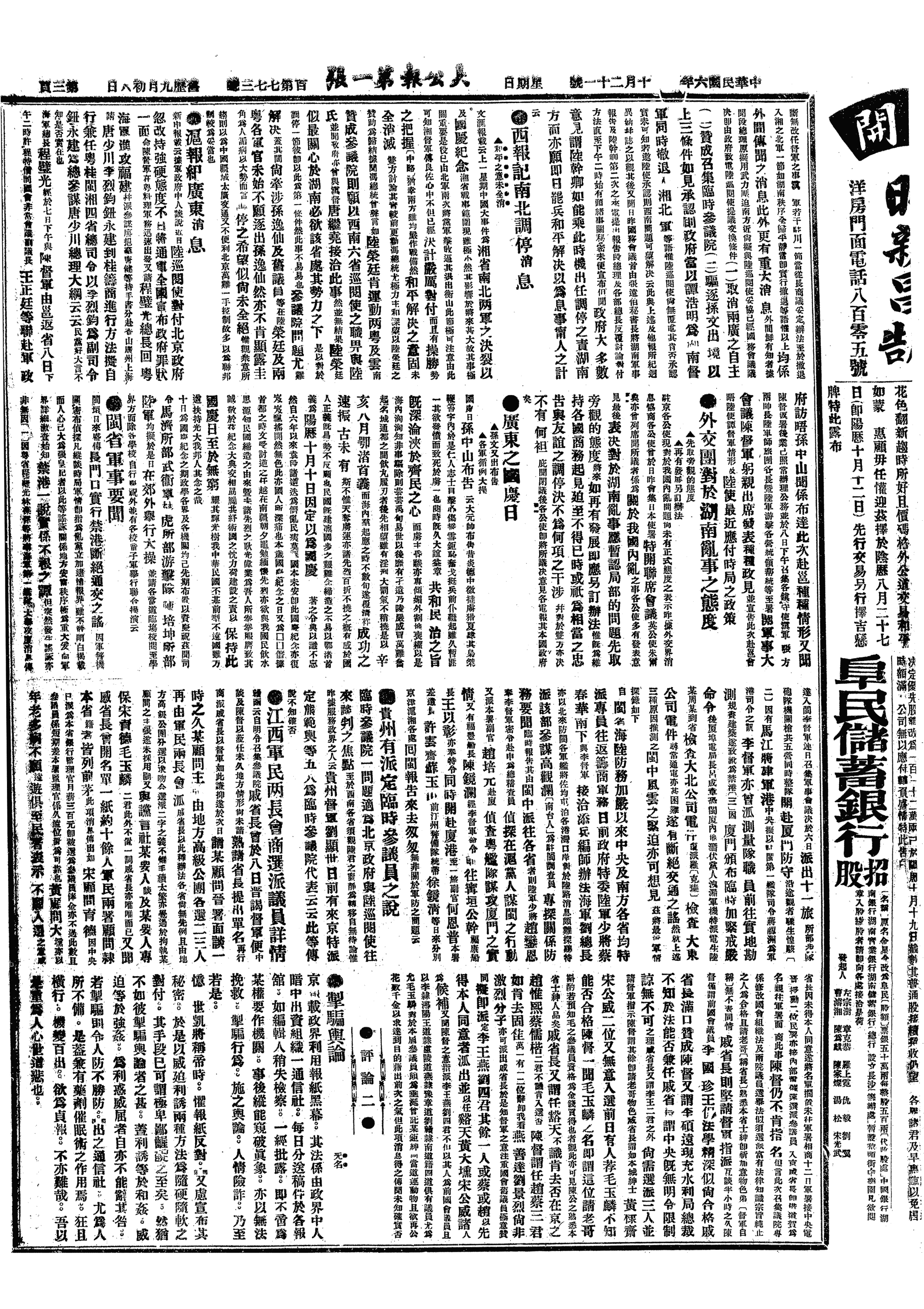 中华民国史大事记>19171021