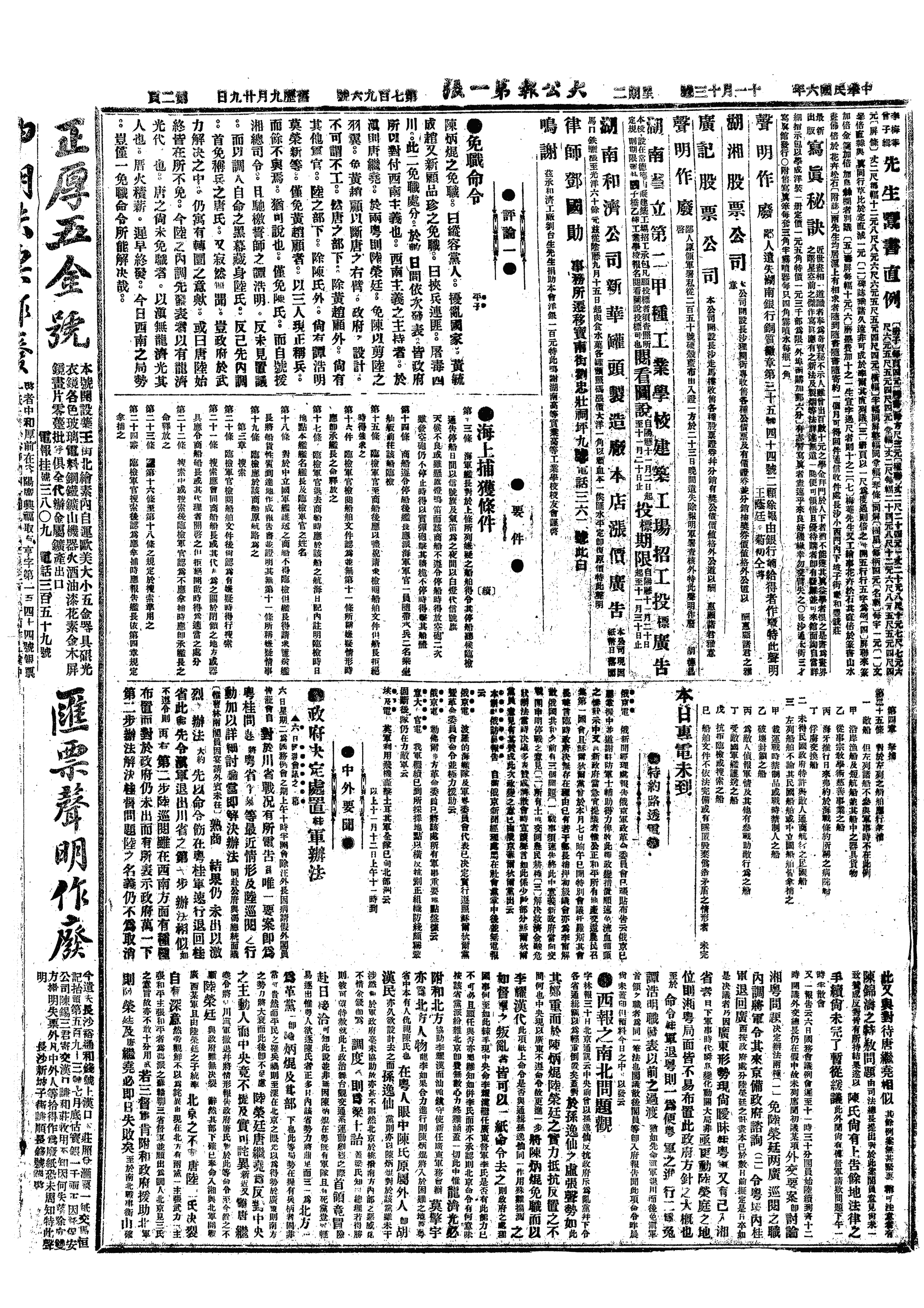 中华民国史大事记>19171113