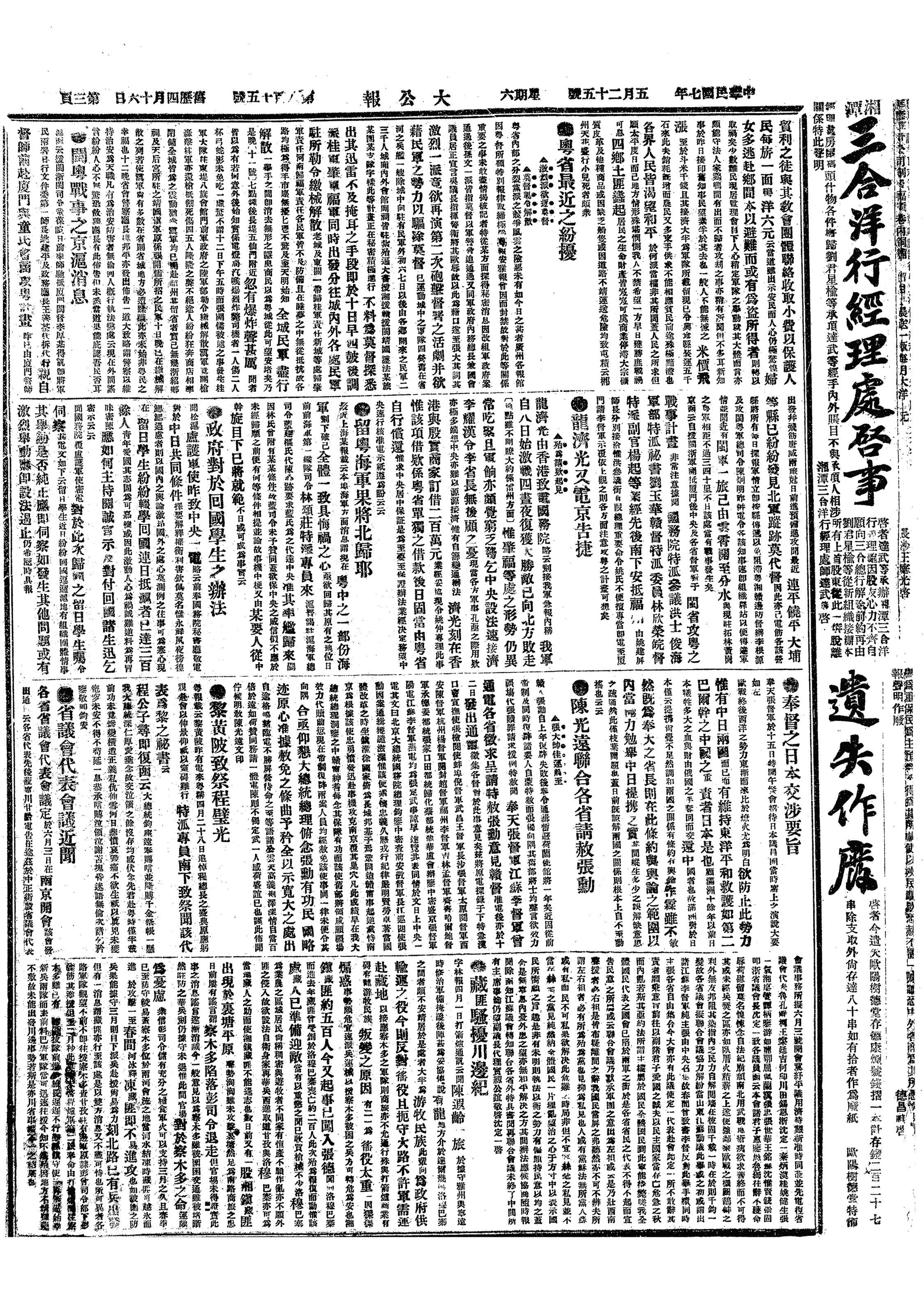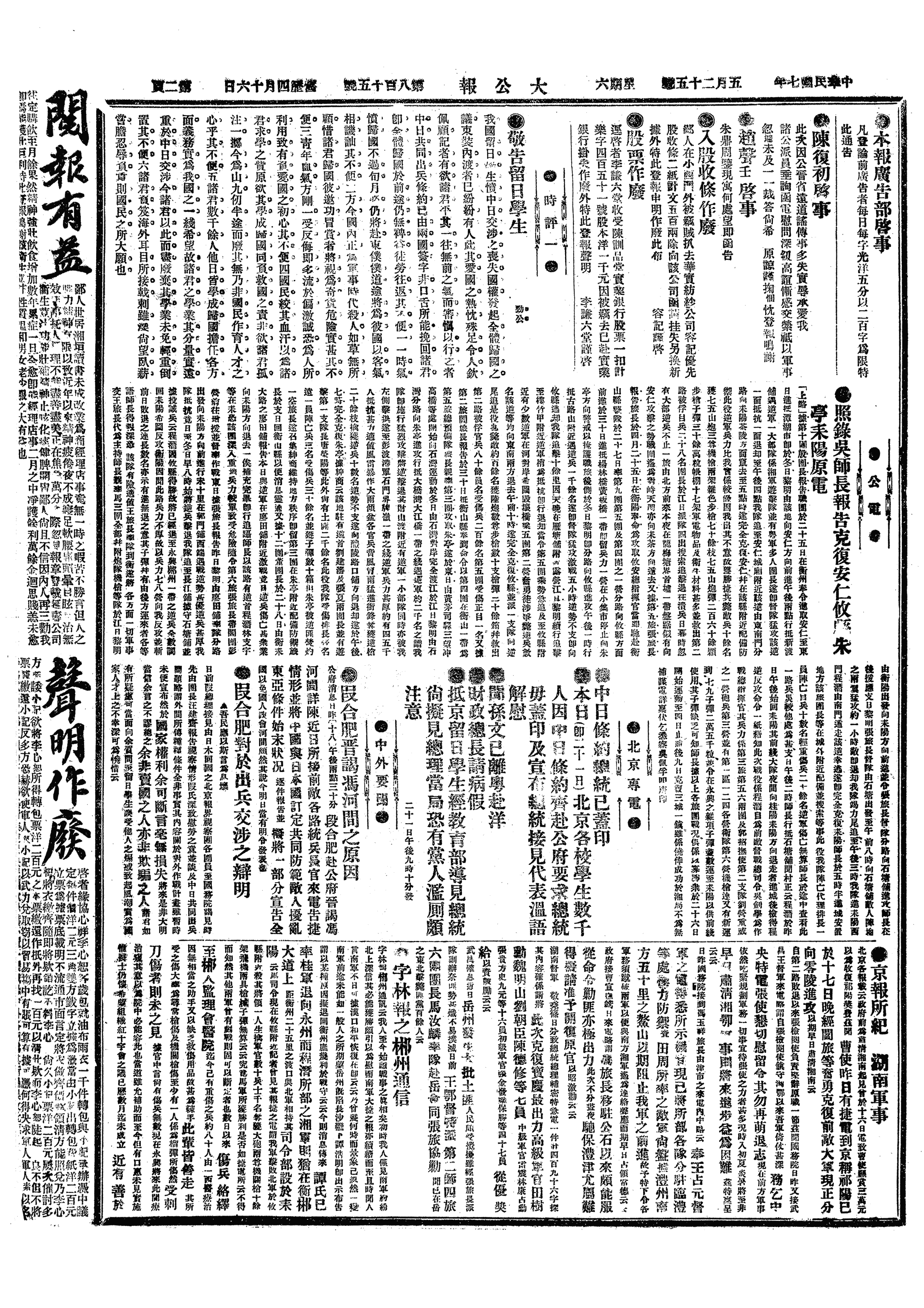 中华民国史大事记>19180525