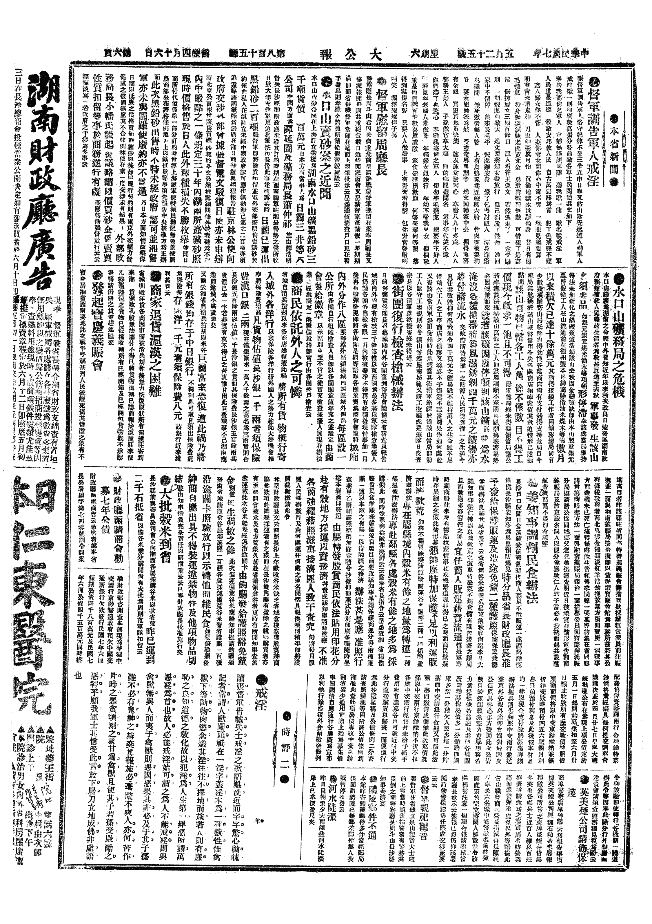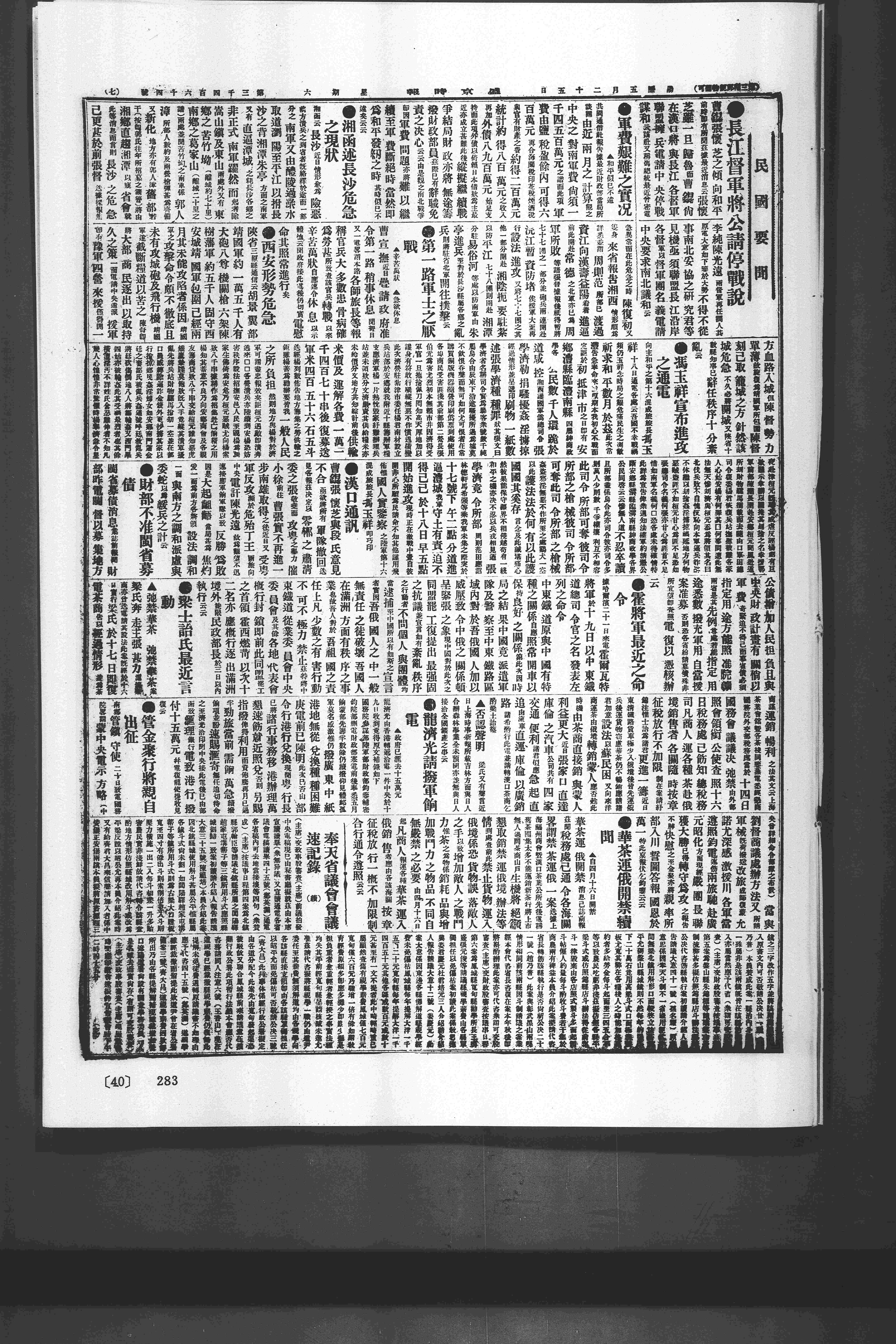 5,25(四,一六)湖南前线南北军会商停战。