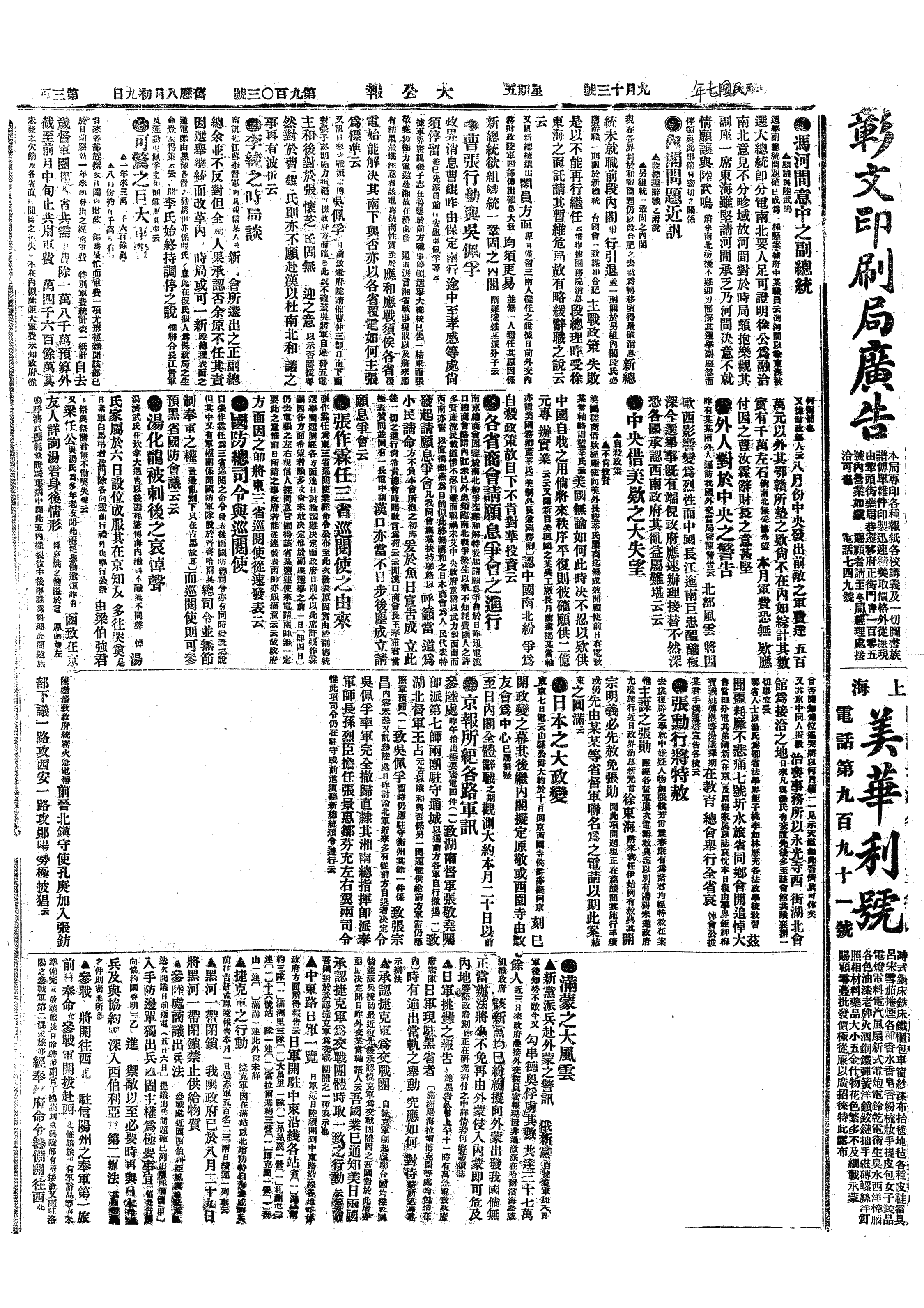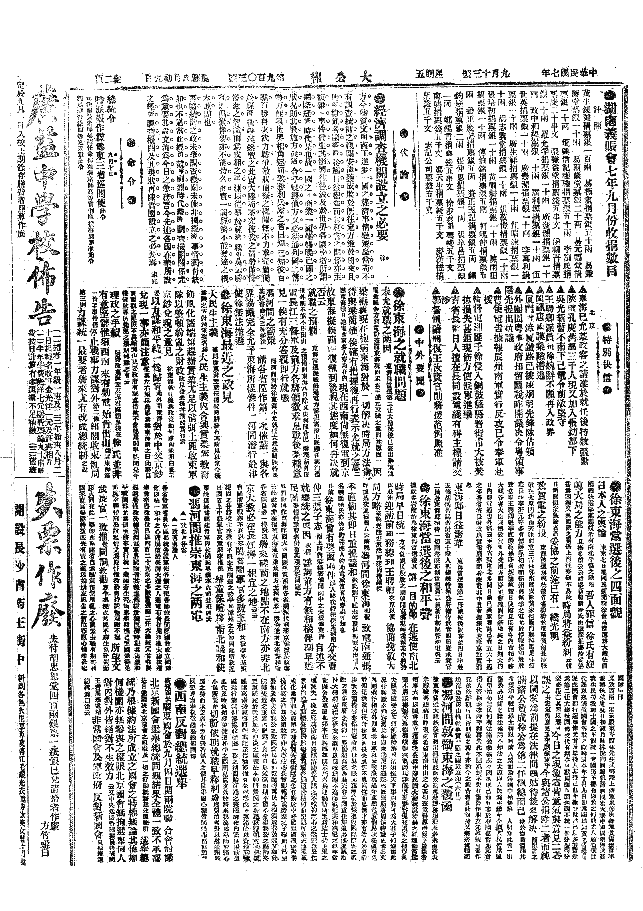中华民国史大事记>19180913