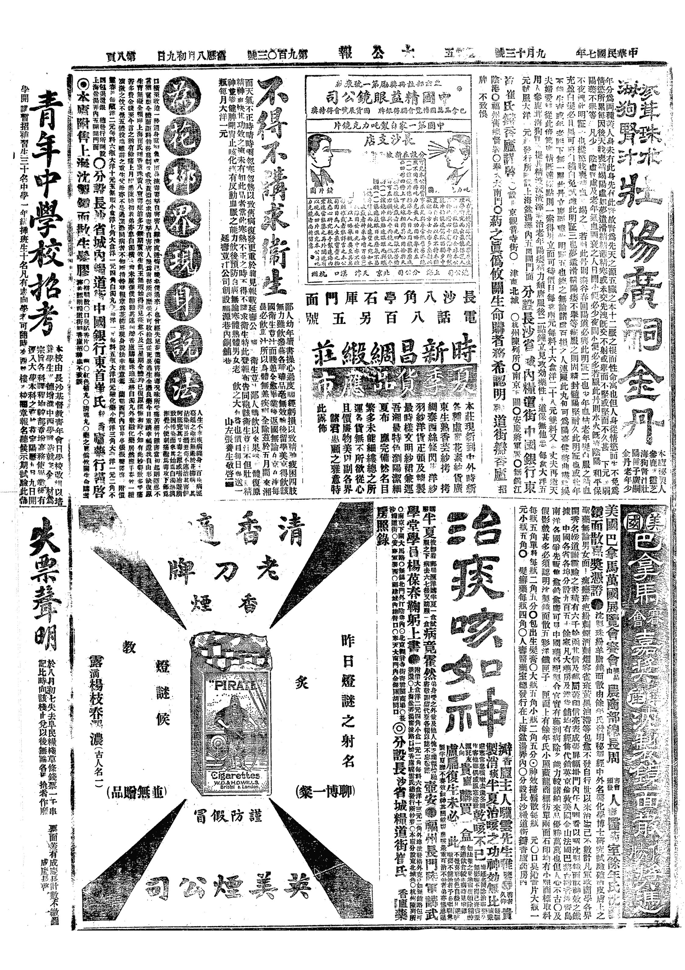 △ 徐世昌电皖、浙、闽、湘、鄂督军倪嗣冲、杨善德、李厚基、张敬尧、王占元,告以国务院已派马芹甫在上海设立中孚通讯社,已与中西各报洽妥,凡敌党诋毁中央及我军之稿,一律不登。