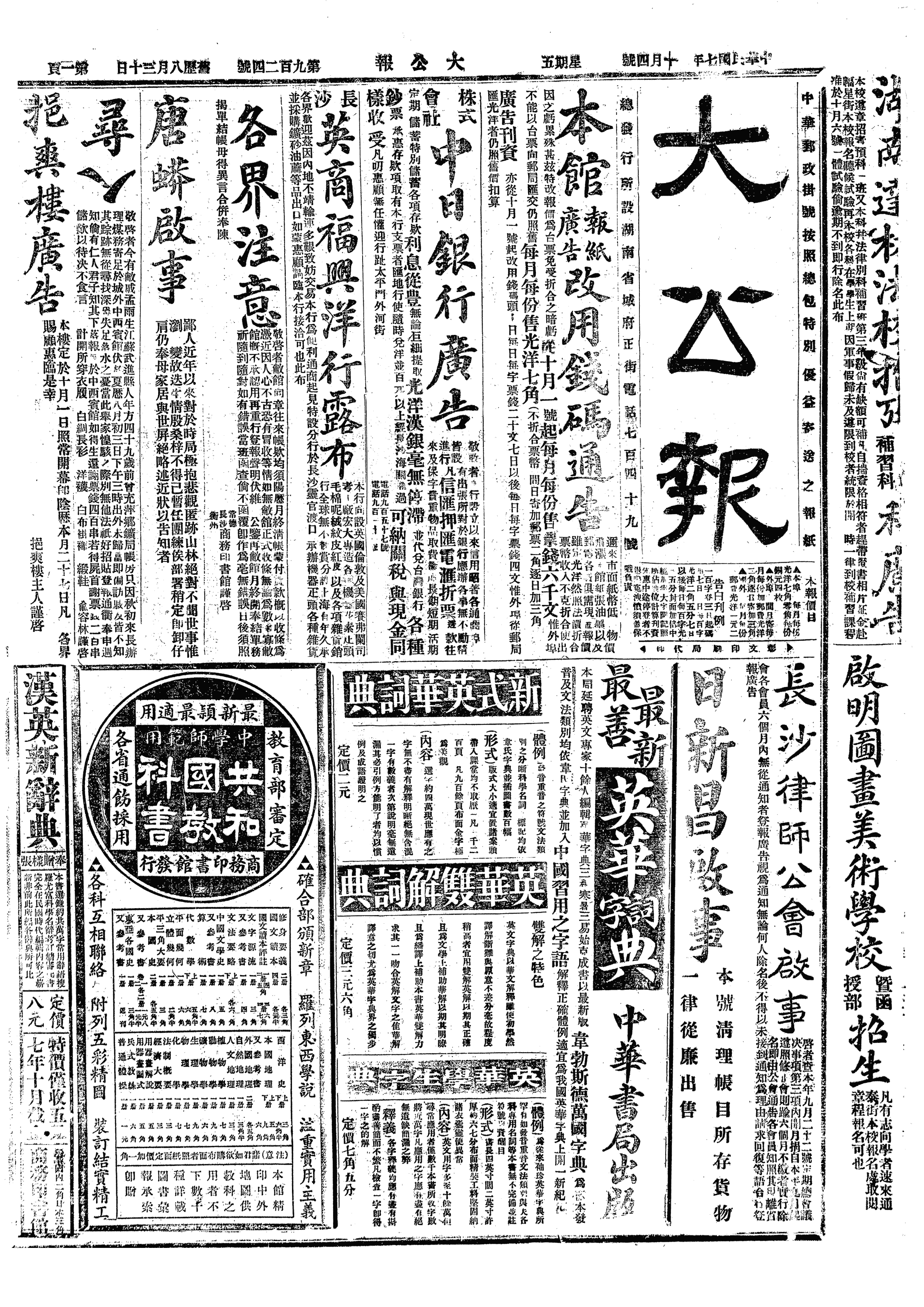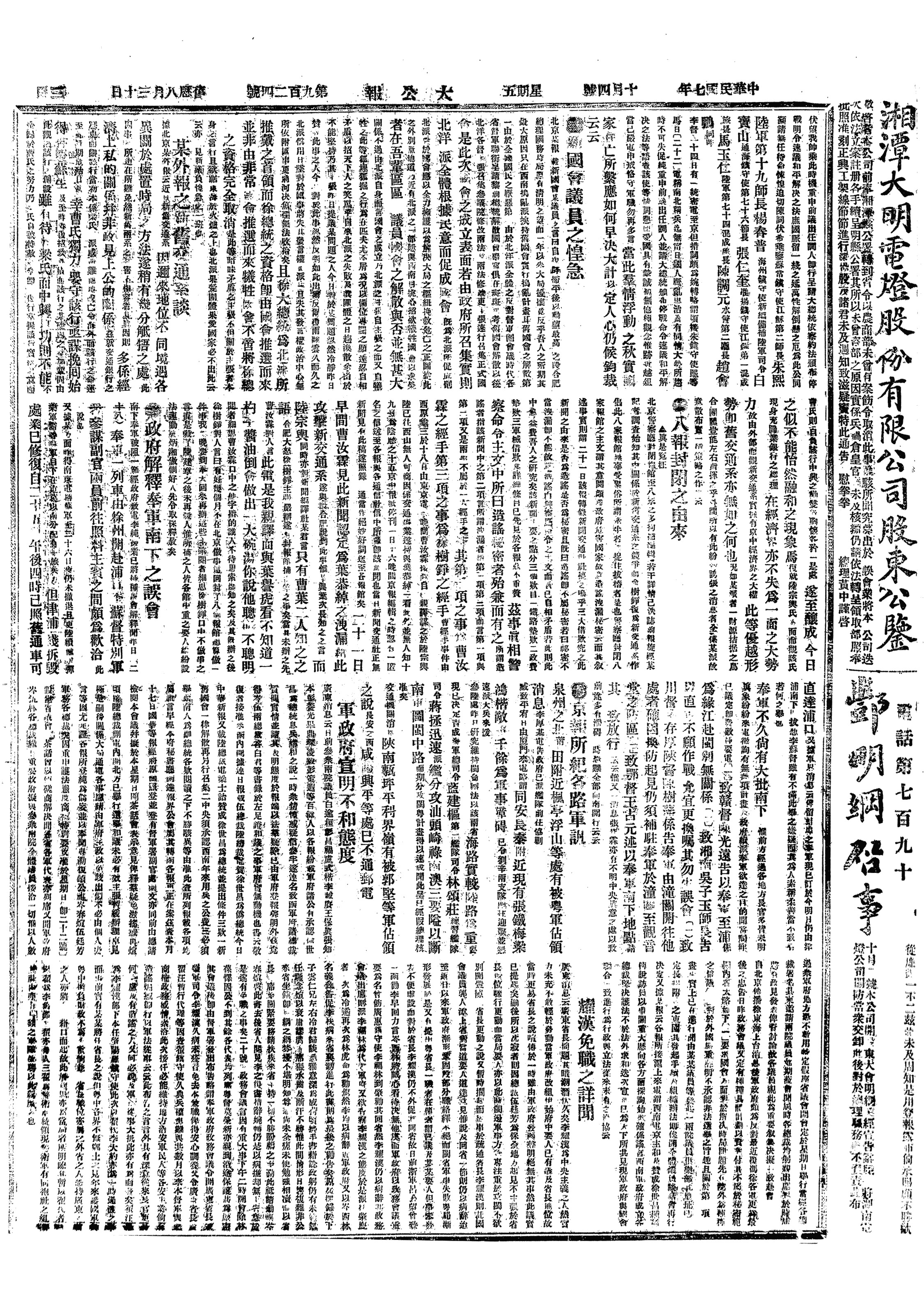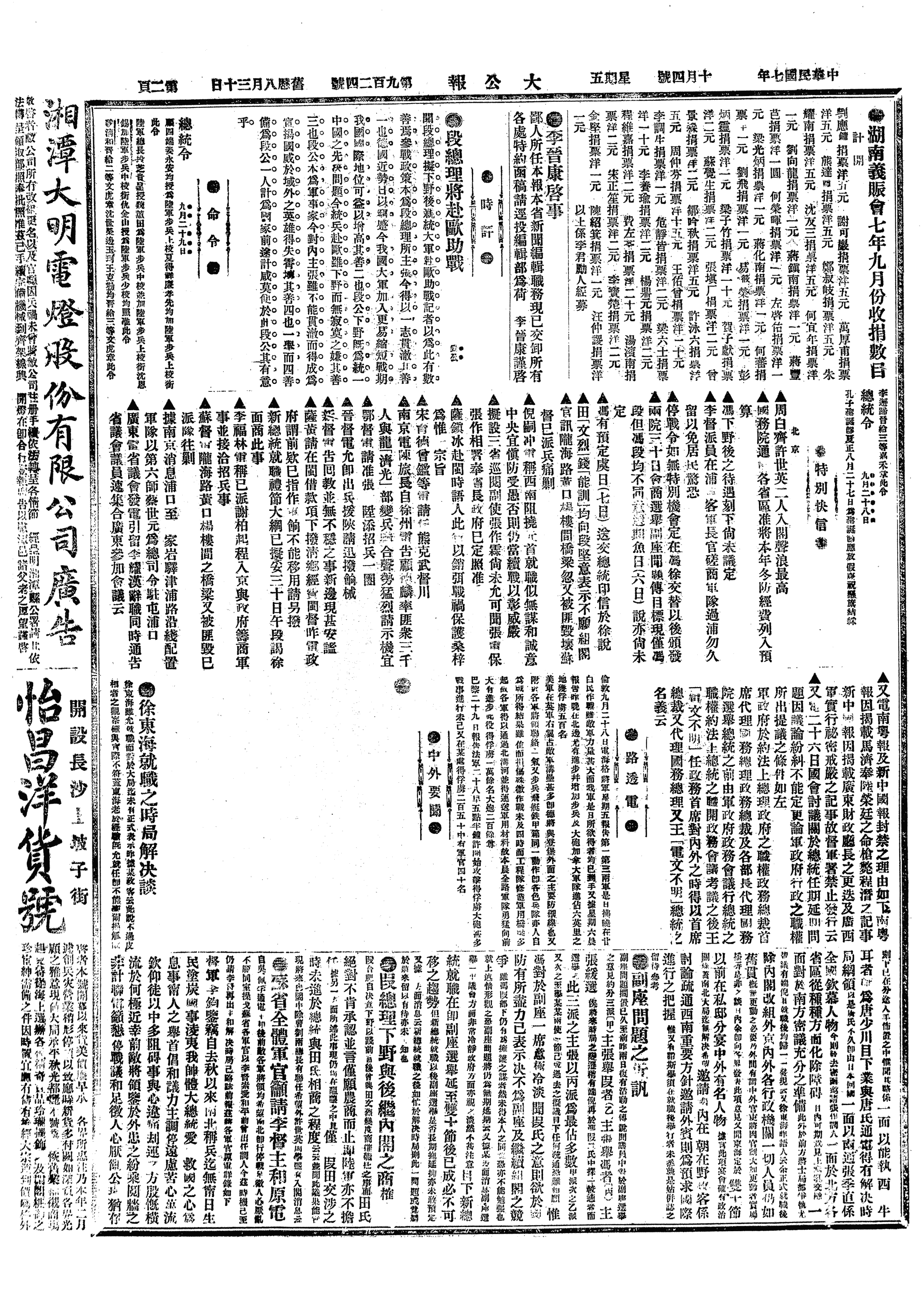 中华民国史大事记>19181004