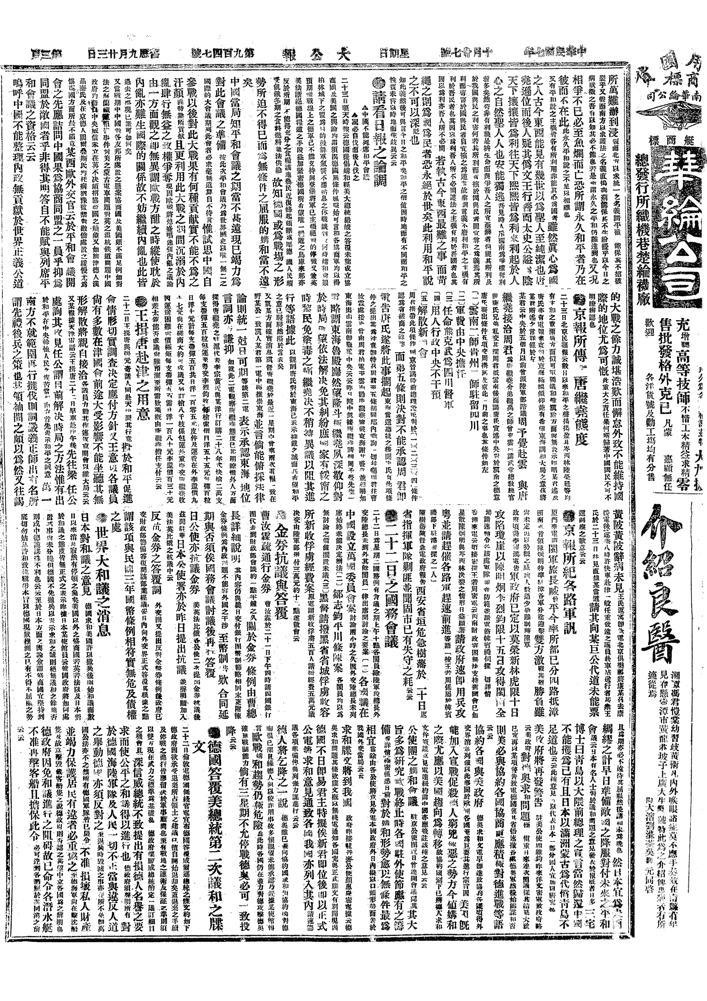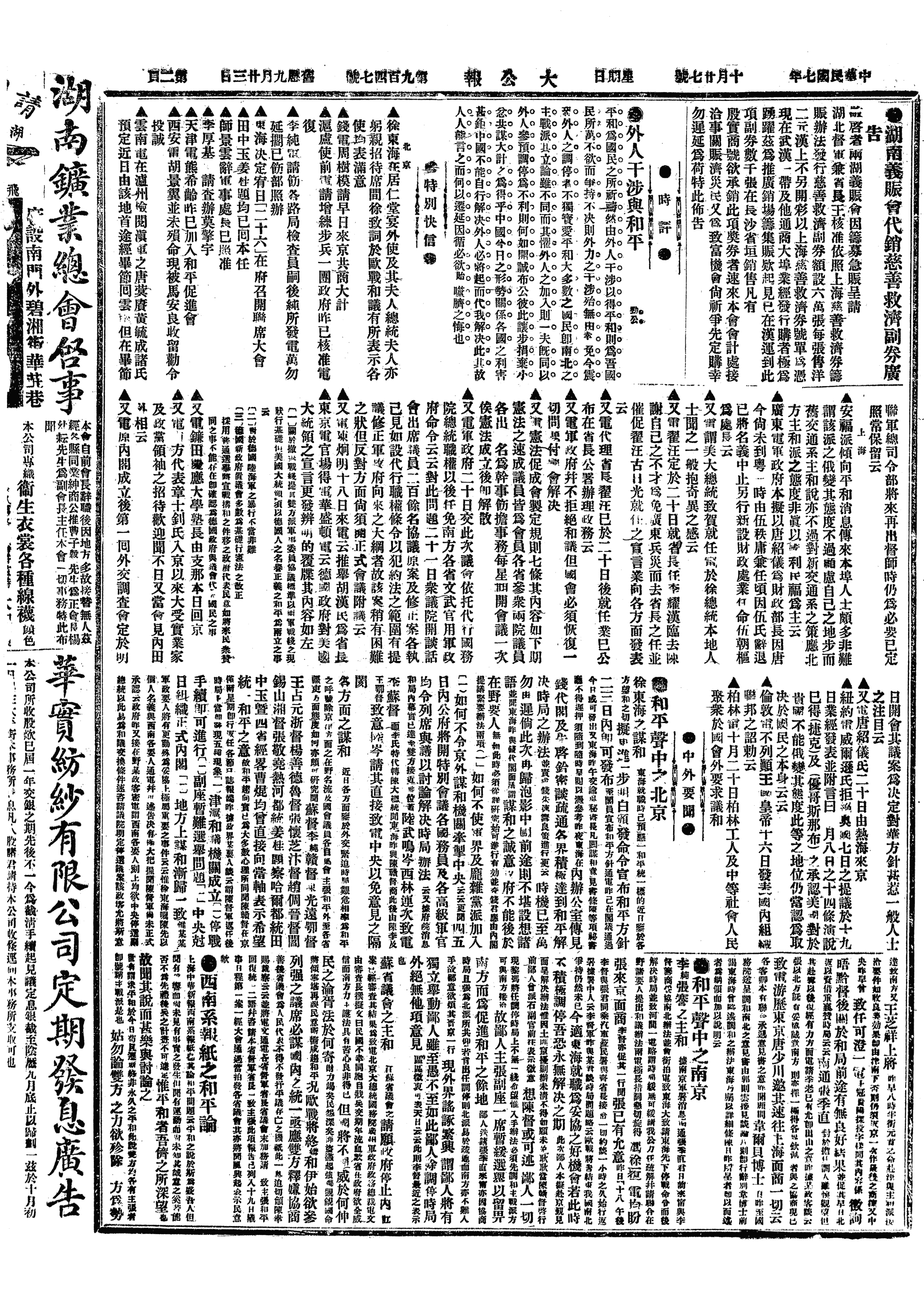中华民国史大事记>19181027