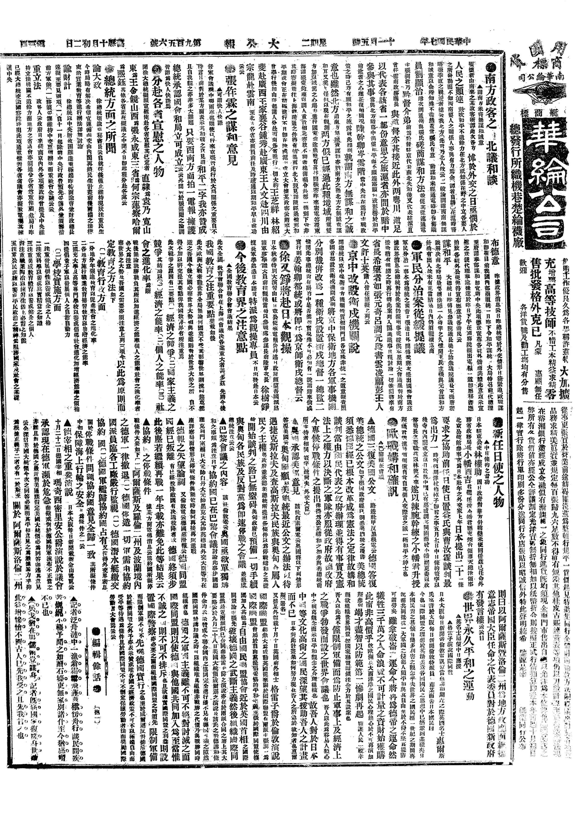 中华民国史大事记>19181105