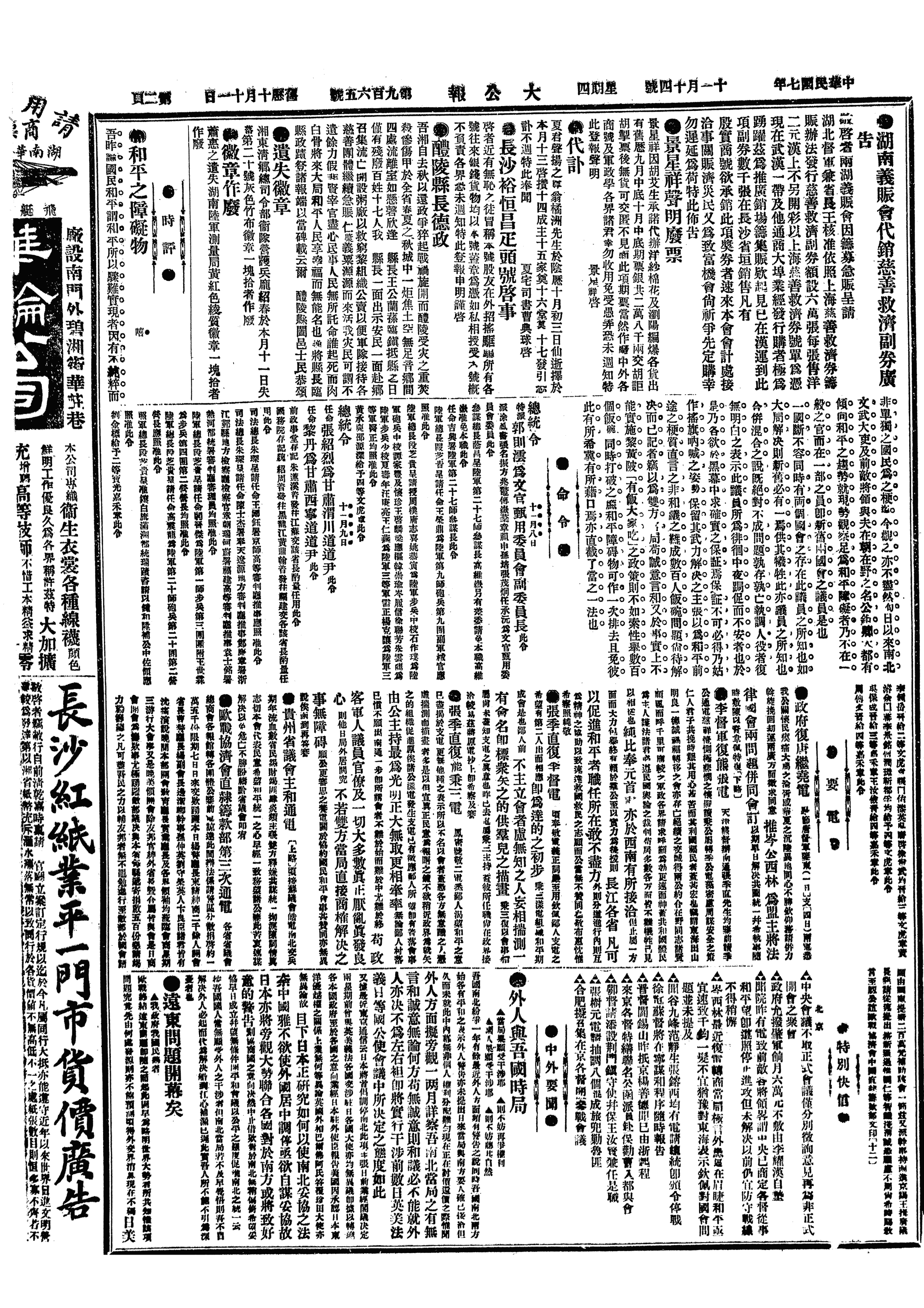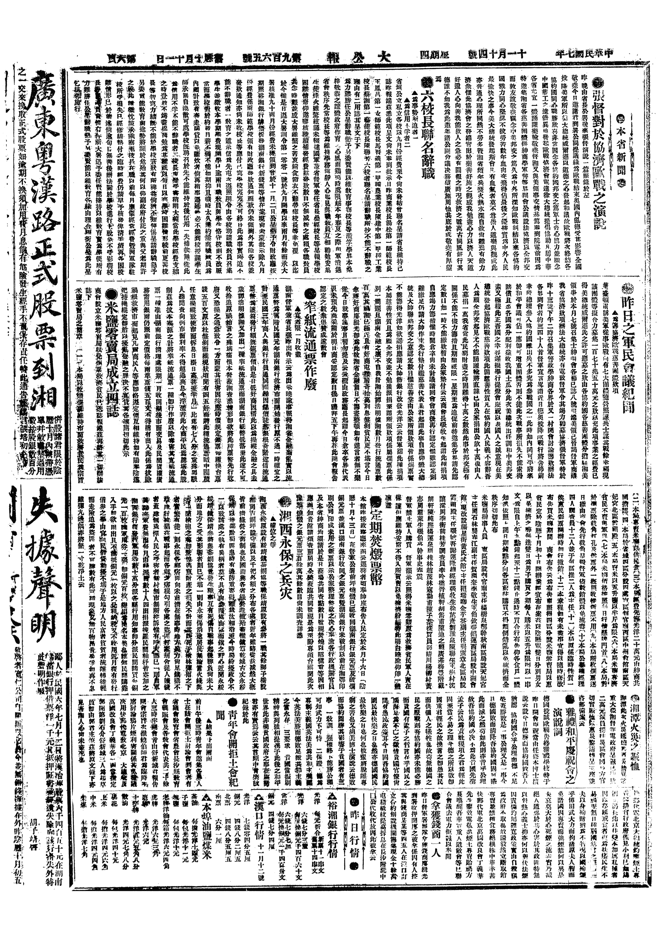 中华民国史大事记>19181114