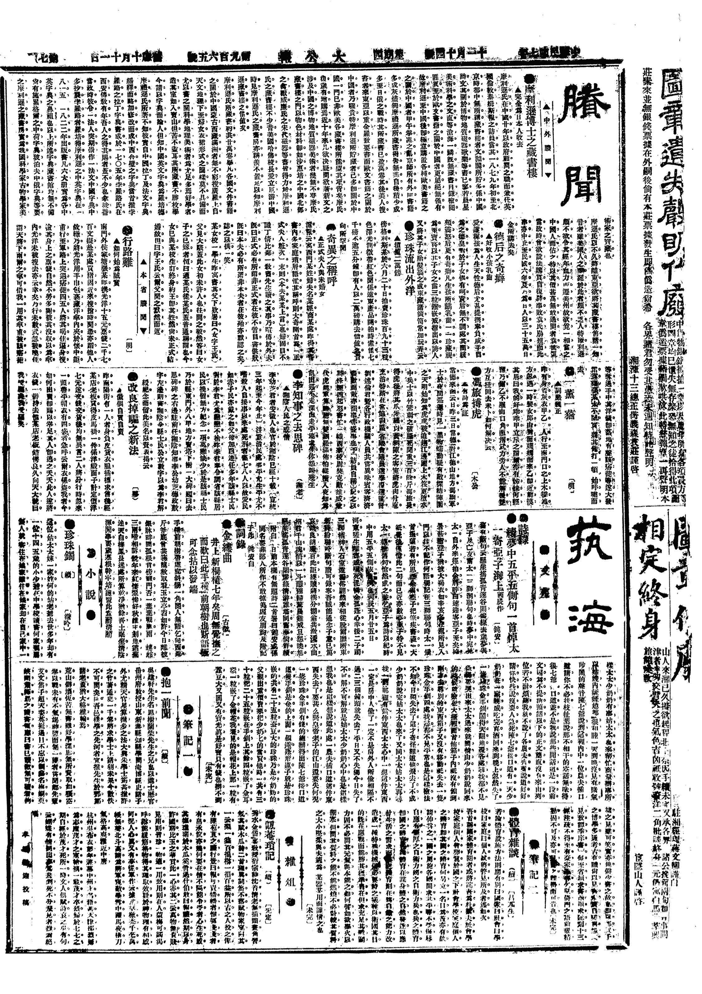 11,14(一0,一一)本日起,北京学校放假03日,庆祝协约国胜利,蔡元培及北京大学教授举行演说大会。