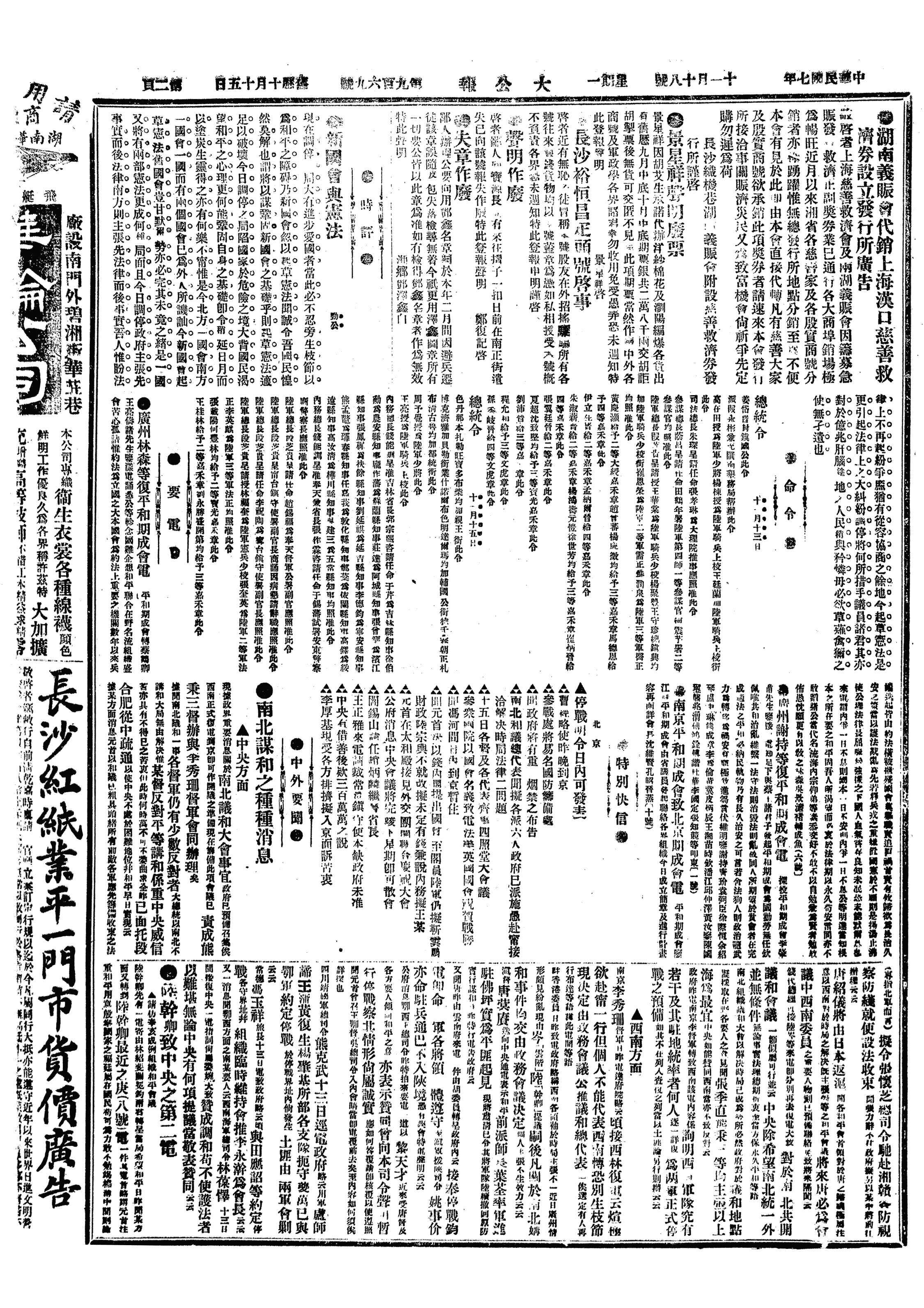 中华民国史大事记>19181118