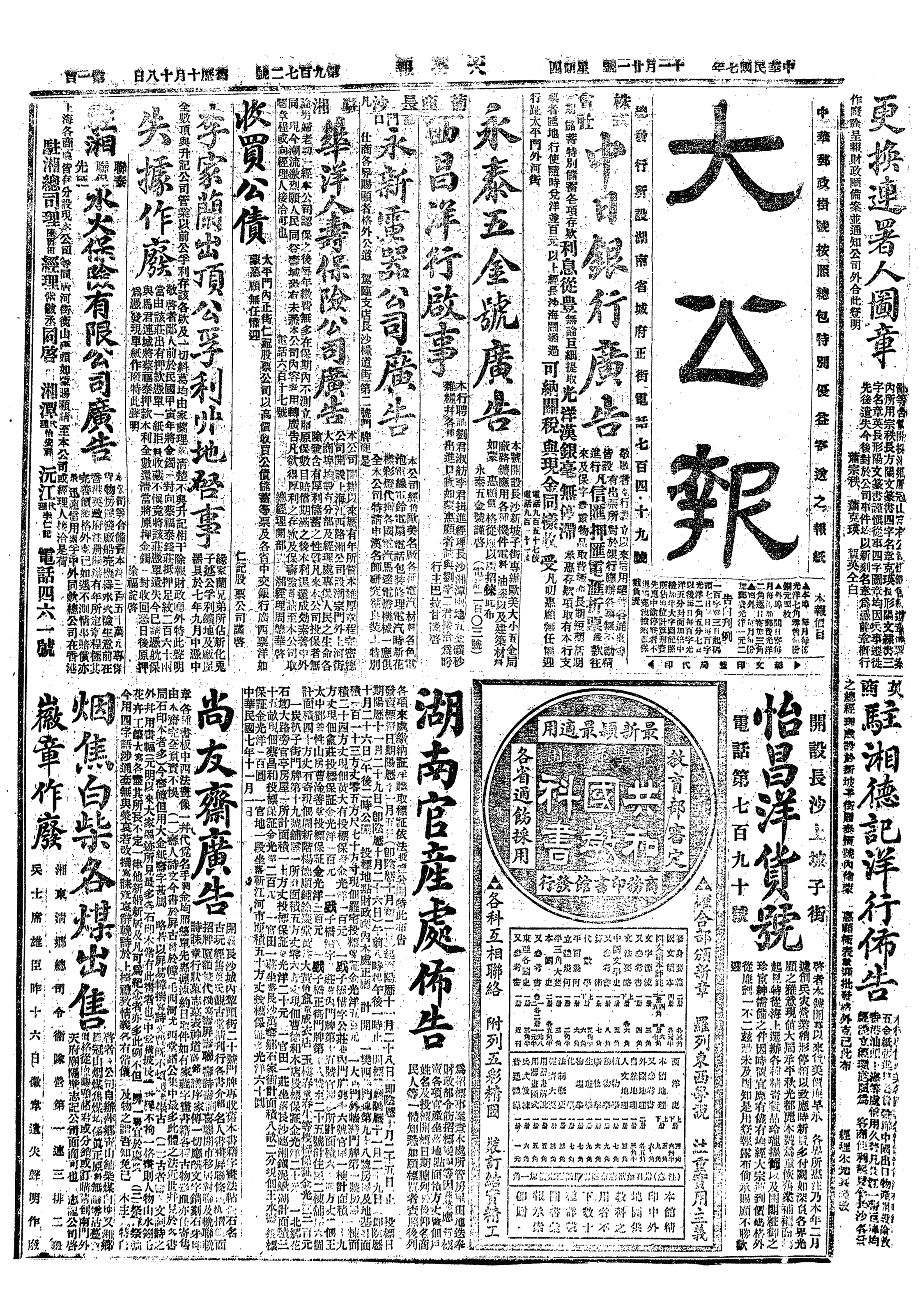 △ 徐世昌任命龚心湛为安徽省长。