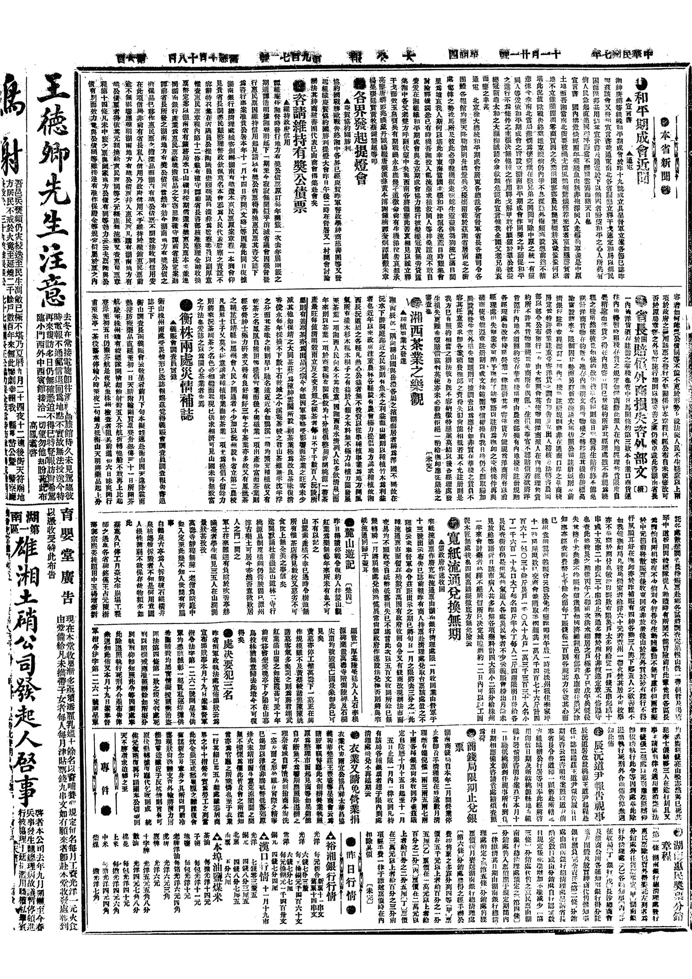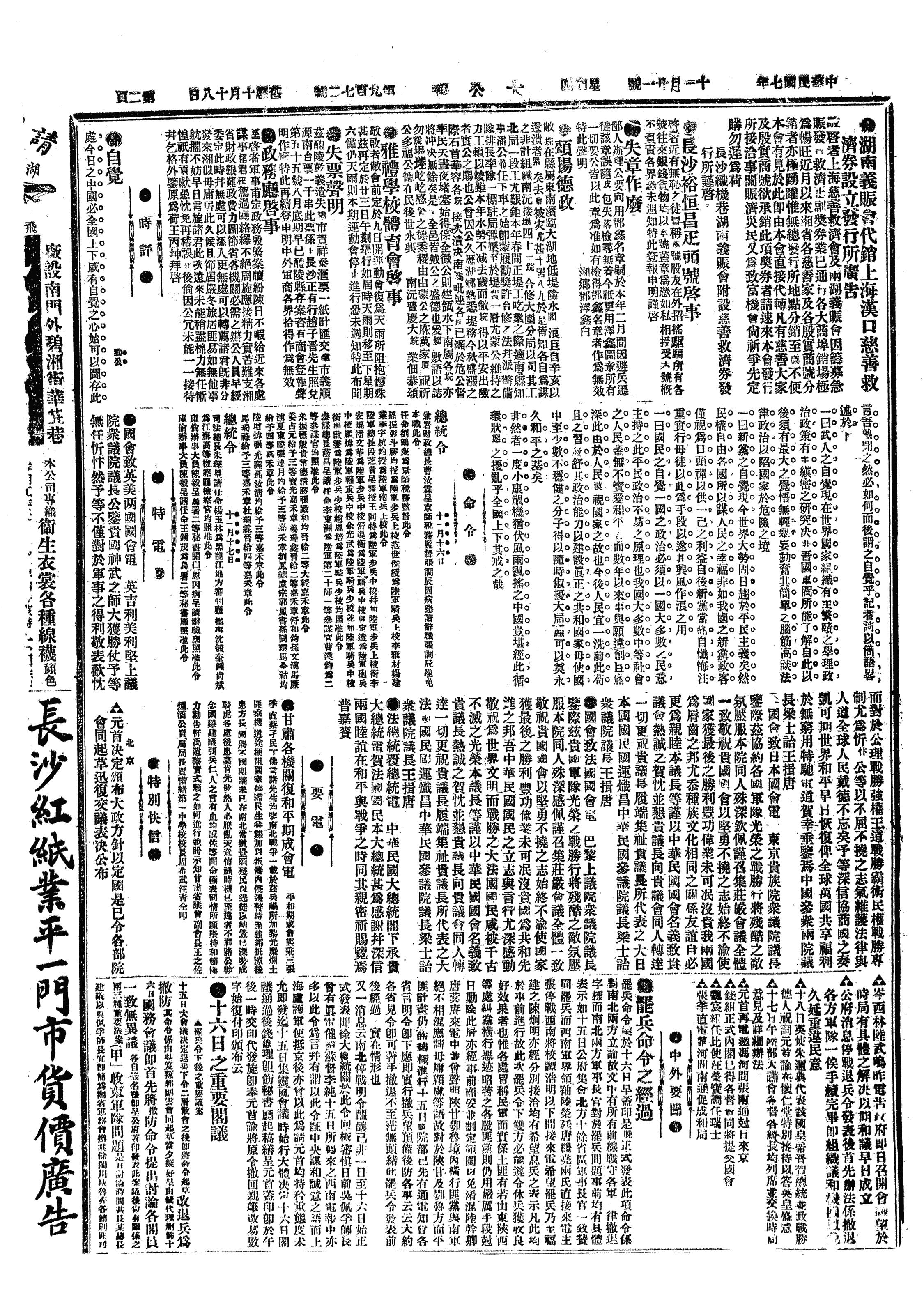 中华民国史大事记>19181121