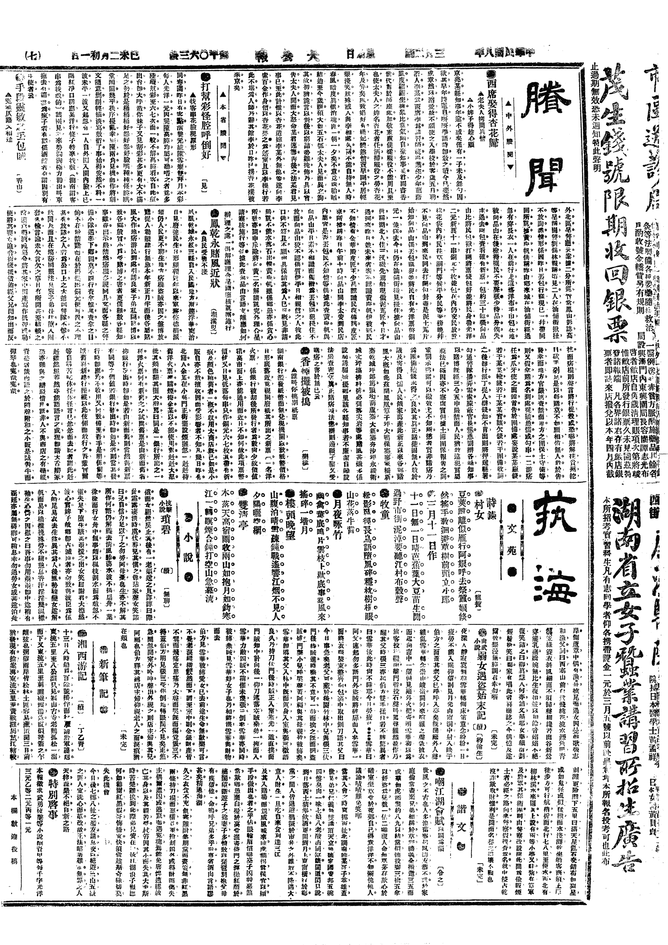 里人资造纸为生,现在百物腾贵,惟草纸不贵,凡造草纸之家,晚间均到庙会议增价,乃于每刀三十四文外又加三文,并加一文作为学费。