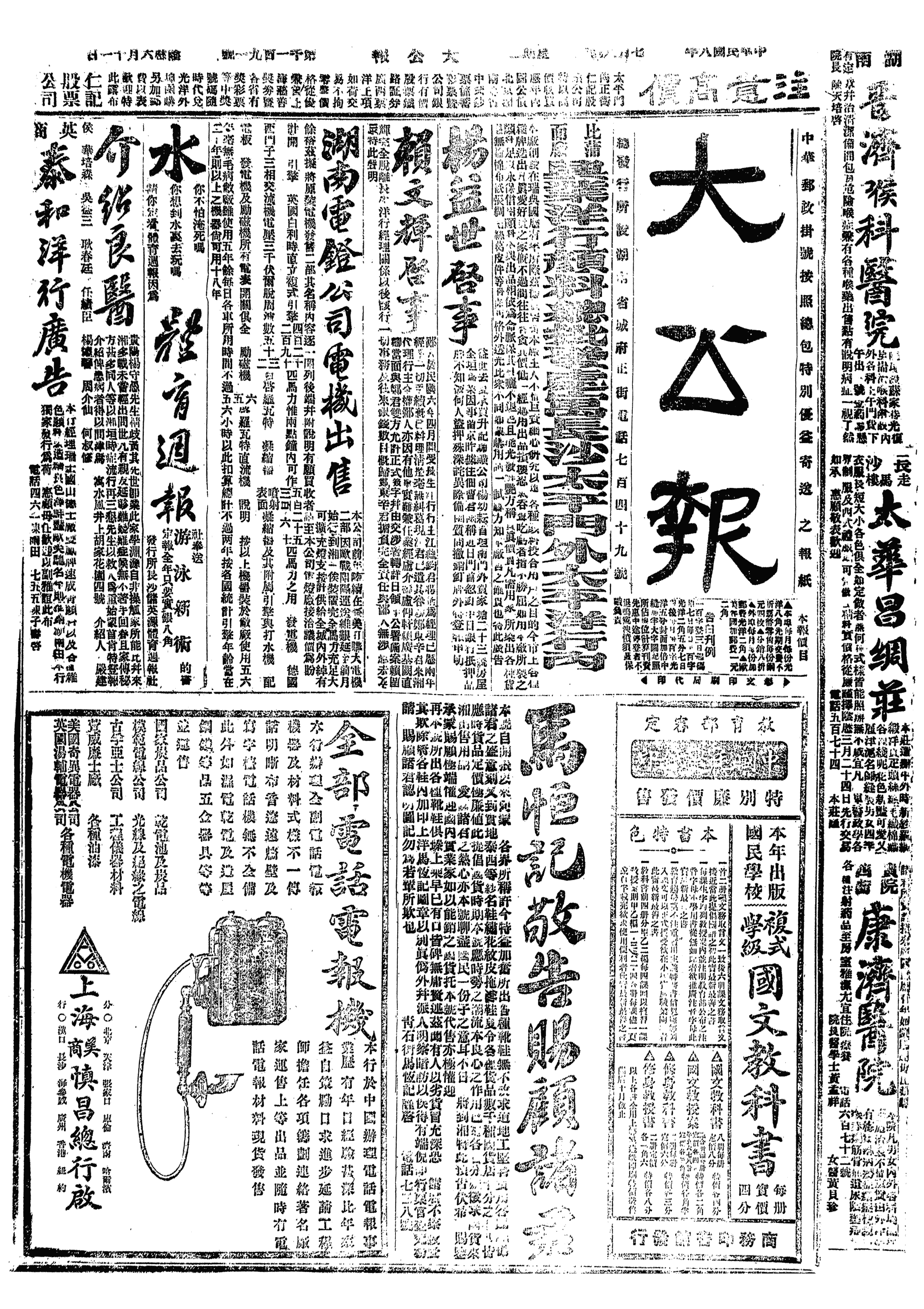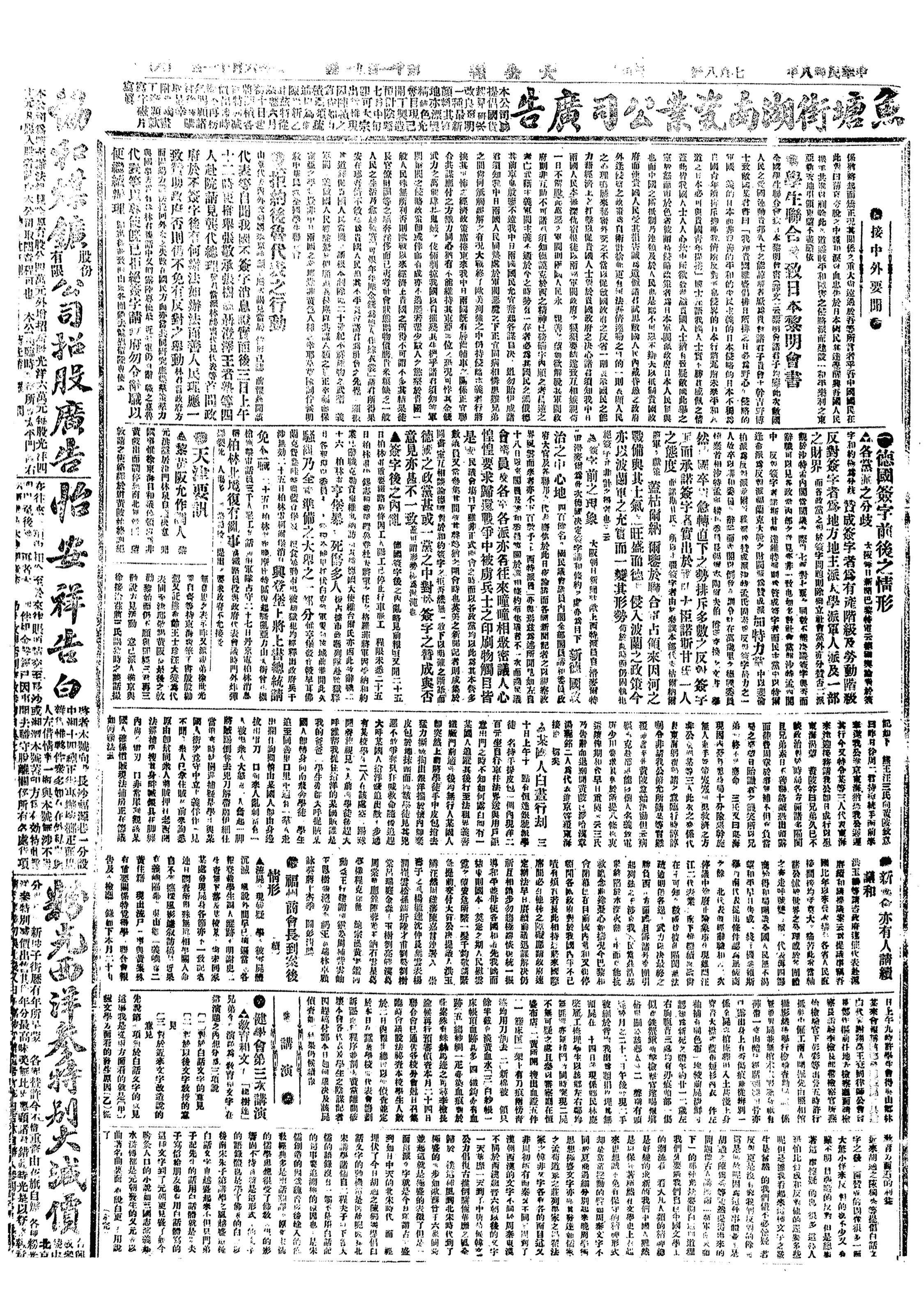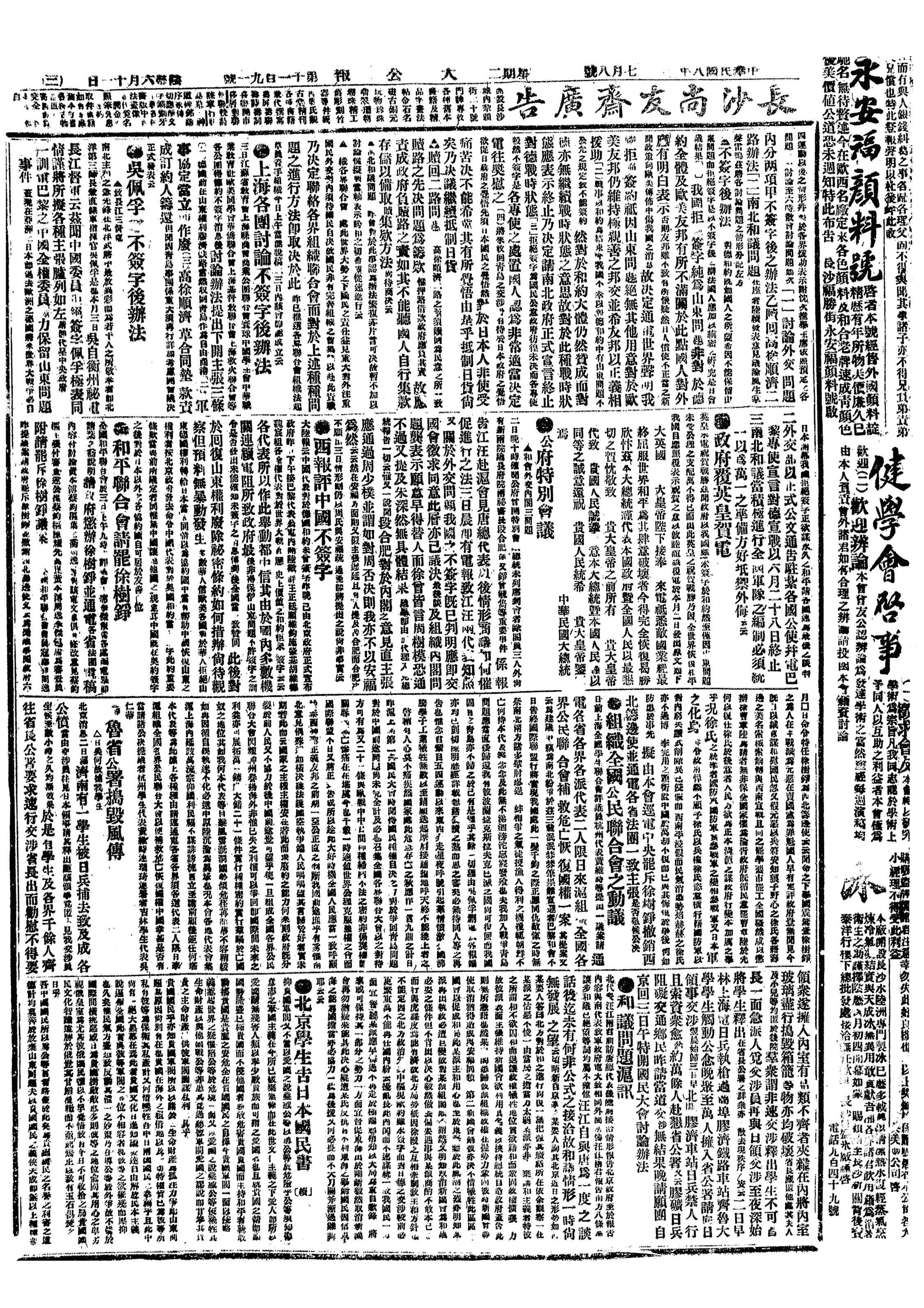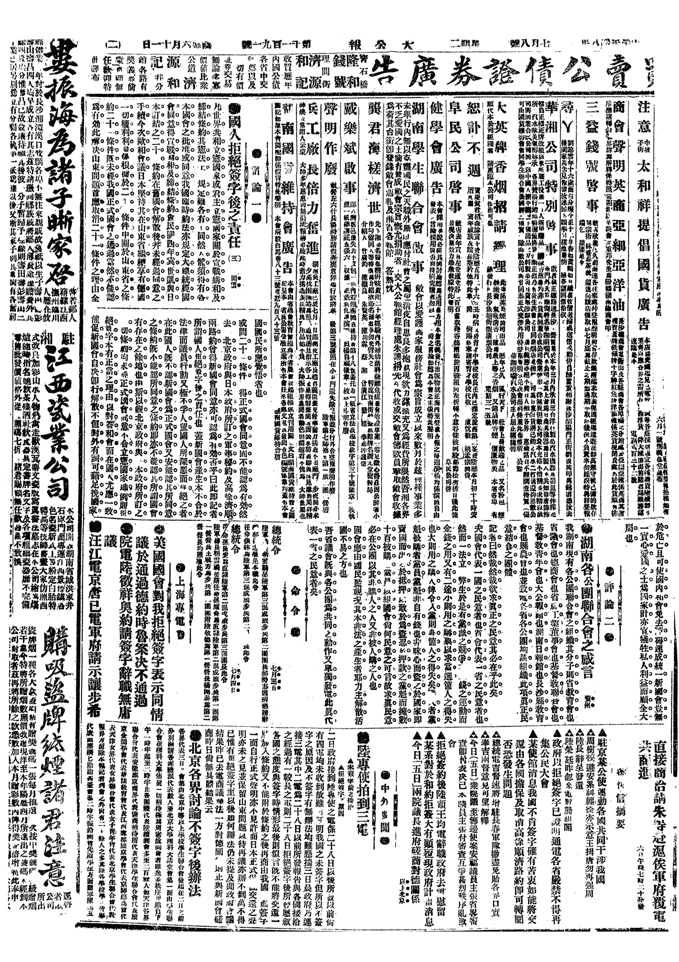 中华民国史大事记>19190708