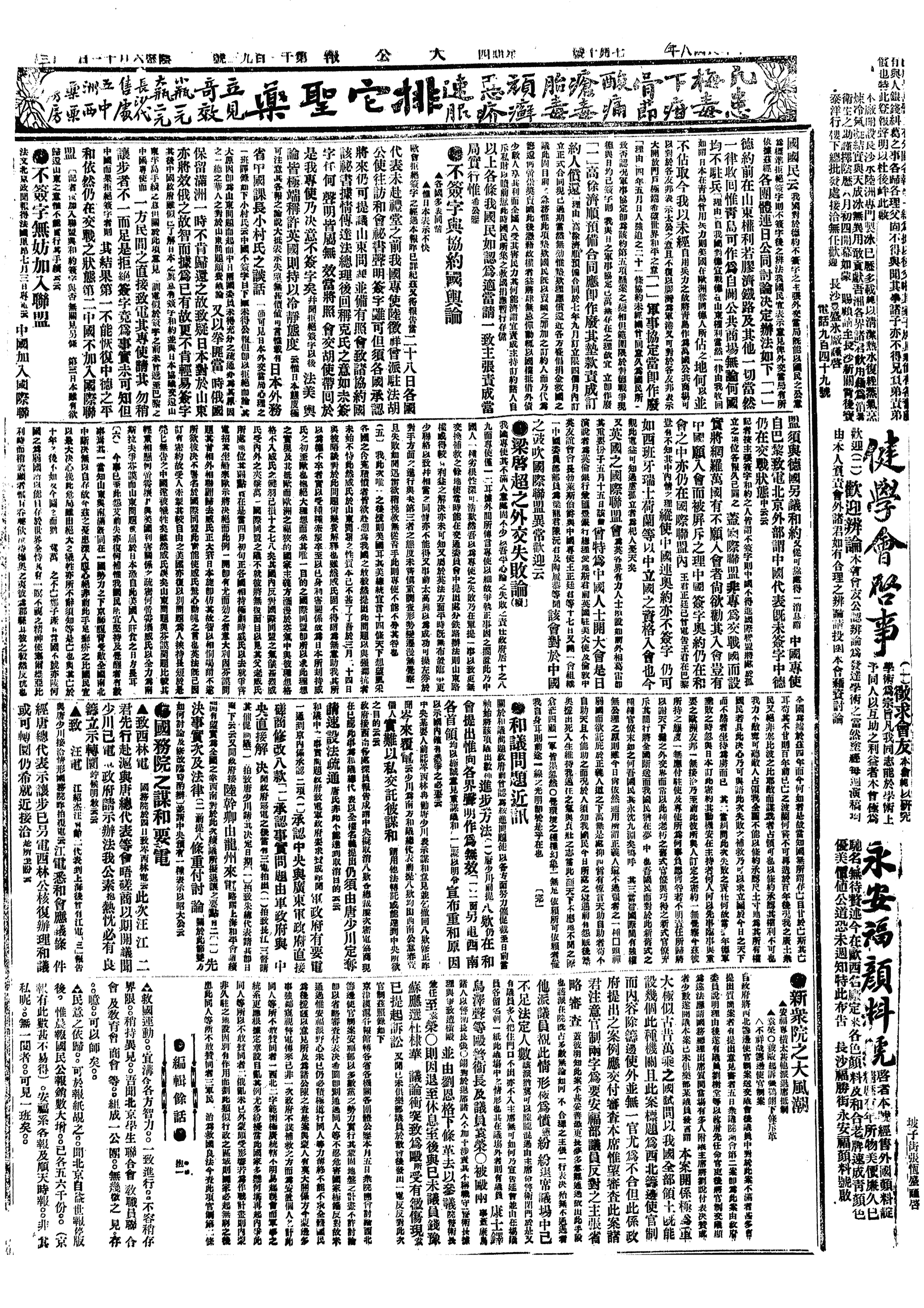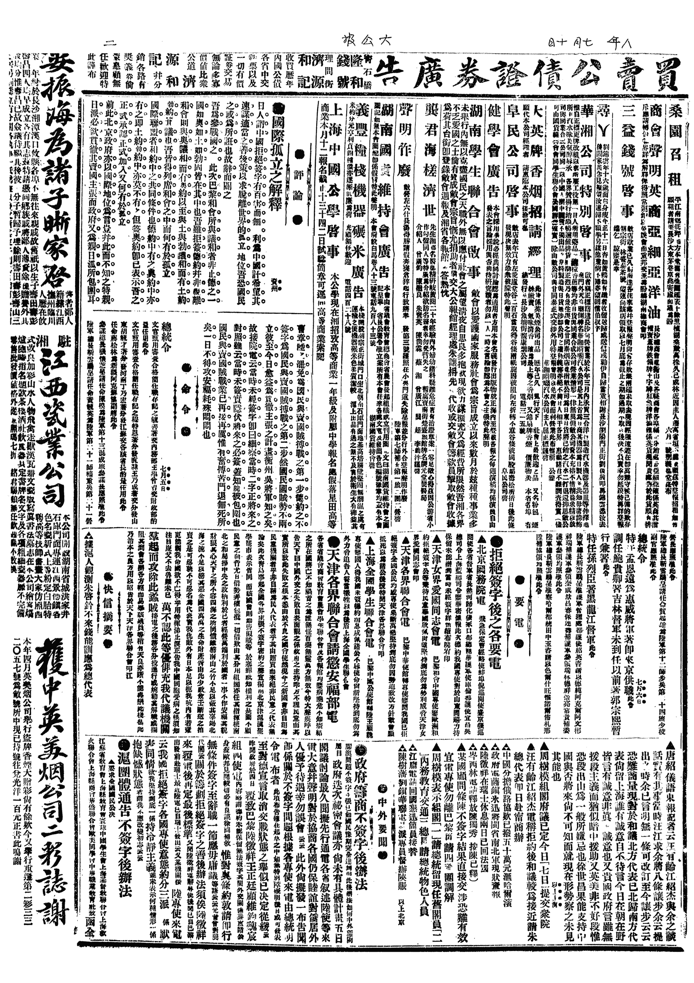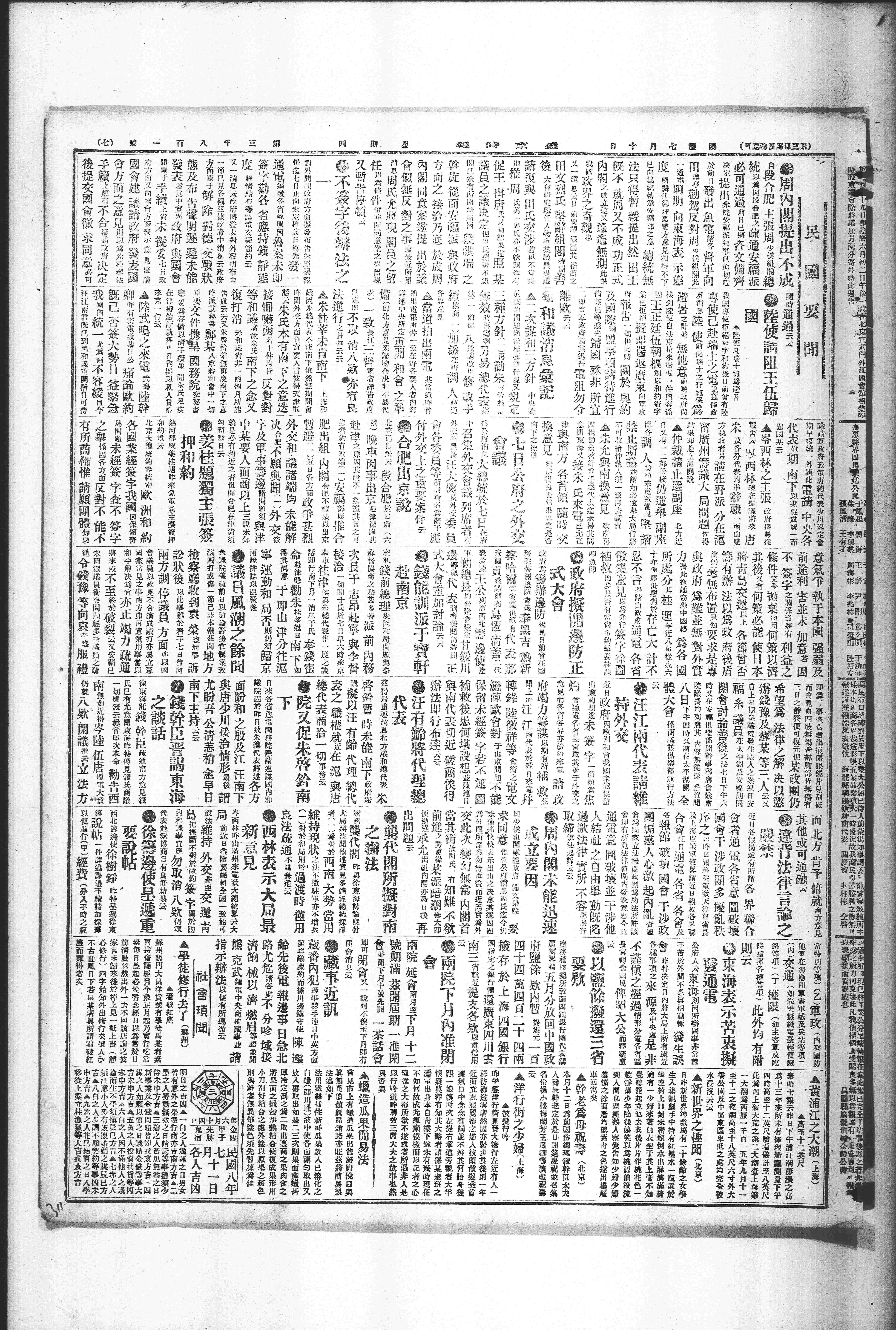 中华民国史大事记>19190710